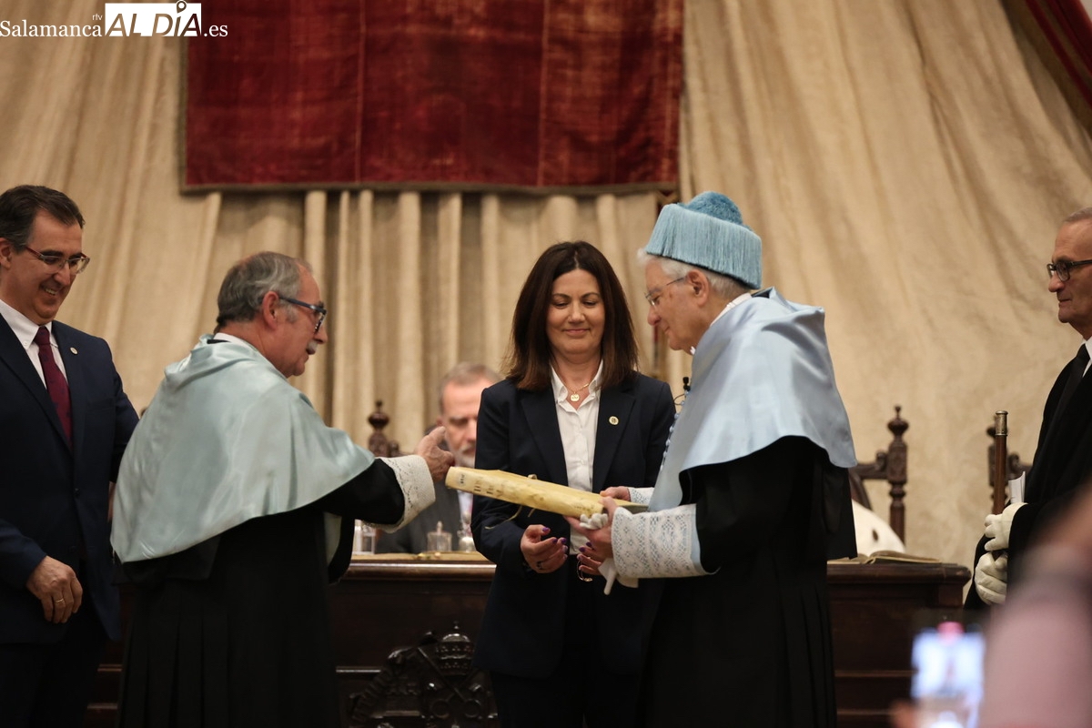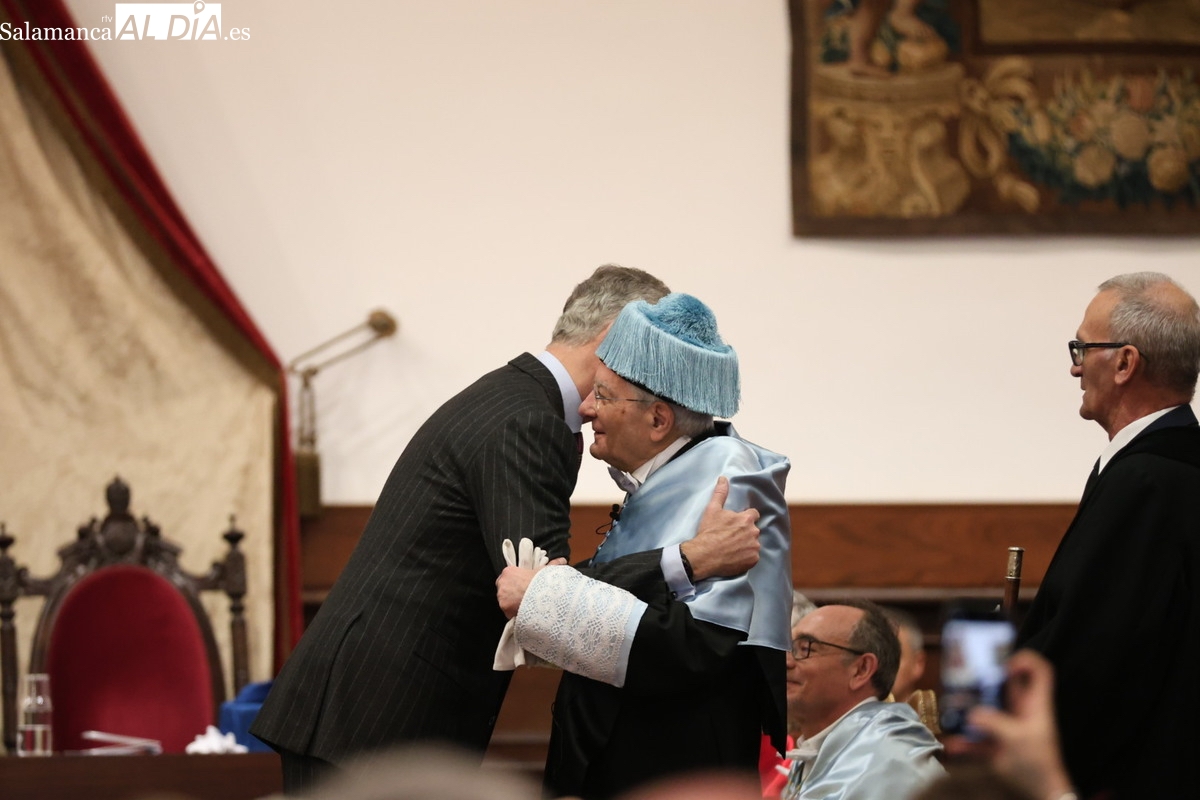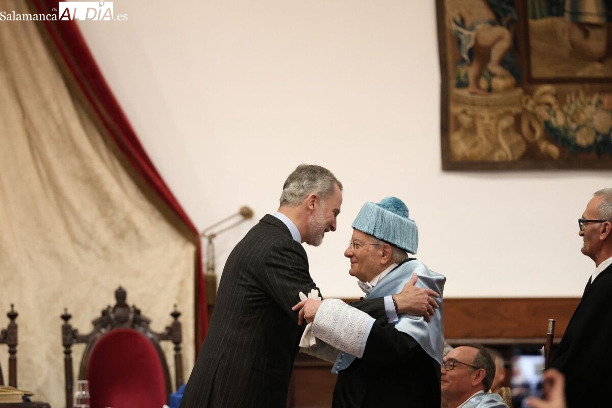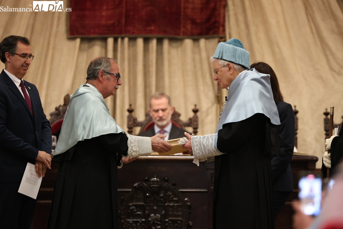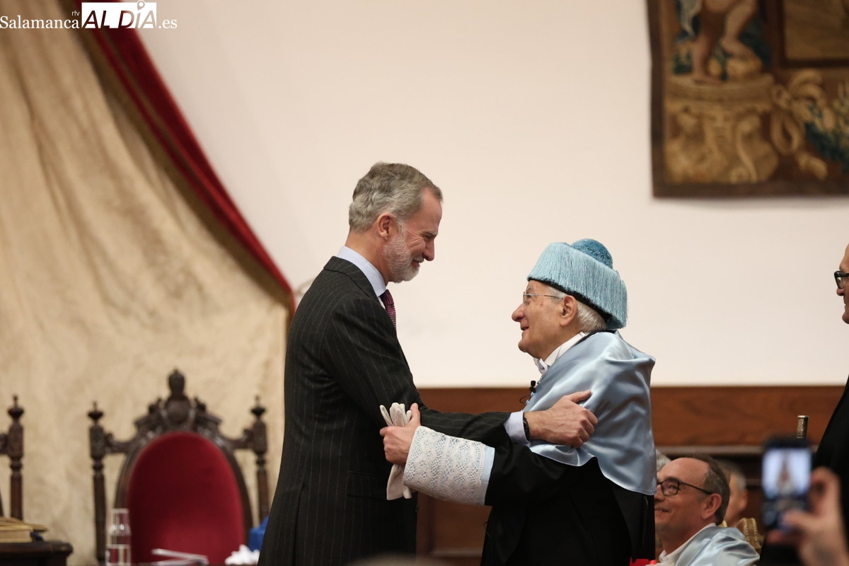 La Universidad de Salamanca ha nombrado doctor Honoris Causa a Sergio Mattarella, presidente de la República Italiana. La ceremonia se ha celebrado en el Paraninfo de las Escuelas Mayores, en un acto que ha contado con la presencia de su Majestad el rey Felipe VI, quien ha sido el encargado de dar comienzo al acto con unas palabras en italiano. Momentos antes del acto, ambos diligentes han paseado por el centro de la ciudad.