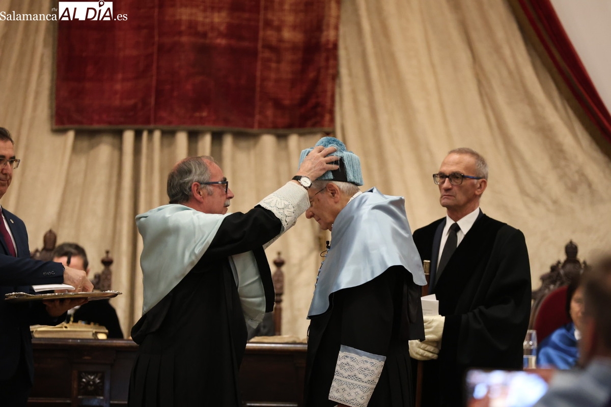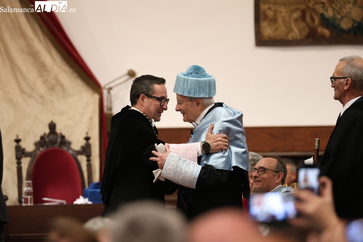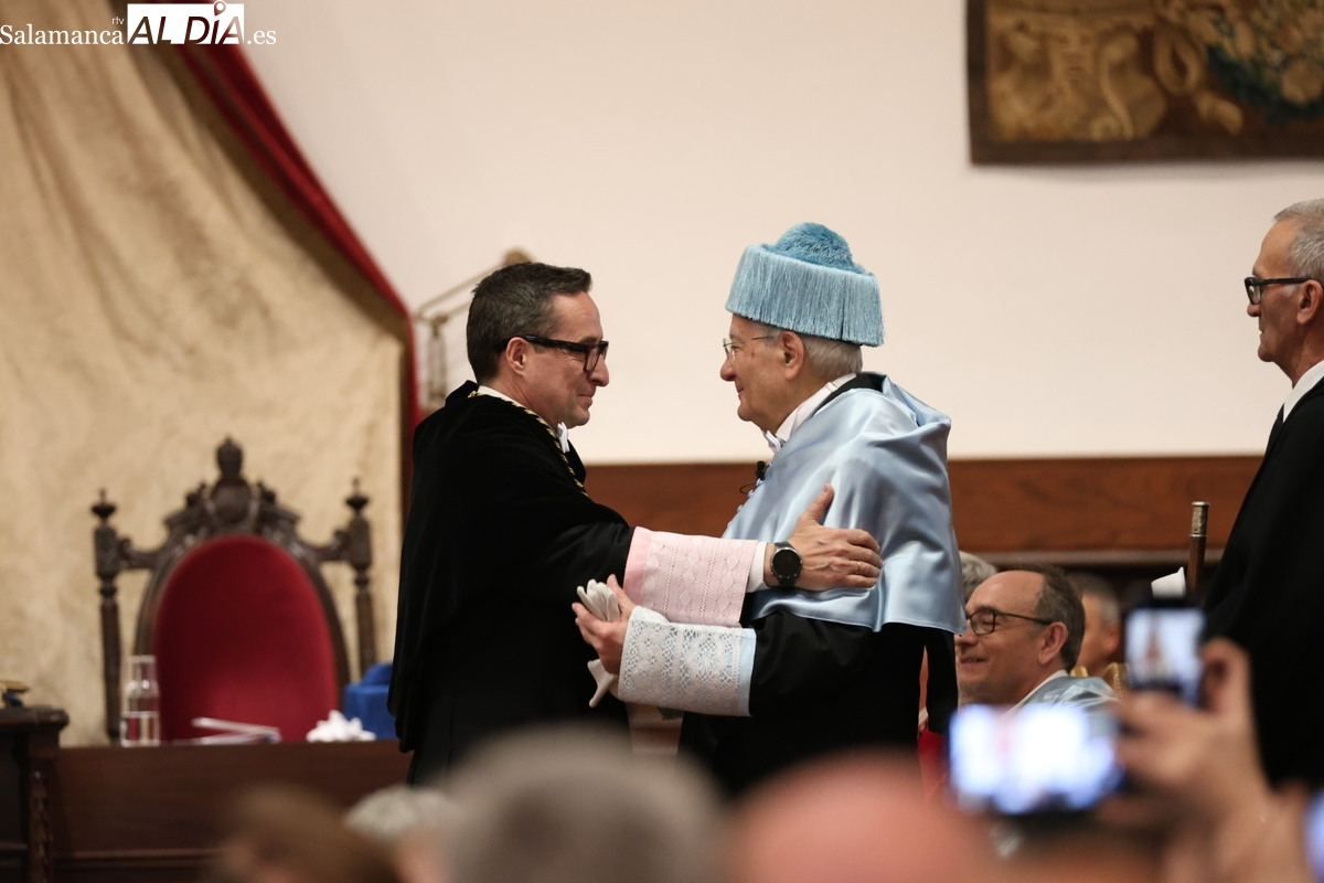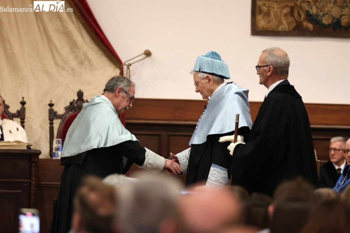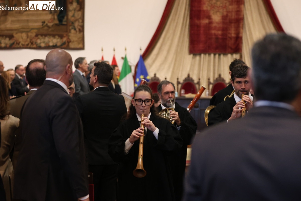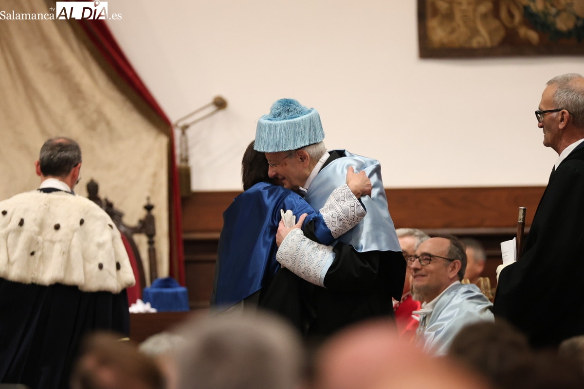 La Universidad de Salamanca ha nombrado doctor Honoris Causa a Sergio Mattarella, presidente de la República Italiana. La ceremonia se ha celebrado en el Paraninfo de las Escuelas Mayores, en un acto que ha contado con la presencia de su Majestad el rey Felipe VI, quien ha sido el encargado de dar comienzo al acto con unas palabras en italiano. Momentos antes del acto, ambos diligentes han paseado por el centro de la ciudad.