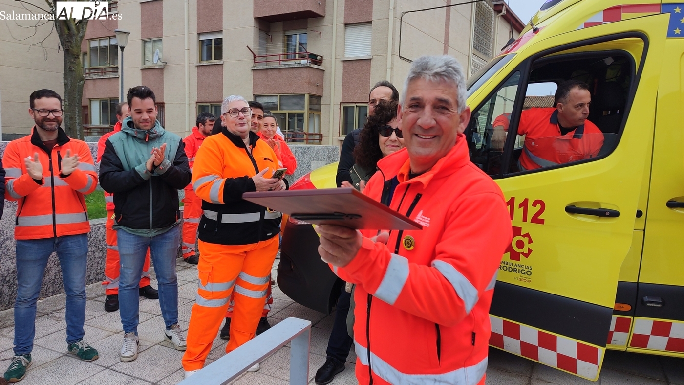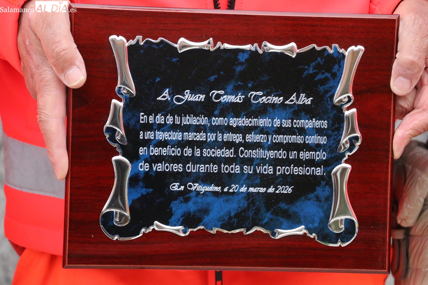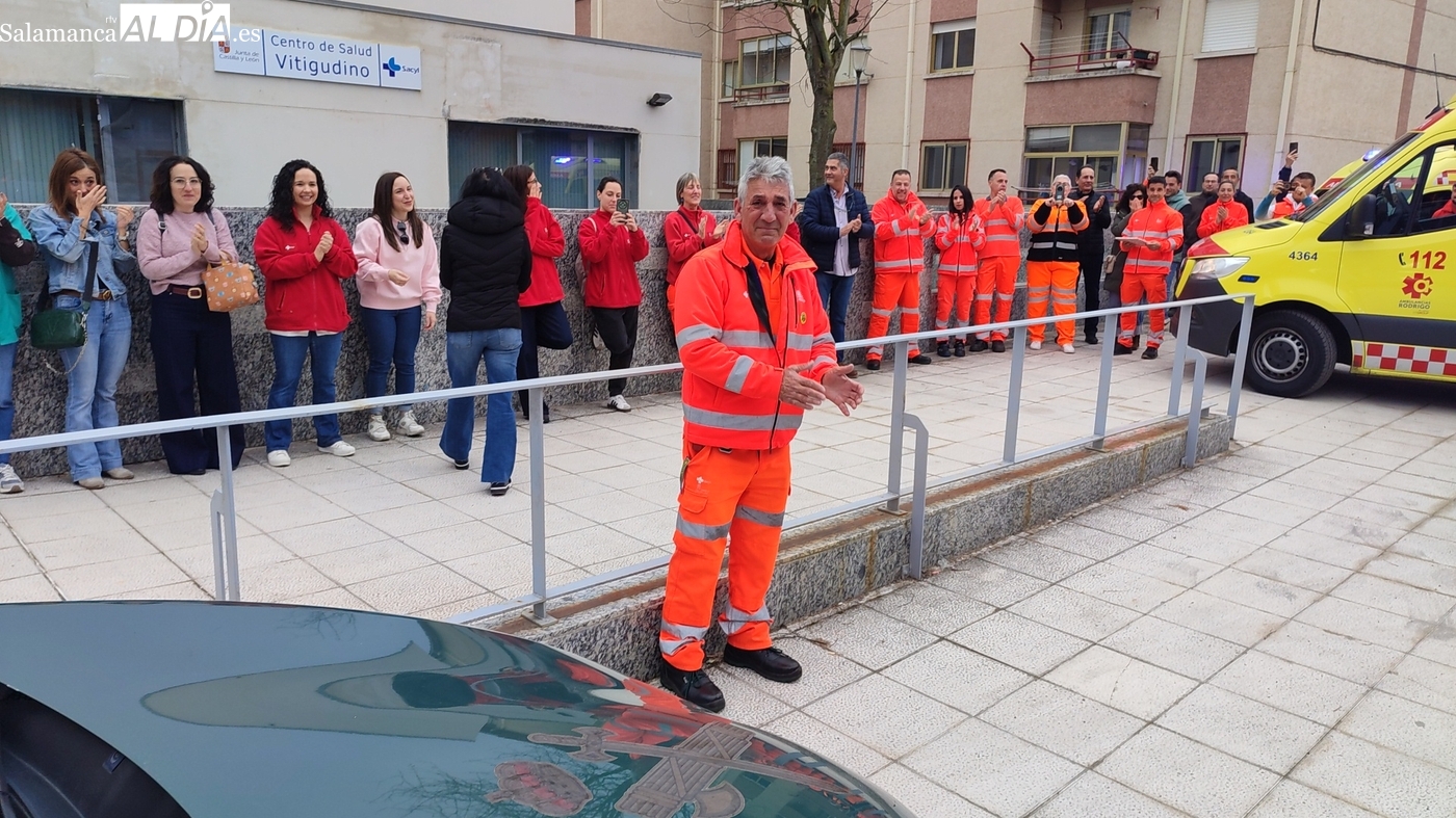 Hay días en los que el habitual trasiego del Centro de Salud de Vitigudino se detiene por una causa mayor. Este viernes, el motivo no era una emergencia médica, sino el merecido reconocimiento a Juan Tomás Tocino, conocido cariñosamente como 'Juanto', y que este 20 de marzo finalizaba su último turno tras 38 años de servicio ininterrumpido al volante de una ambulancia.