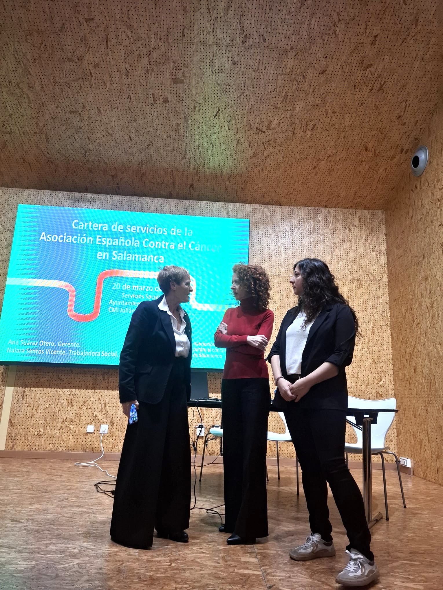 Durante la sesión, la gerente de la AECC en Salamanca, Ana Suárez, y la trabajadora social de la entidad, Naiara Santos, han detallado a los profesionales del Consistorio las principales líneas de actuación y los protocolos de intervención directa que presta la organización.