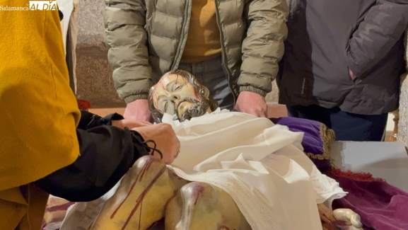 El histórico cambio de ropas de la imagen, que tendrá lugar esta tarde, incorpora un año más una campaña de recogida de alimentos y productos de higiene