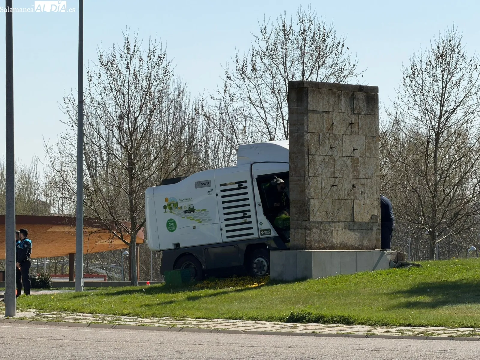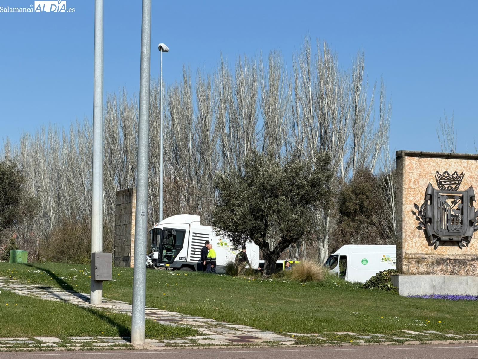 Un trabajador del servicio municipal de limpieza de unos 55 años ha precisado asistencia médica tras chocar la barredora que conducía contra la glorieta de la Charrería en Salamanca. El accidente, ocurrido a las 11:03 horas de este domingo por una salida de vía, ha movilizado a la Policía Local y a Emergencias Sanitarias para atender al conductor, que se encontraba consciente pero mareado tras el impacto, por lo que fue trasladado al hospital de Salamanca.