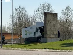 El Servicio de Emergencias 112 de Castilla y León ha recibido la alerta del siniestro a media mañana, cuando se ha informado de que el vehículo especial se había salido de su carril. La máquina ha terminado colisionando directamente contra la propia infraestructura de la rotonda.