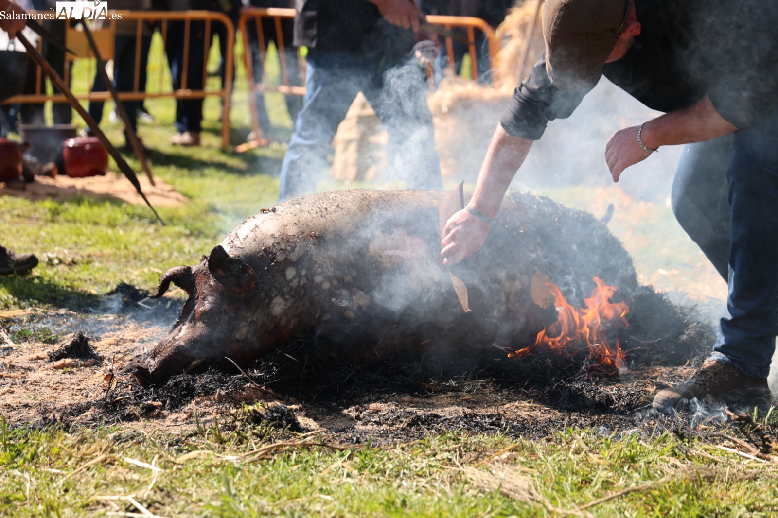 Las labores técnicas de separación y exposición de las piezas han corrido a cargo de Jesús Ángel Hernández, propietario de la Carnicería y Salchichería Jara. Tras el chamuscado y despiece, se ha organizado un sorteo de productos del porcino, incluyendo jamones, paletas, lomos y solomillos, entre los asistentes que habían adquirido el tique de degustación.