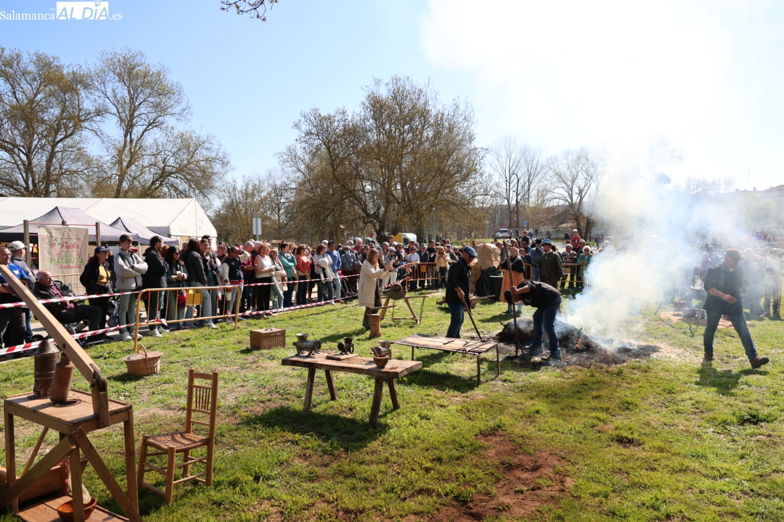 La Isla del Soto de Santa Marta de Tormes ha acogido este soleado domingo, 22 de marzo, la tercera edición de la Fiesta Tradicional de la Matanza. El evento ha reunido a vecinos y visitantes en torno a las costumbres populares, ofreciendo desde el despiece del cerdo hasta degustaciones típicas y talleres infantiles con el apoyo de diversas instituciones locales.