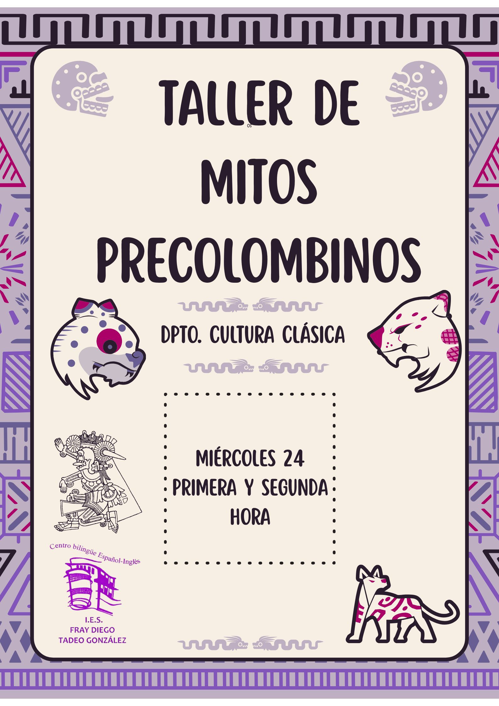 - Un taller de mitos precolombinos impulsado por el departamento de Cultura Clásica, que se realizará el día 24 a primera y segunda hora.