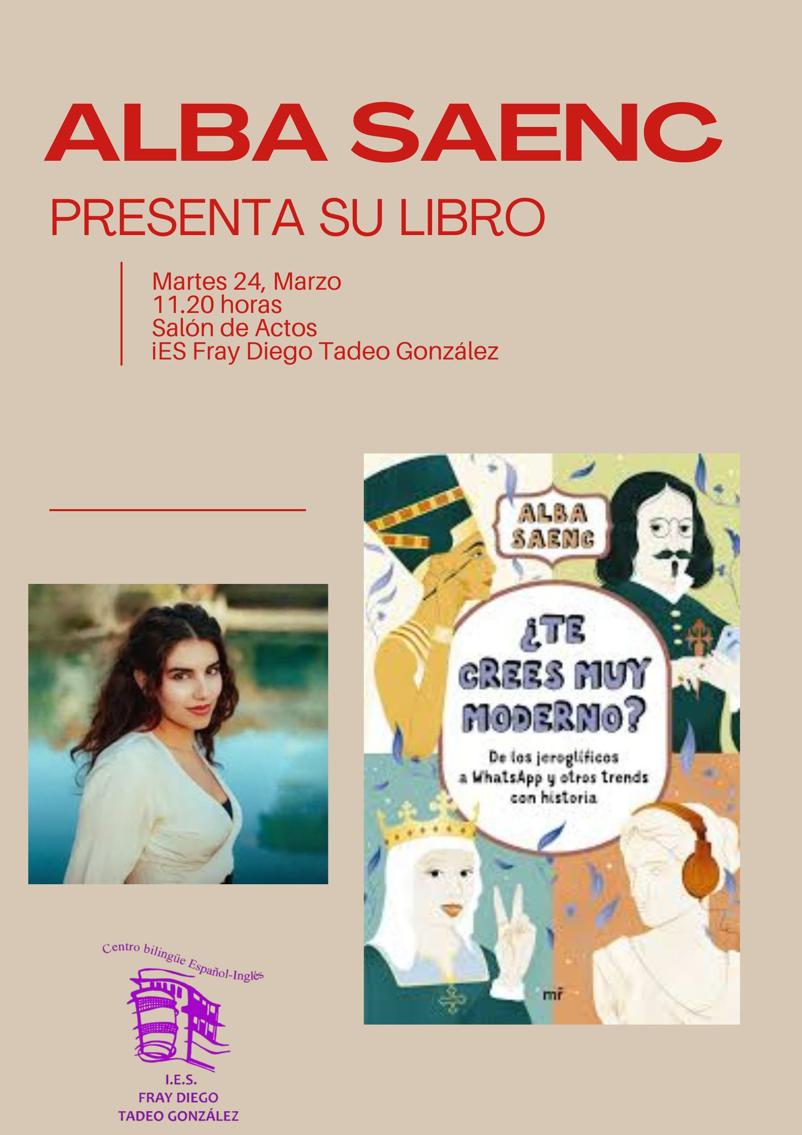- La presentación del libro "¿Y tú te crees moderno?", obra de la antigua alumna Alba Sánchez Encinas, que aborda curiosidades de la historia y el arte, el martes 24 a las 11:20 horas.