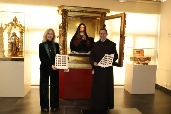La presentación oficial de este sello conmemorativo pone en valor la riqueza artística de la villa ducal. La imagen elegida para esta emisión de curso legal es la talla de la Soledad, una obra maestra del siglo XVII que se custodia habitualmente en el Museo Carmus, uno de los espacios más representativos de la localidad.