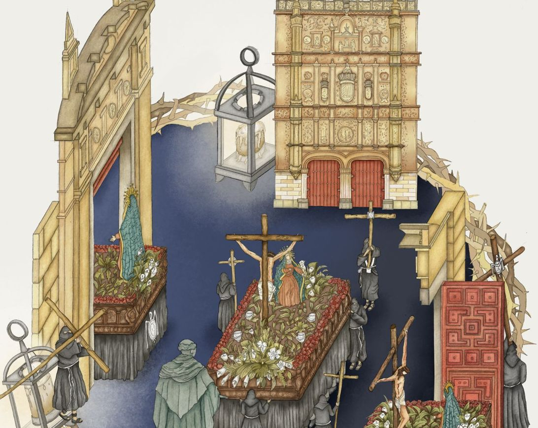En su propuesta gráfica, la estudiante reinterpreta entidades, momentos, elementos y situaciones simbólicas que representan a la cofradía. "Nos ha regalado un pedacito de ella misma, de su interior y de su imaginación, de cómo nos ve y la profundidad con la que ha sabido captar nuestra esencia", explican desde la Hermandad Universitaria.