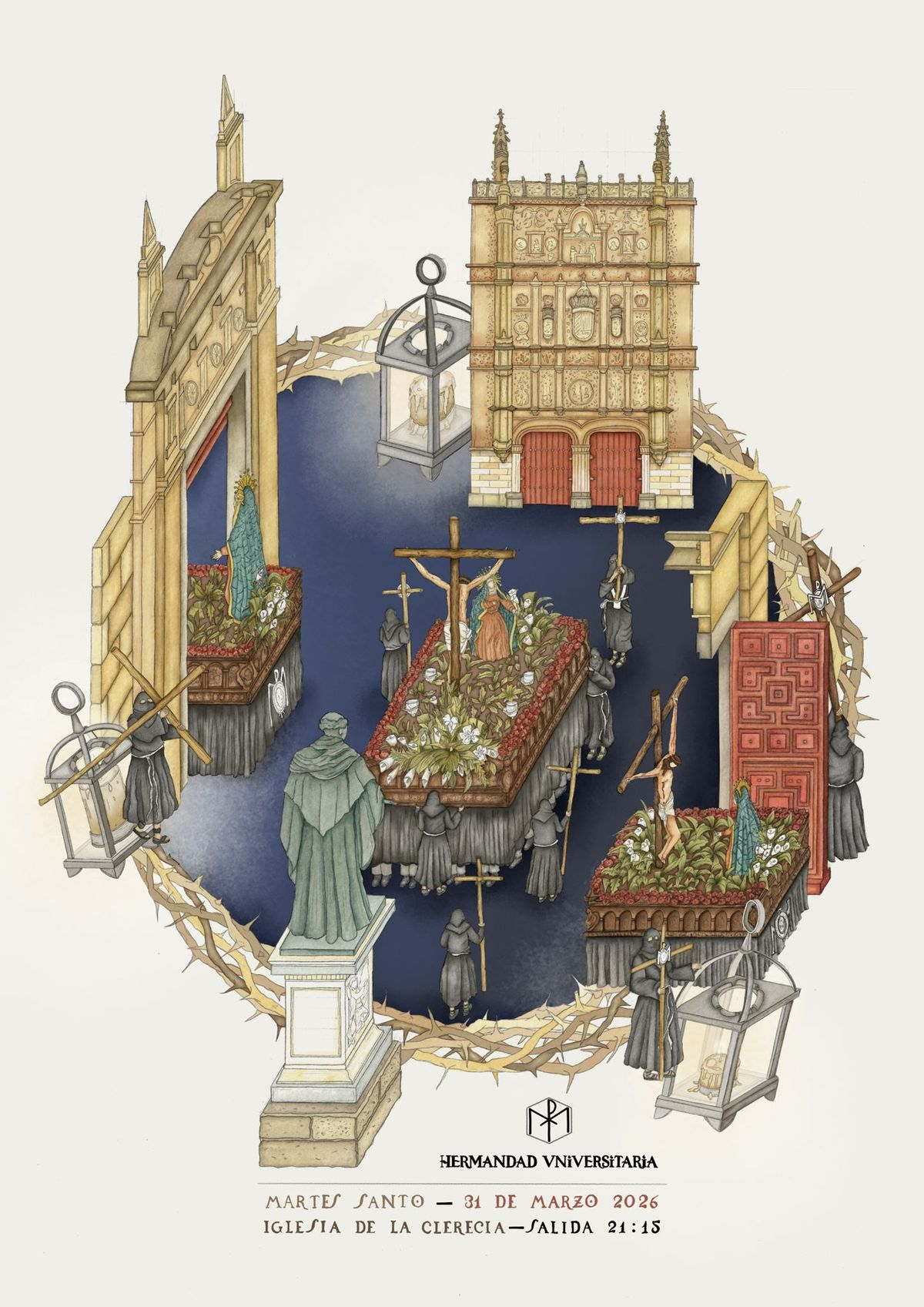 La Hermandad Universitaria del Santísimo Cristo de la Luz y Nuestra Señora Madre de la Sabiduría ha dado a conocer el cartel con el que anuncia su procesión de penitencia, prevista para el próximo 31 de marzo de 2026. La obra ha sido elaborada por Karla del Pilar Siesquen Medina, estudiante de la Escuela de Arte de Salamanca.