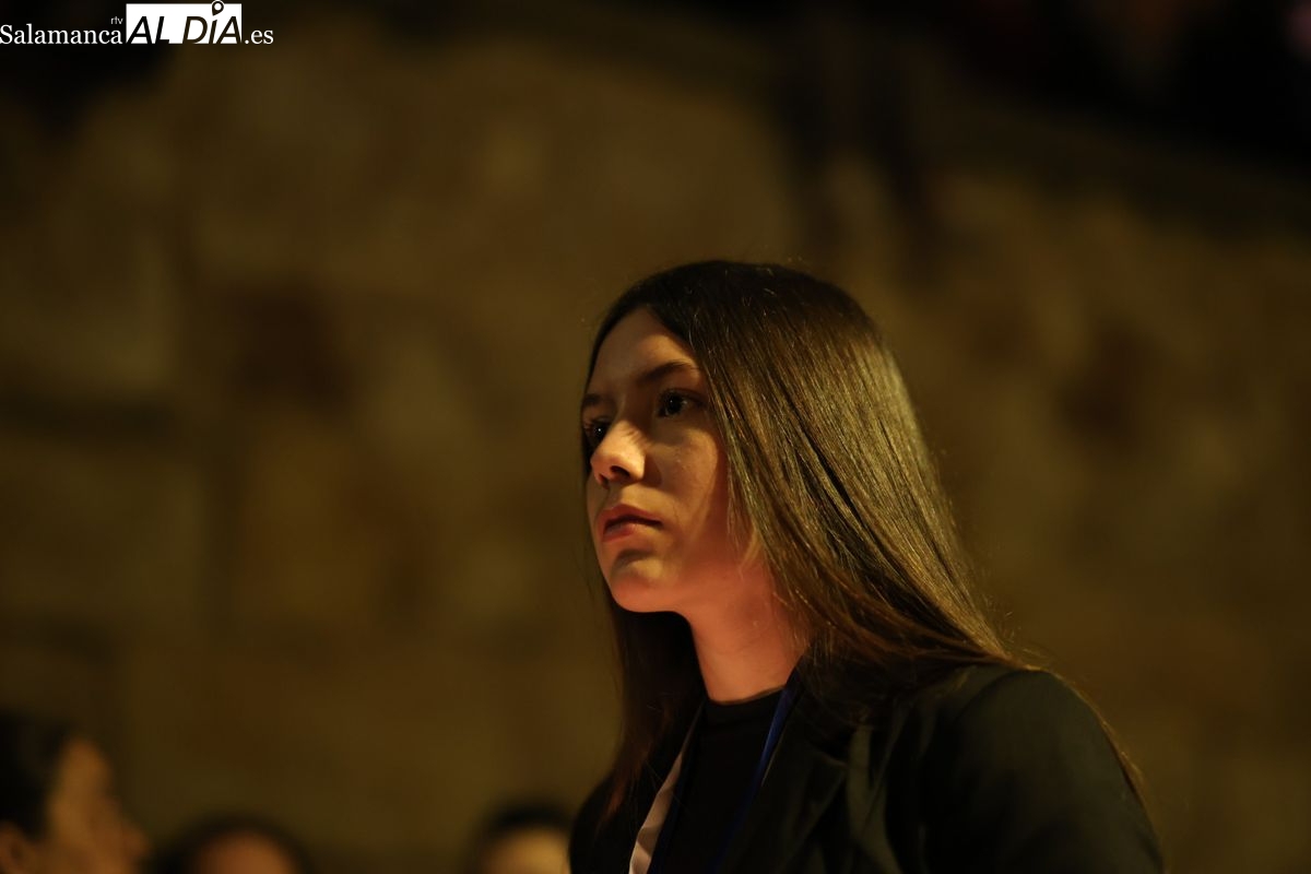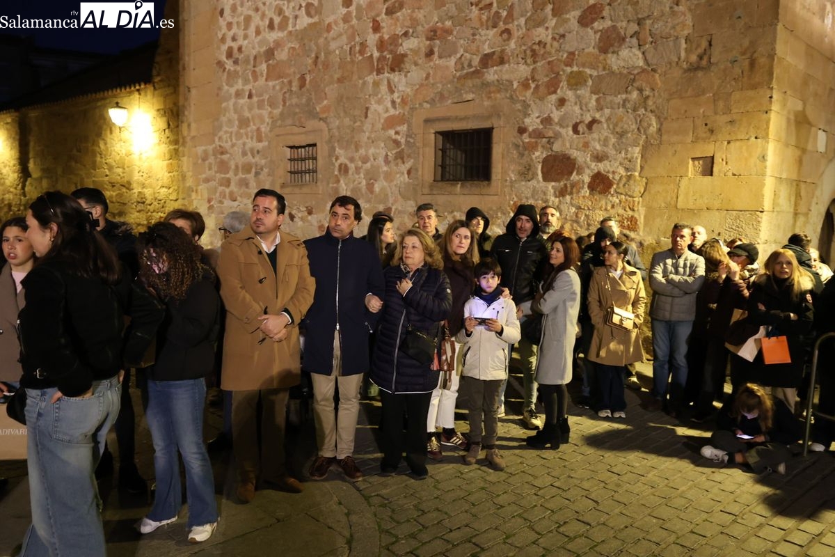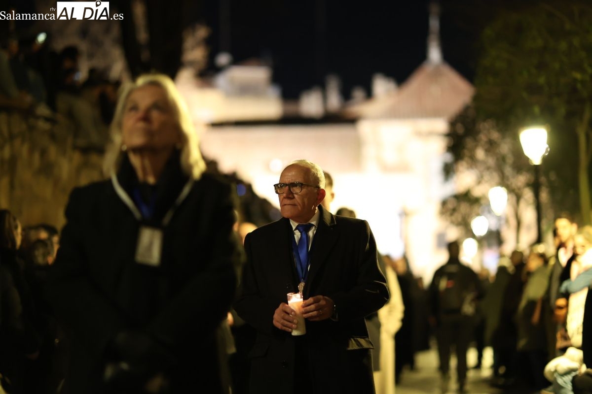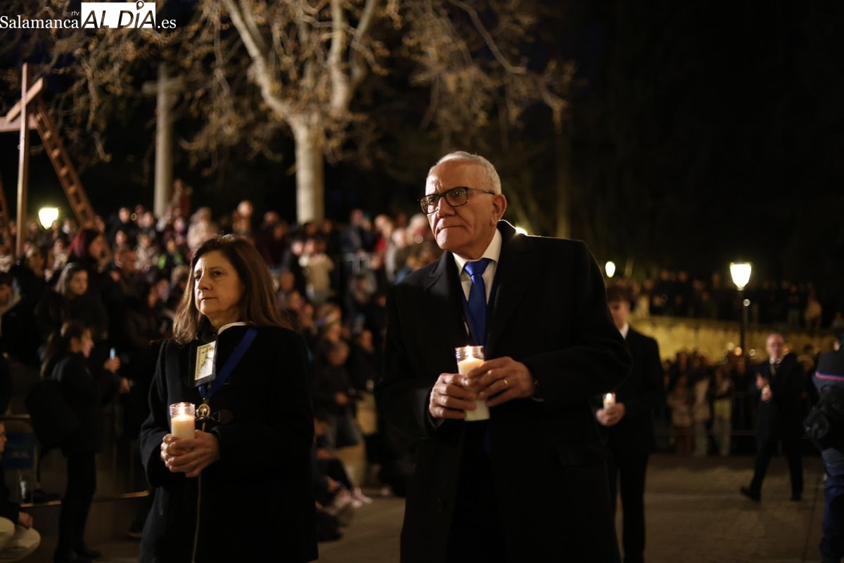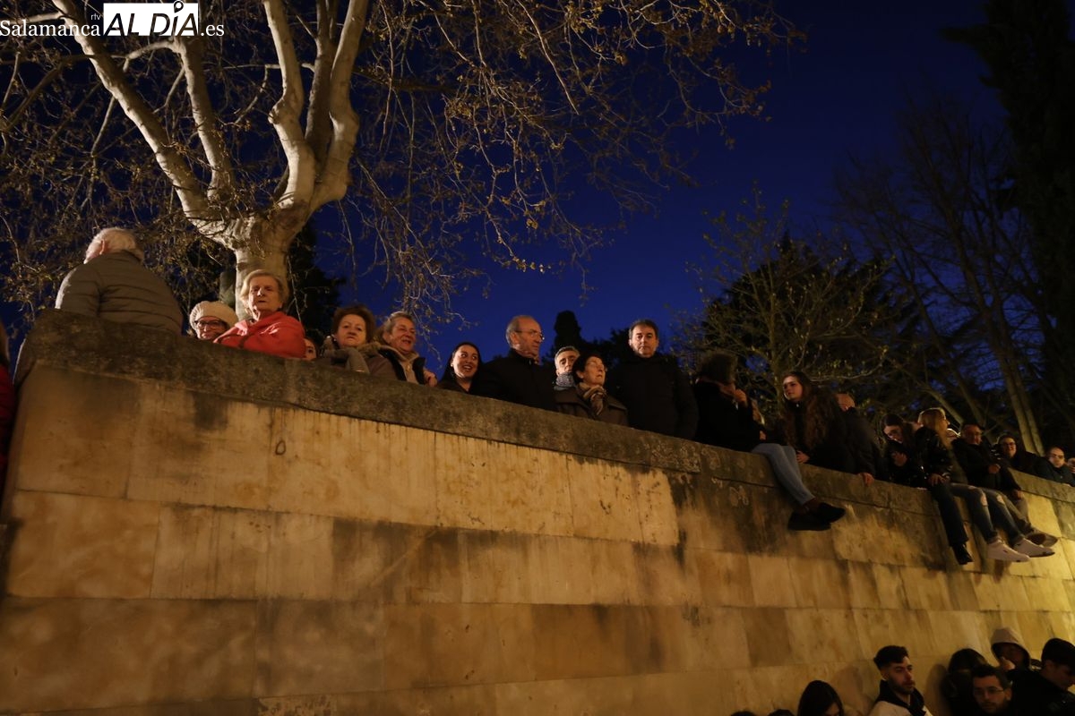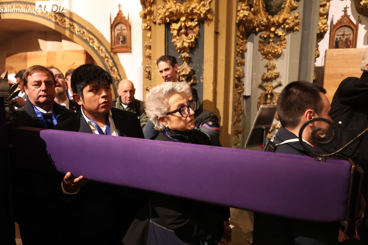 El cortejo ha iniciado su marcha desde la iglesia de la Vera Cruz. Este primer desfile de la Pasión salmantina se concibe como un acto popular, al que la hermandad ha invitado a participar a todas las parroquias y católicos, recordando que no es una procesión exclusiva para los cofrades.