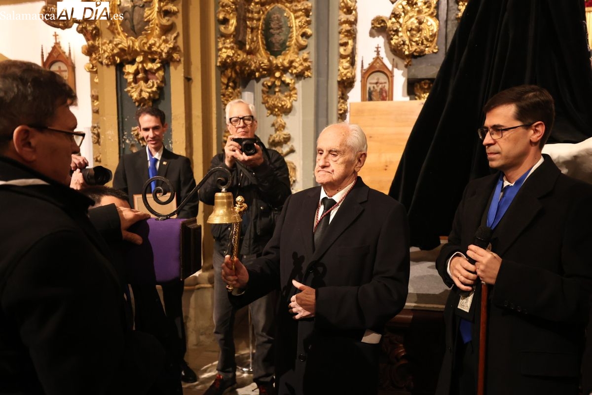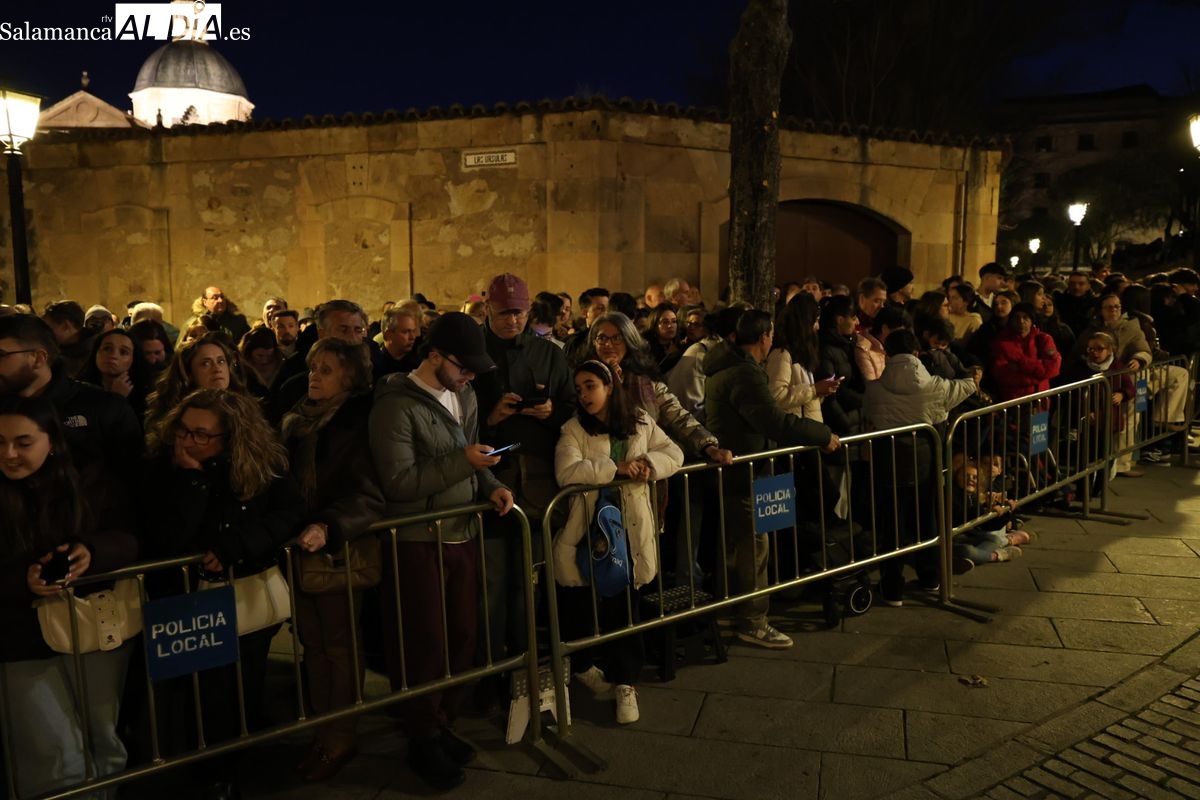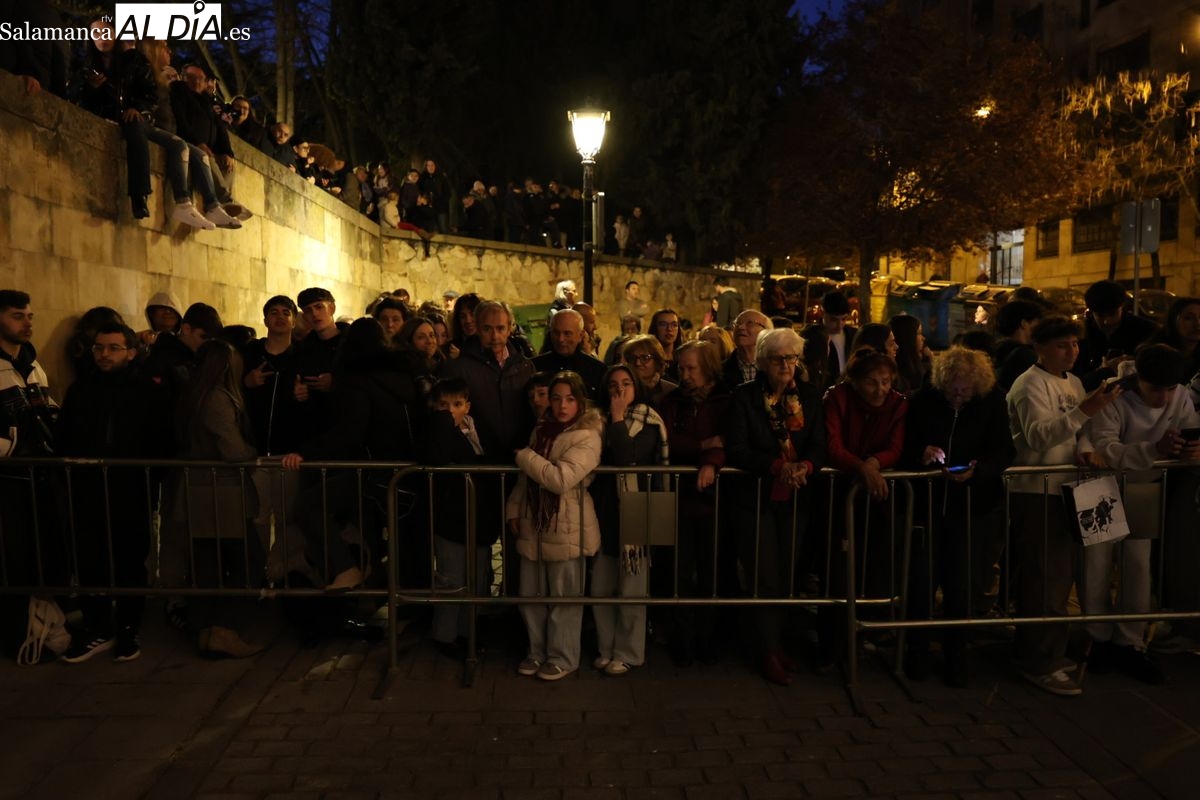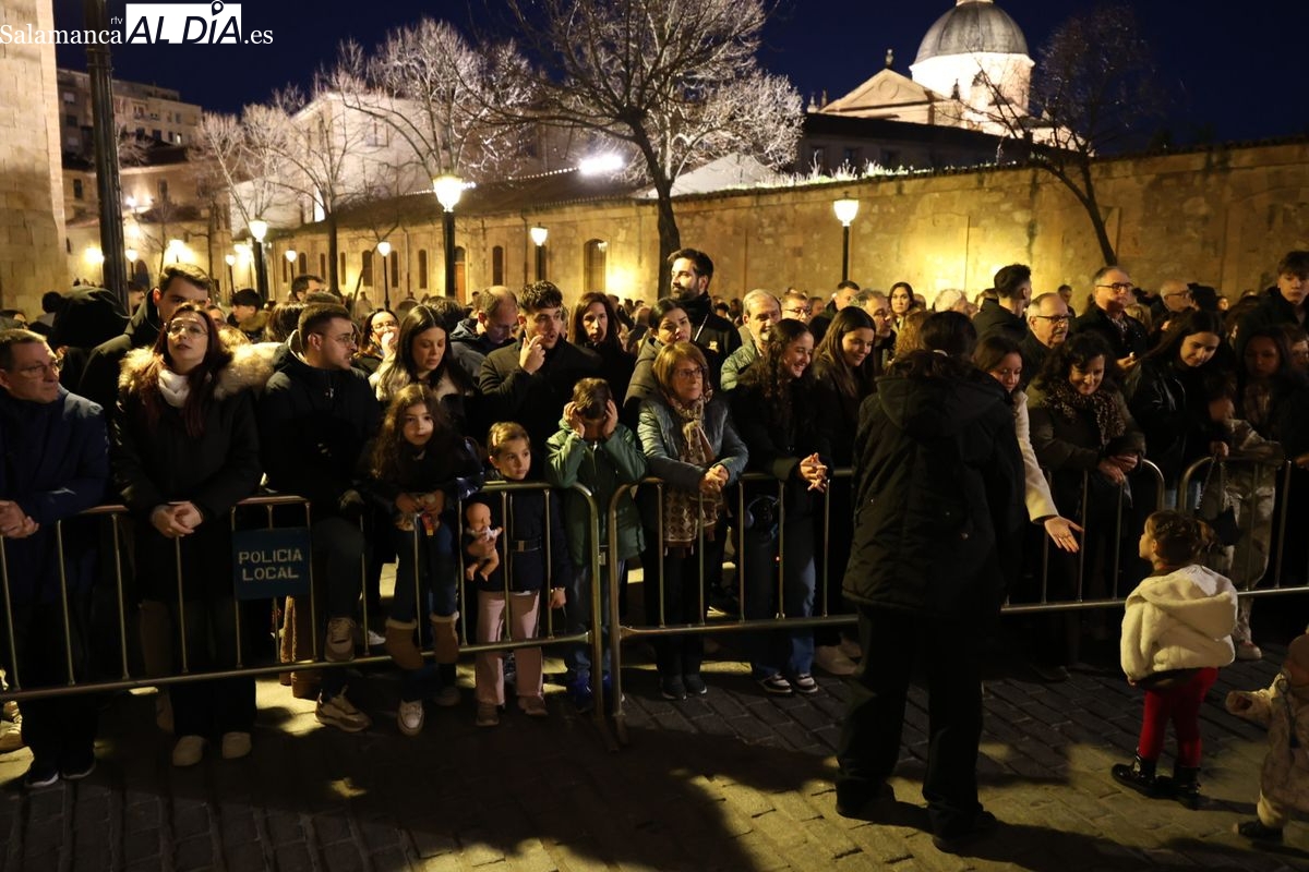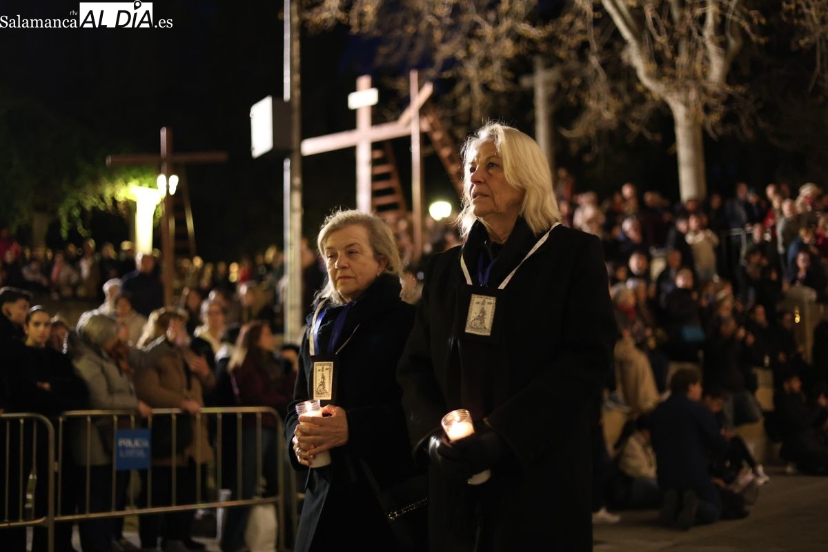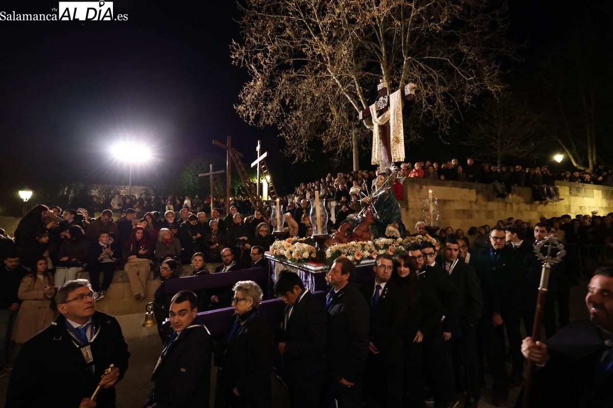 El cortejo ha iniciado su marcha desde la iglesia de la Vera Cruz. Este primer desfile de la Pasión salmantina se concibe como un acto popular, al que la hermandad ha invitado a participar a todas las parroquias y católicos, recordando que no es una procesión exclusiva para los cofrades.
