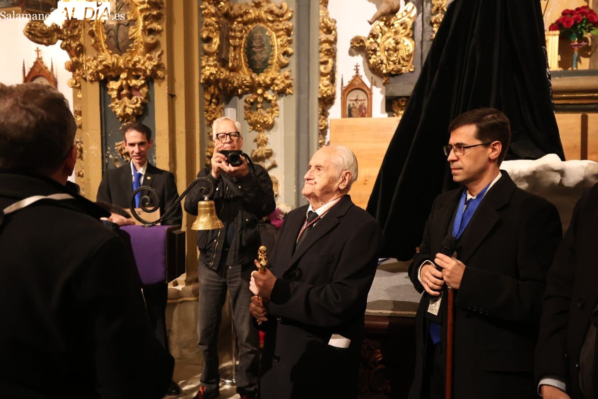 Uno de los momentos más emotivos de la jornada se ha vivido antes del inicio de la marcha. La llamada de honor de este año ha recaído en el histórico cofrade Bernardo García San José, un reconocimiento que ha coincidido además con el centenario de su hermandad, la Seráfica.