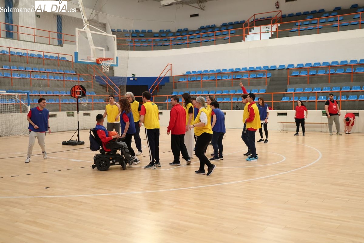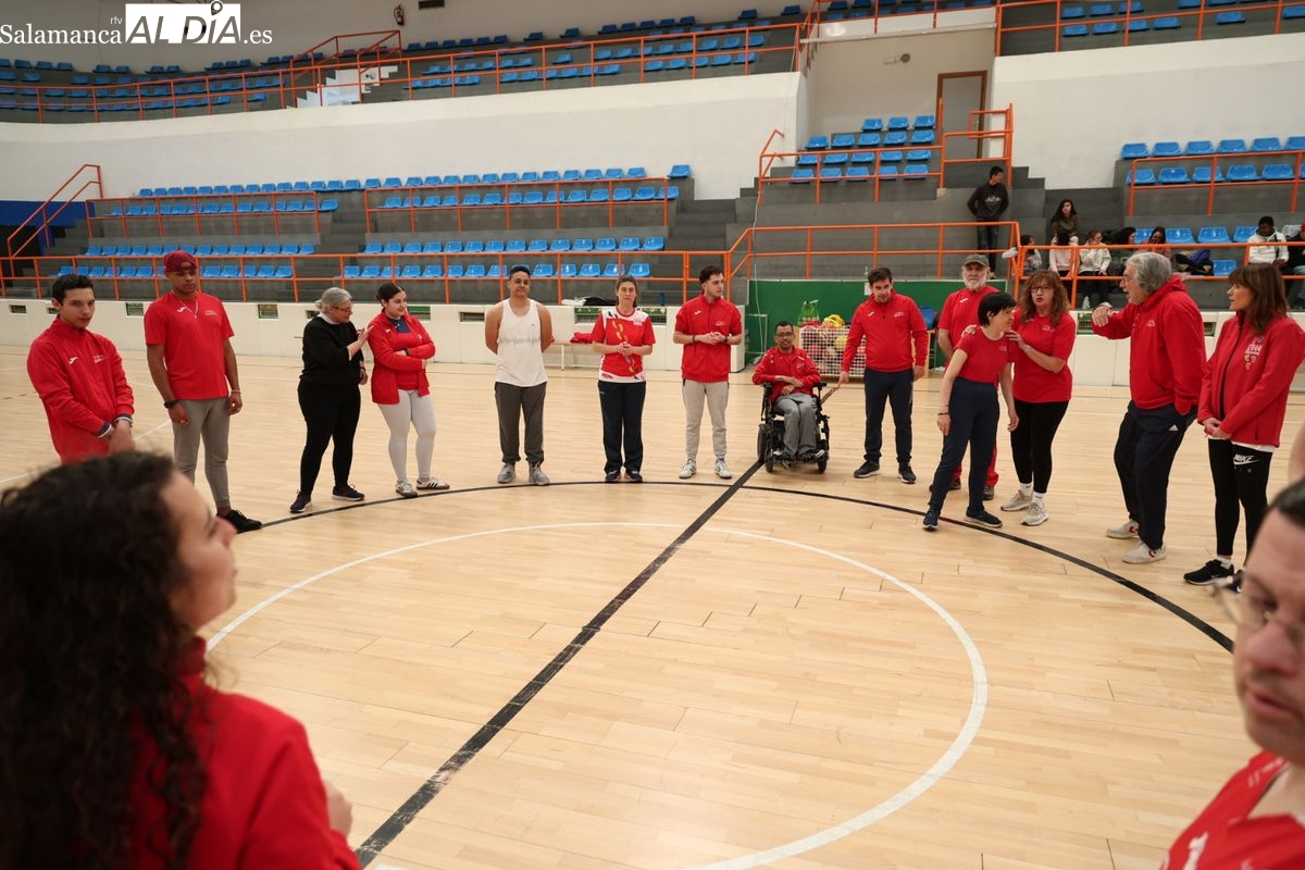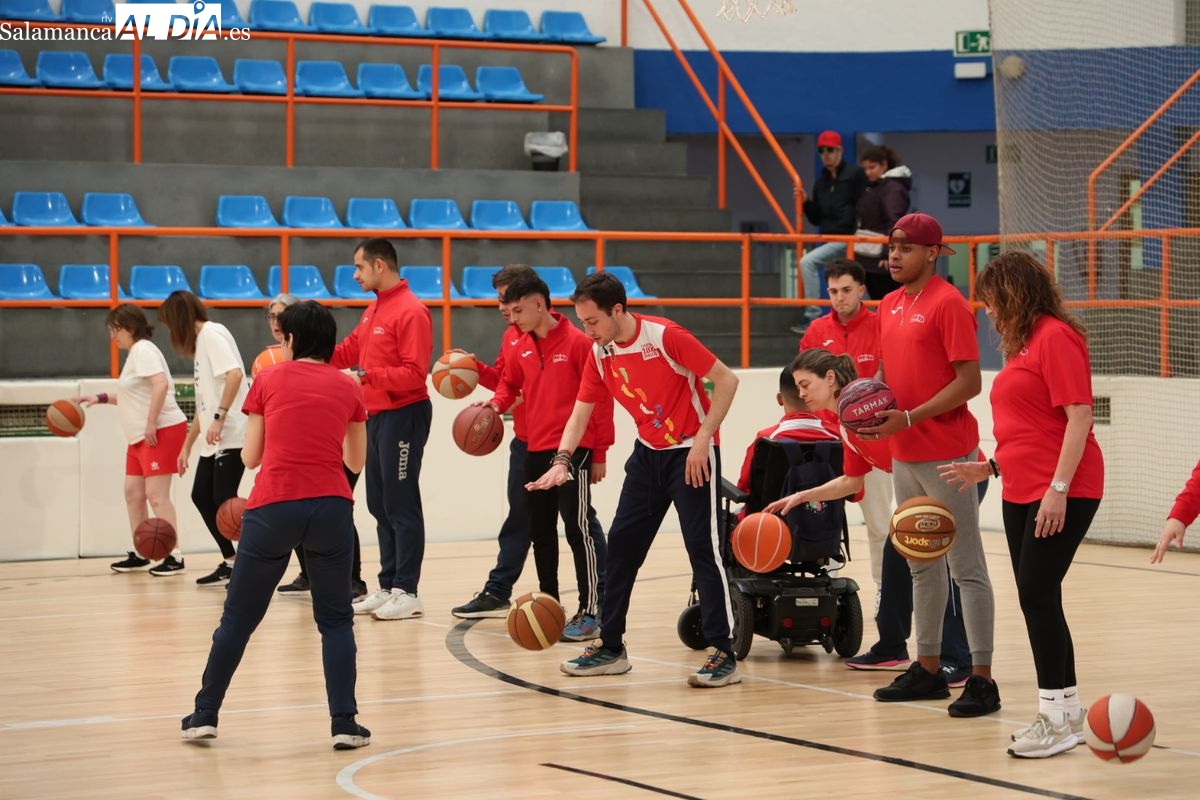 El Pabellón Municipal de La Alamedilla de Salamanca ha acogido una nueva jornada de preparación de baloncesto de la Fundación AVIVA. Durante la sesión, los chicos y chicas con discapacidad han recibido el apoyo institucional del Consistorio salmantino a través de la presencia de la responsable municipal del área de Deportes.