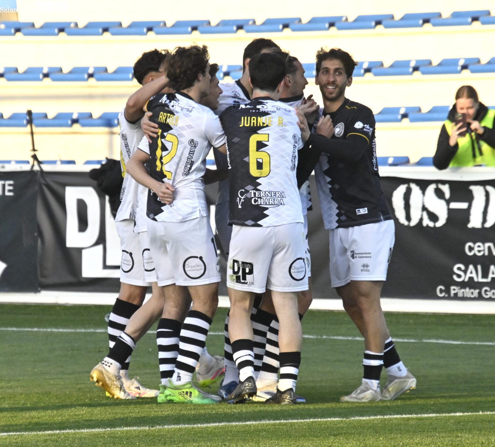 A partir de ahí, los charros han visto cómo tanto Salvi como Farru han evitado la igualada gallega con buenas acciones defensivas, mientras que Piñán se ha sacado de la manga un golazo al rematar de primeras desde fuera del área un pase bonito de DLN. En la escuadra la ha puesto Aarón para subir el 2-0 al marcador justo antes del descanso.