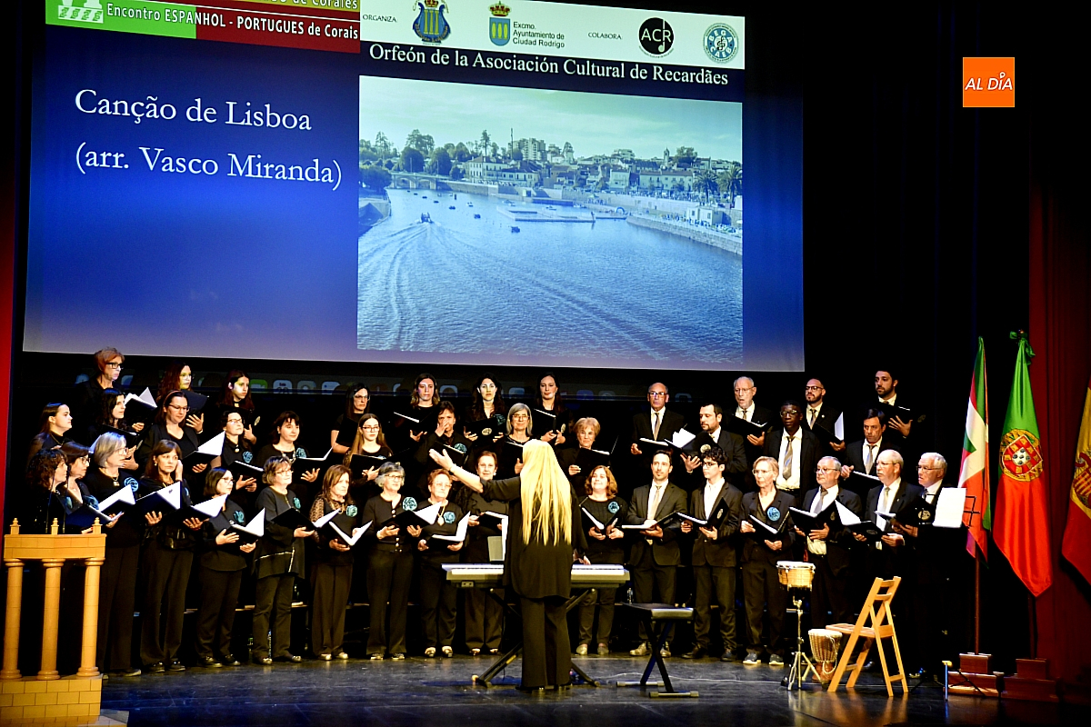 El Teatro Nuevo Fernando Arrabal de Ciudad Rodrigo acogió, en la tarde del sábado —víspera del Domingo de Ramos—, la sexta edición del Encuentro Hispano-Luso de Corales, una cita ya asentada en el calendario cultural mirobrigense que volvió a confirmar la vigencia del canto coral como espacio de encuentro, memoria y celebración compartida.