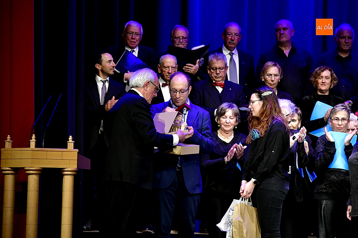 Uno de los momentos más significativos de la velada fue el homenaje rendido por la Coral ‘Dámaso Ledesma’, a través de su presidente, José Antonio Gorjón, a dos de sus miembros más veteranos: Mª Nieves Hernández Hernández y José Manuel Gutiérrez Martín. Ambos recibieron el reconocimiento público por su prolongada dedicación y su trabajo desinteresado, ejemplo de una forma de pertenencia que trasciende lo estrictamente musical.