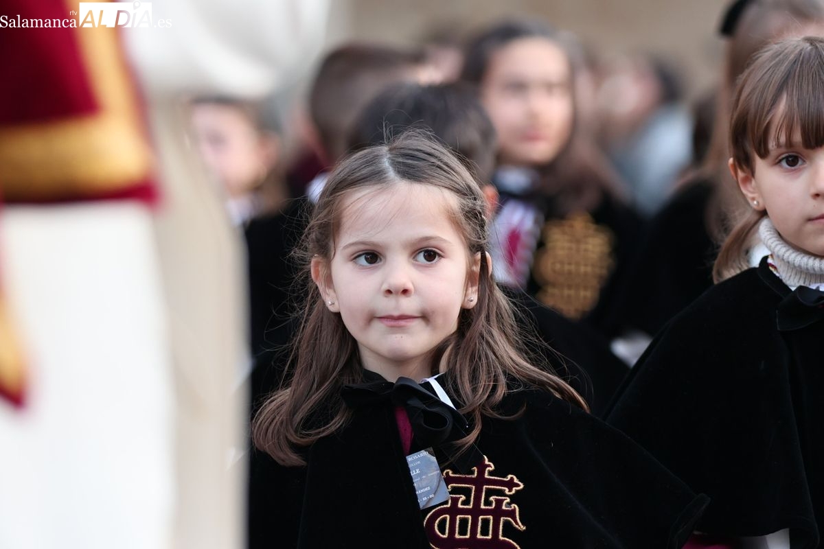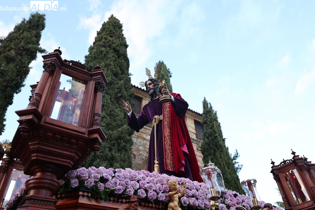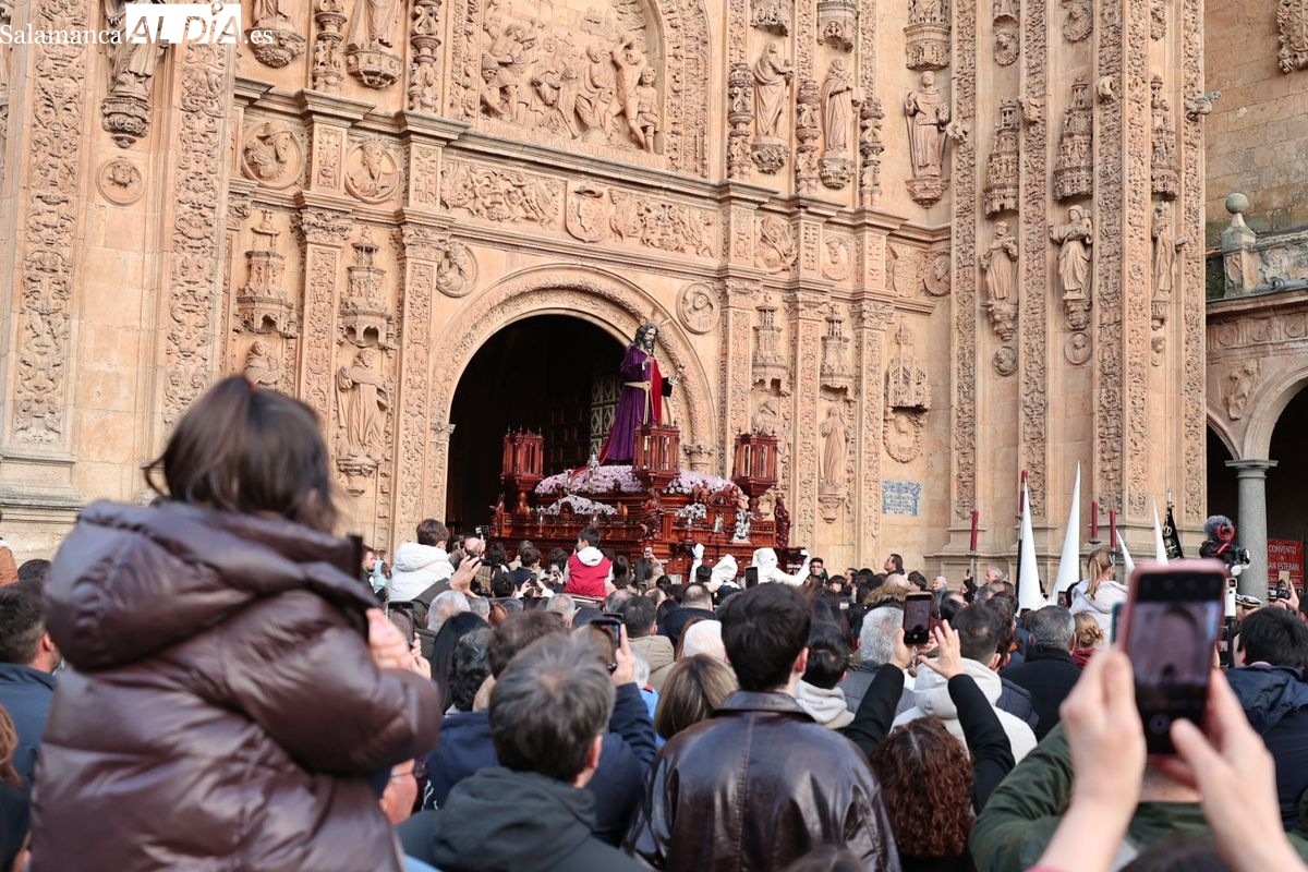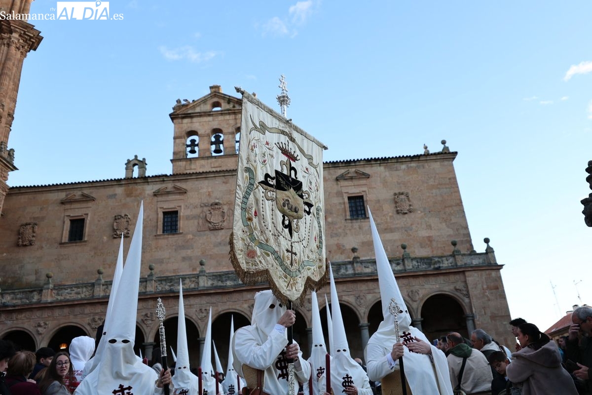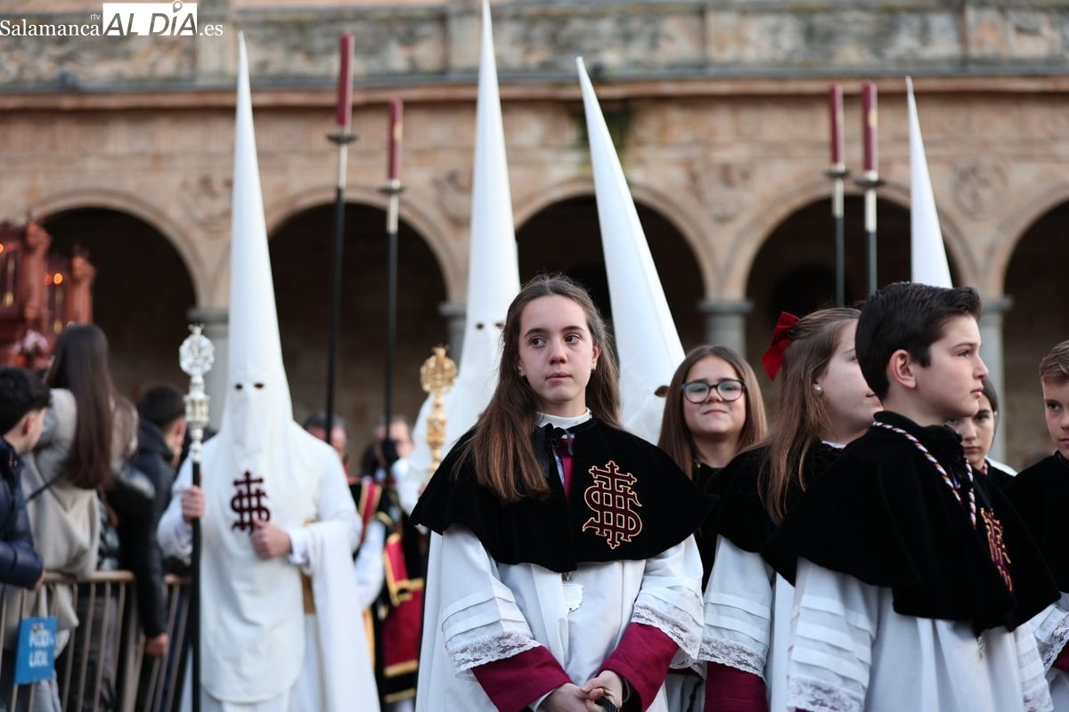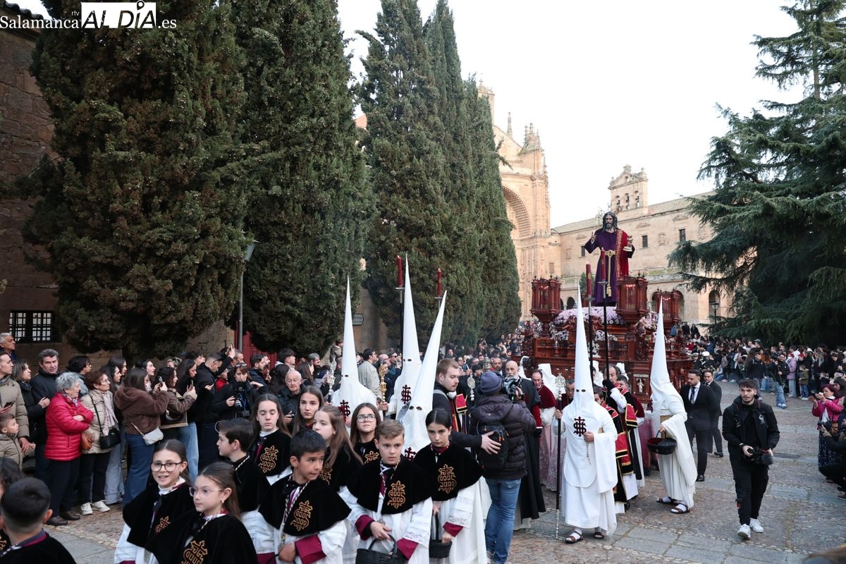 Emoción en el regreso de Jesús de la Redención a las calles de Salamanca. La Archicofradía del Rosario ha procesionado este Sábado Santo manteniendo la estructura consolidada en los últimos años. El cortejo contó nuevamente con los sones de la banda de la Santísima Trinidad de Palencia, que acompañó el caminar de los cofrades durante todo el itinerario tars su salida de la Iglesia de San Esteban.