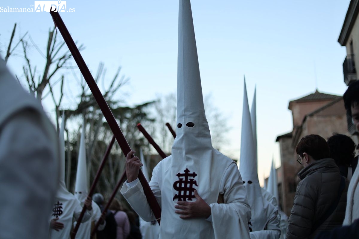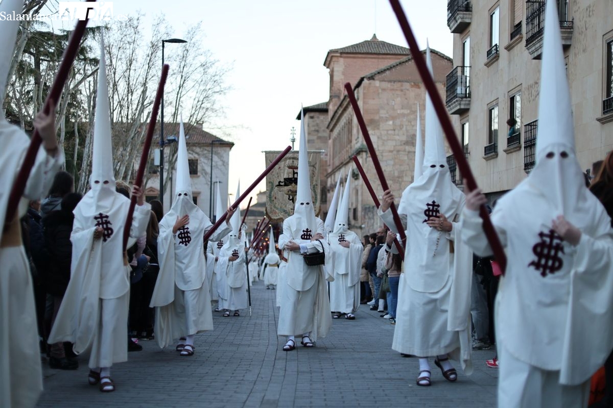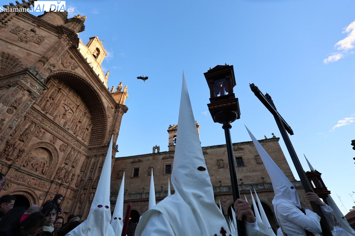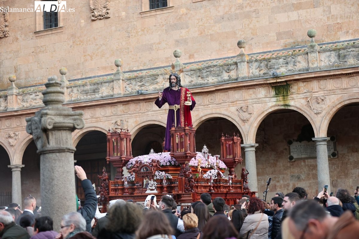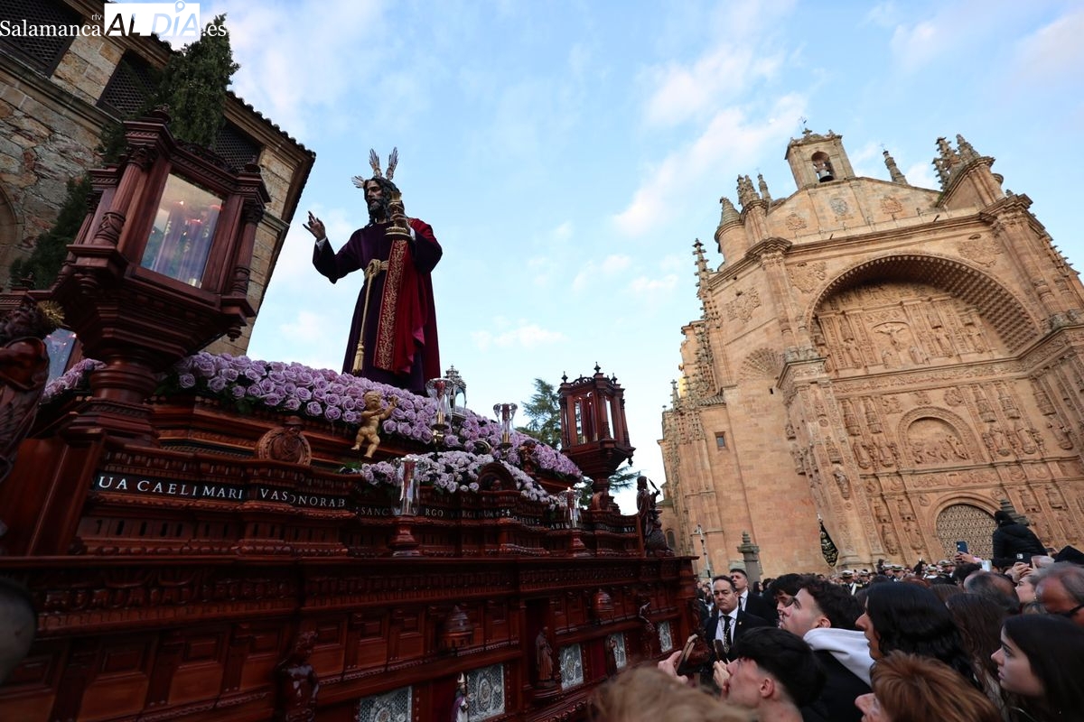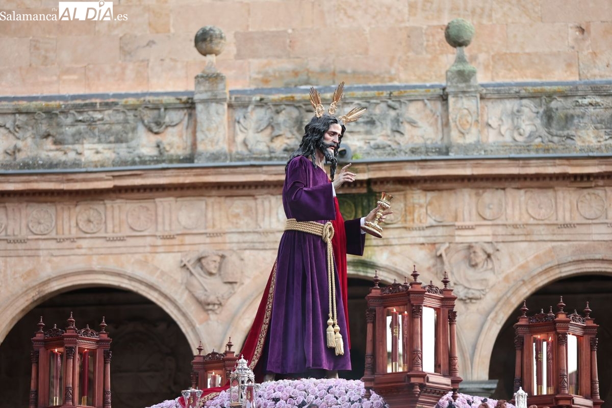 Emoción en el regreso de Jesús de la Redención a las calles de Salamanca. La Archicofradía del Rosario ha procesionado este Sábado Santo manteniendo la estructura consolidada en los últimos años. El cortejo contó nuevamente con los sones de la banda de la Santísima Trinidad de Palencia, que acompañó el caminar de los cofrades durante todo el itinerario tars su salida de la Iglesia de San Esteban.