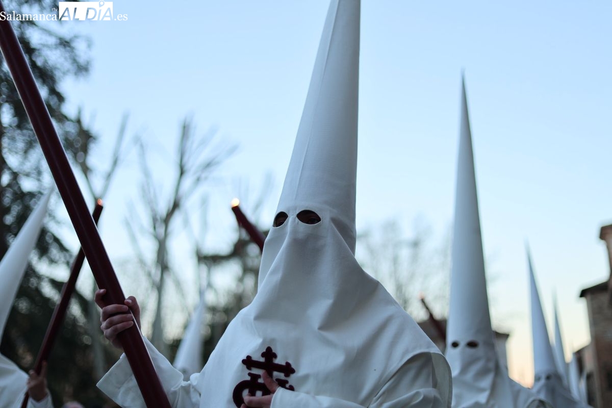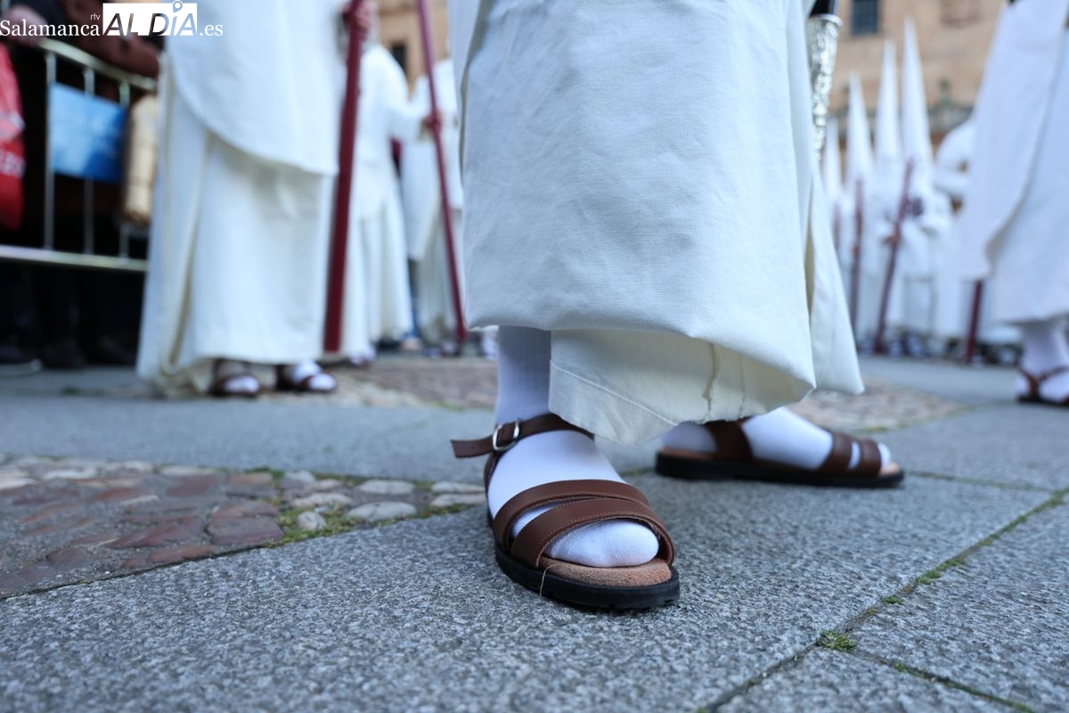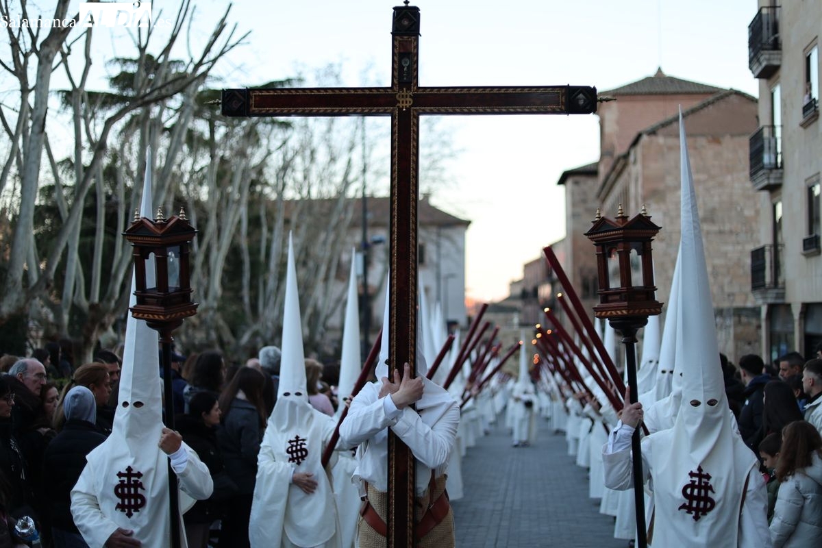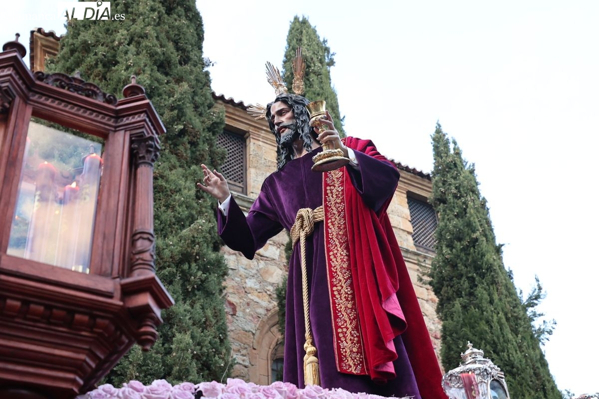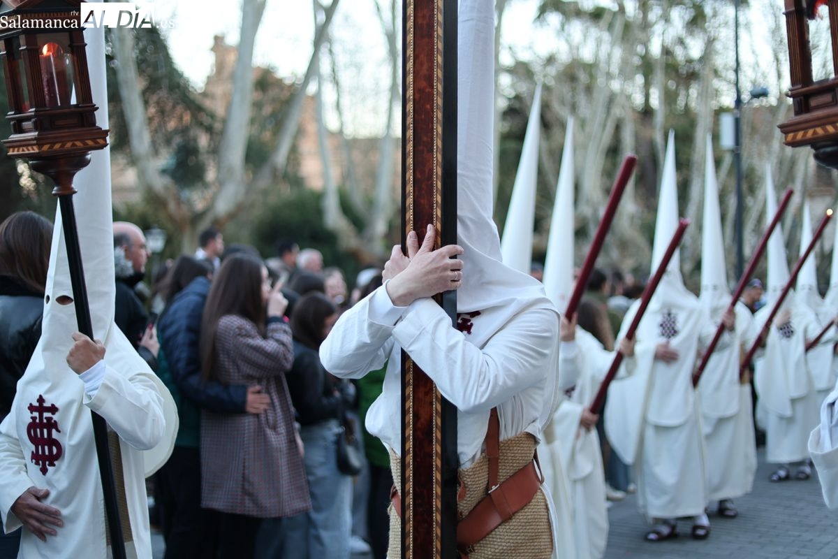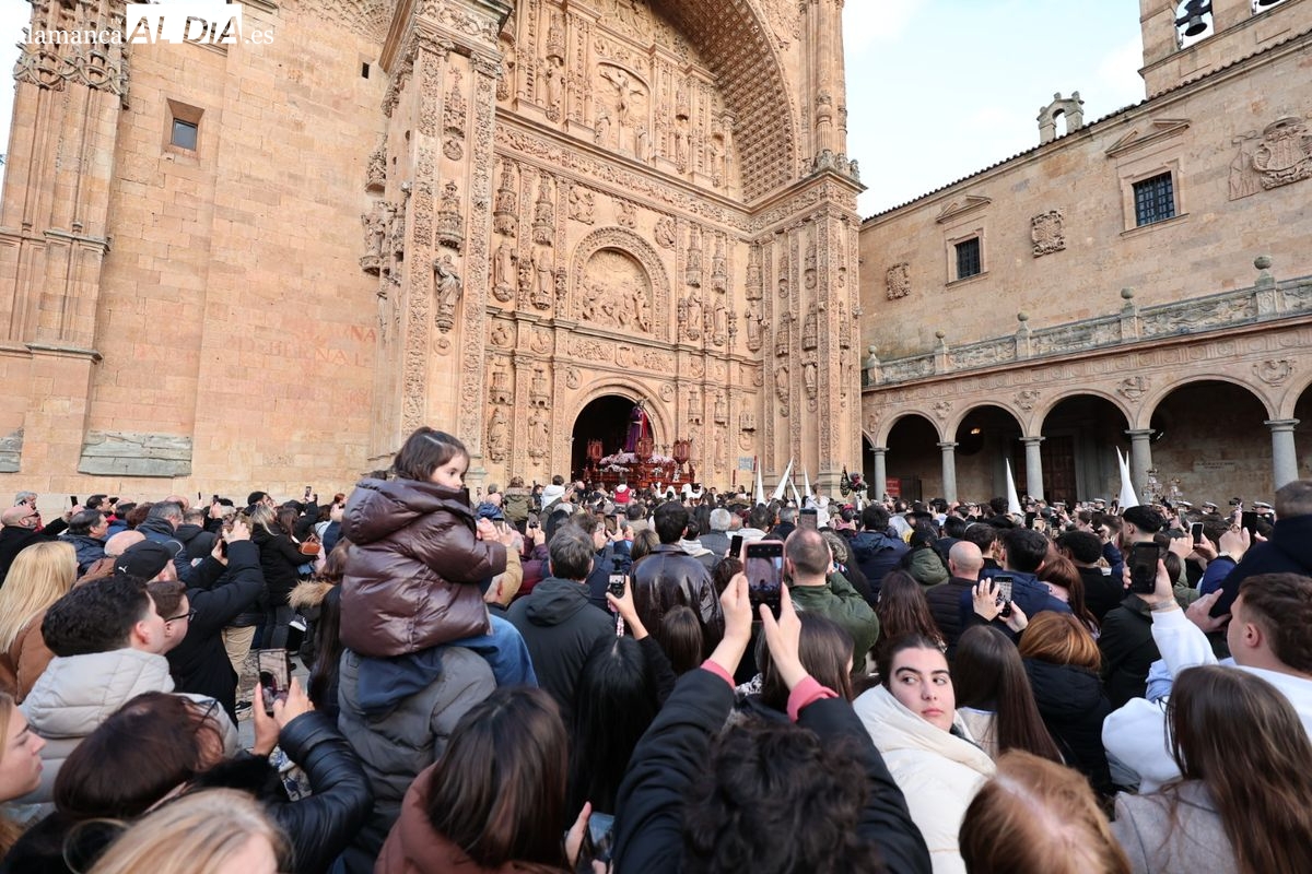 Emoción en el regreso de Jesús de la Redención a las calles de Salamanca. La Archicofradía del Rosario ha procesionado este Sábado Santo manteniendo la estructura consolidada en los últimos años. El cortejo contó nuevamente con los sones de la banda de la Santísima Trinidad de Palencia, que acompañó el caminar de los cofrades durante todo el itinerario tars su salida de la Iglesia de San Esteban.