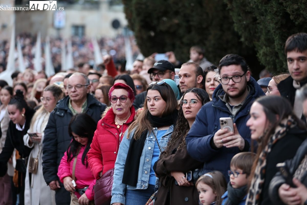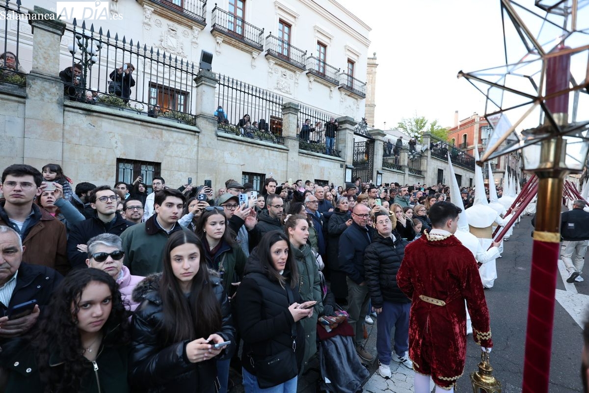 Cientes de fieles no han dudado en acercarse a ver la salida del paso y también en diferetes puntos de la ciudad. Desde la Iglesia de San Esteban, el paso se ha desplazadohacia la plaza del Concilio de Trento, calle San Pablo, calle Sánchez Barbero, Mayor, Benedicto XVI, S.I.B. Catedral Nueva (entrada y salida por puerta del Obispo) calle Calderón de la Barca, calle Libreros, plaza de San Isidro, calle Serranos, calle Cervantes, calle Ancha, plaza de las Agustinas, calle Compañía, calle Palominos, Rúa Mayor, calle Jesús, calle San Pablo, plaza del Concilio de Trento para regresar de nuevo a la iglesia de San Esteban.