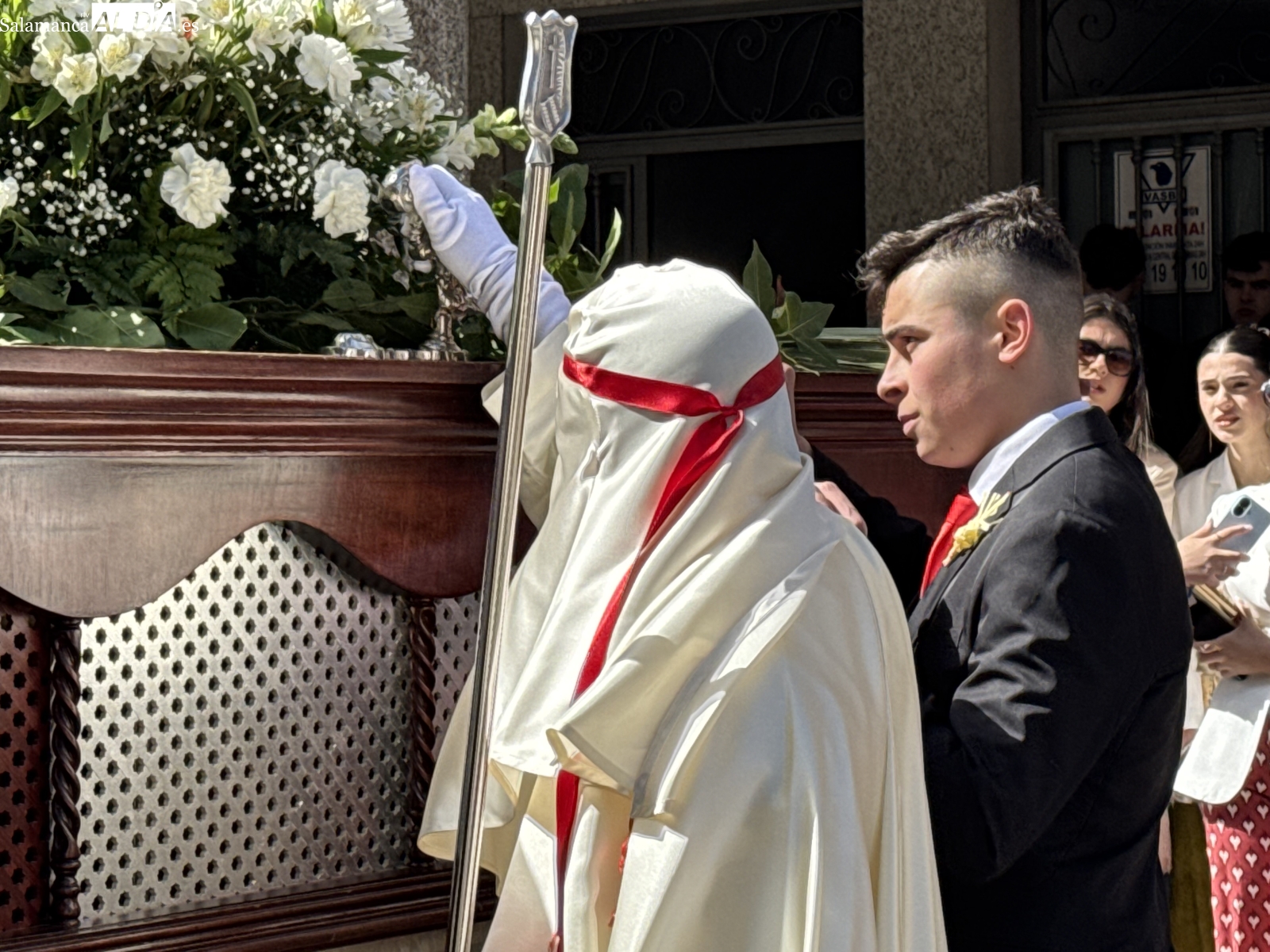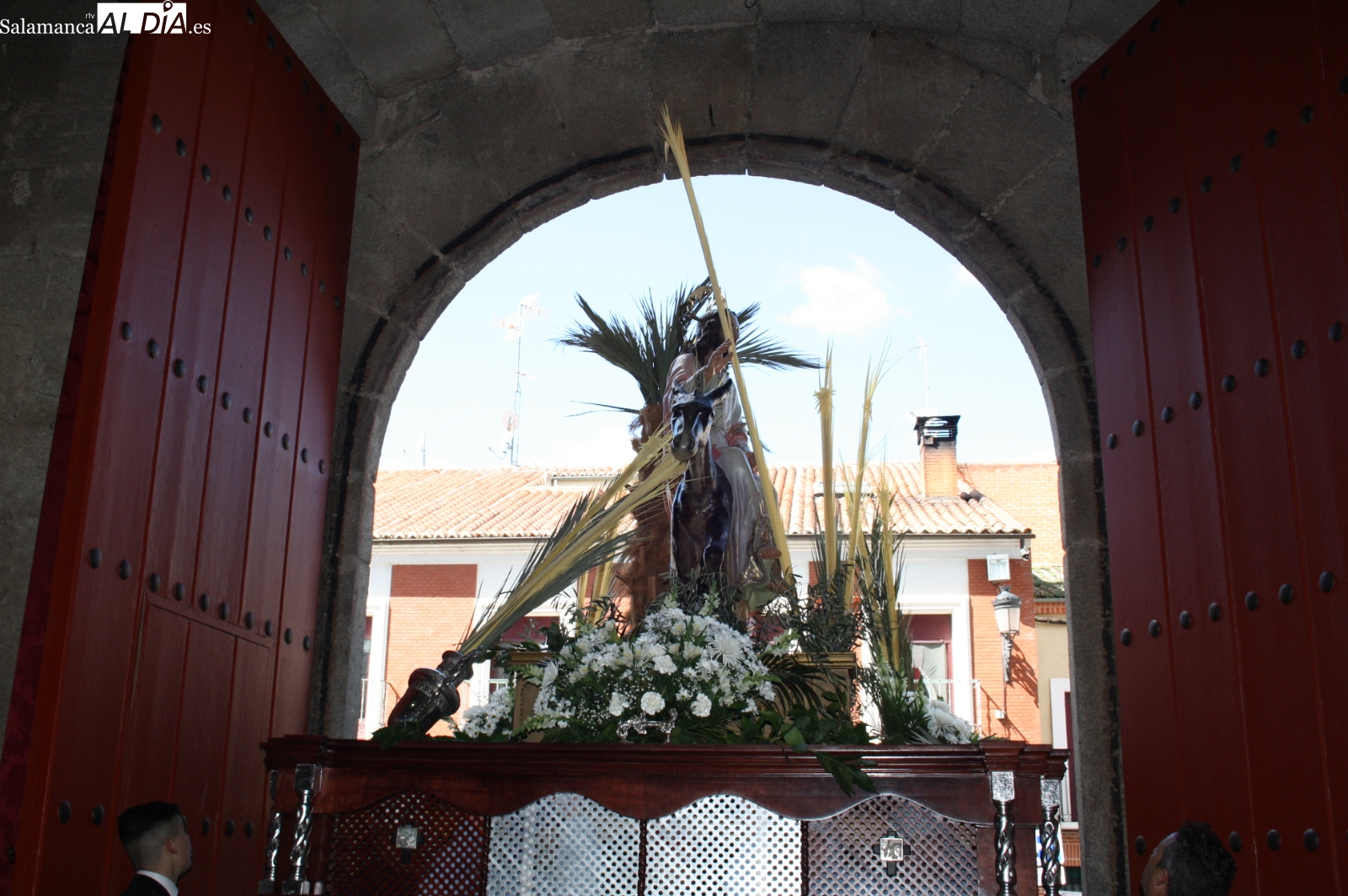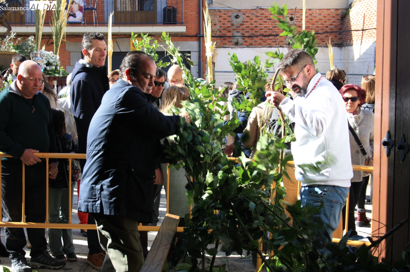 Desde las diez y media de la mañana, la Ermita de San Luis comenzaba a llenarse de vecinos, cofrades y familias enteras que acudían puntuales a una de las citas más esperadas del calendario litúrgico. A las puertas del templo, se hacía entrega del tradicional ramo de laurel, símbolo de fe y de la entrada triunfal, mientras en el interior se vivían momentos de especial emoción con los preparativos de los 40 niños que este año recibirán su Primera Comunión. Ataviados para la ocasión, fueron ellos quienes, un año más, escoltaron a la borriquilla en su recorrido por la ciudad, aportando una estampa de inocencia y renovación que contrasta con la sobriedad de los días venideros.