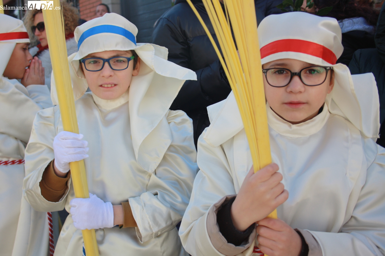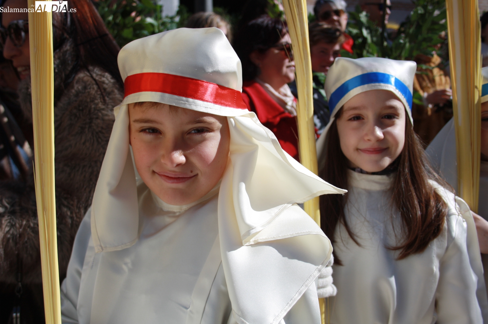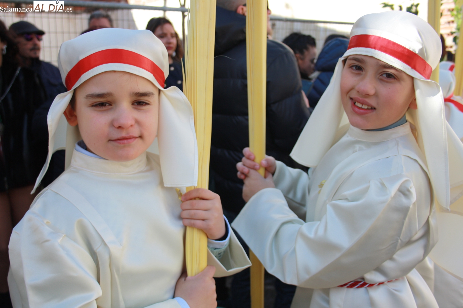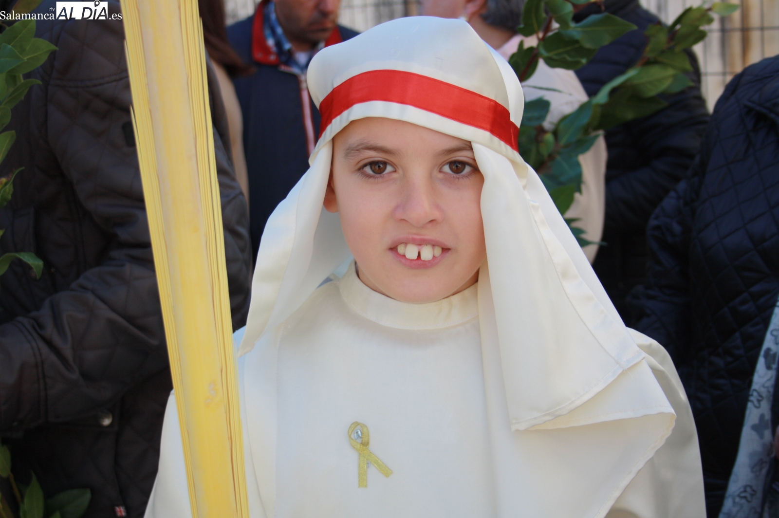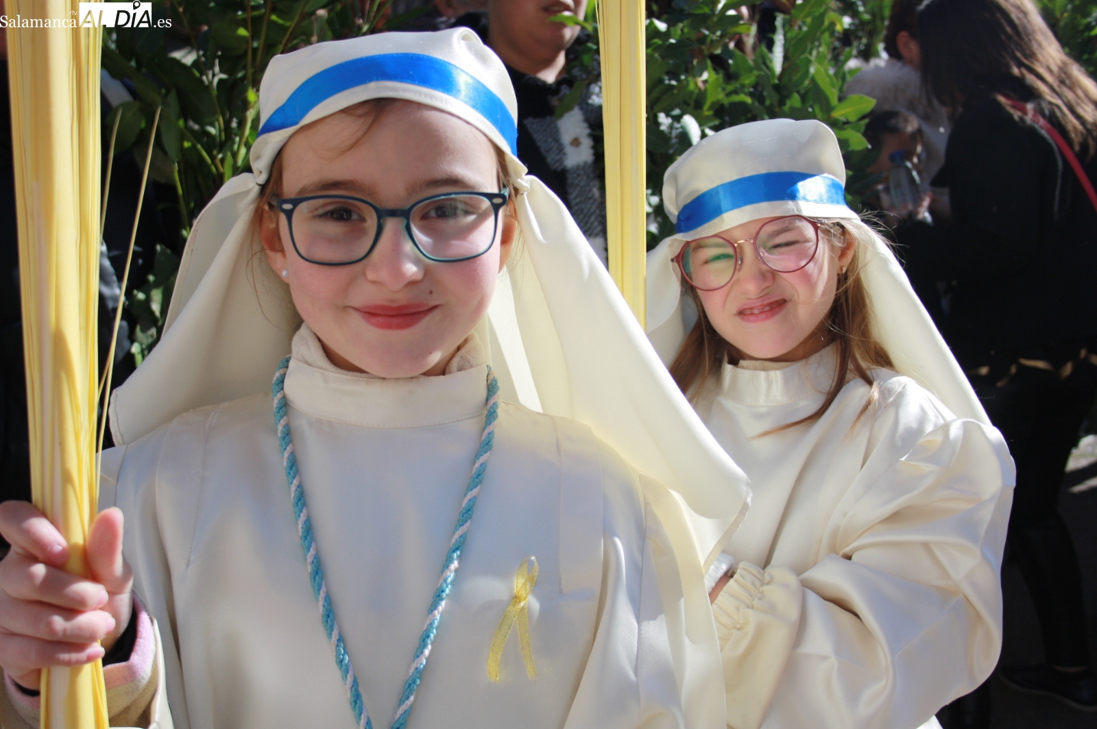 Los 40 niños y niñas que tomarán este año su Primera Comunión escoltaban el paso en su histórica procesión del Domingo de Ramos