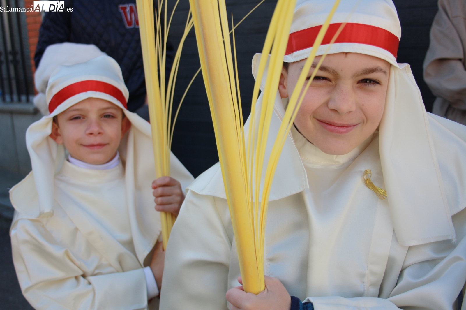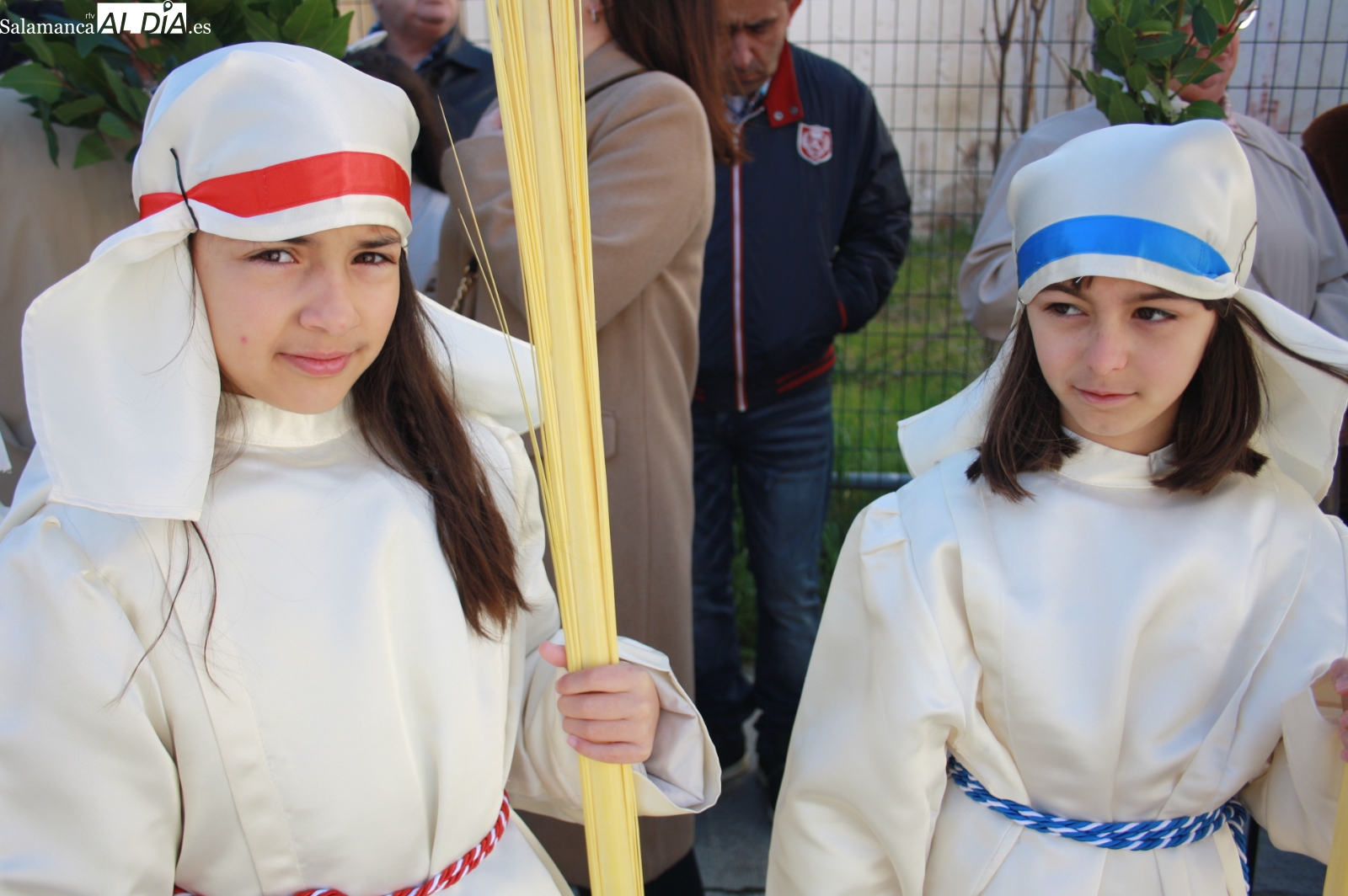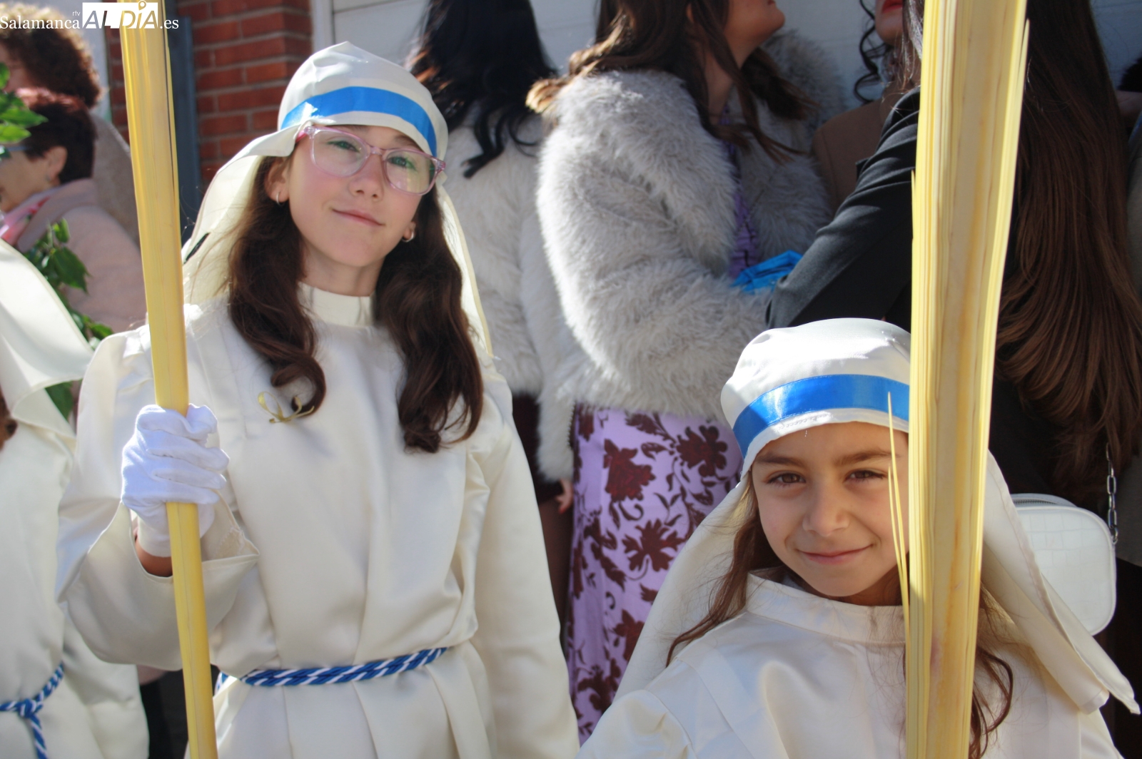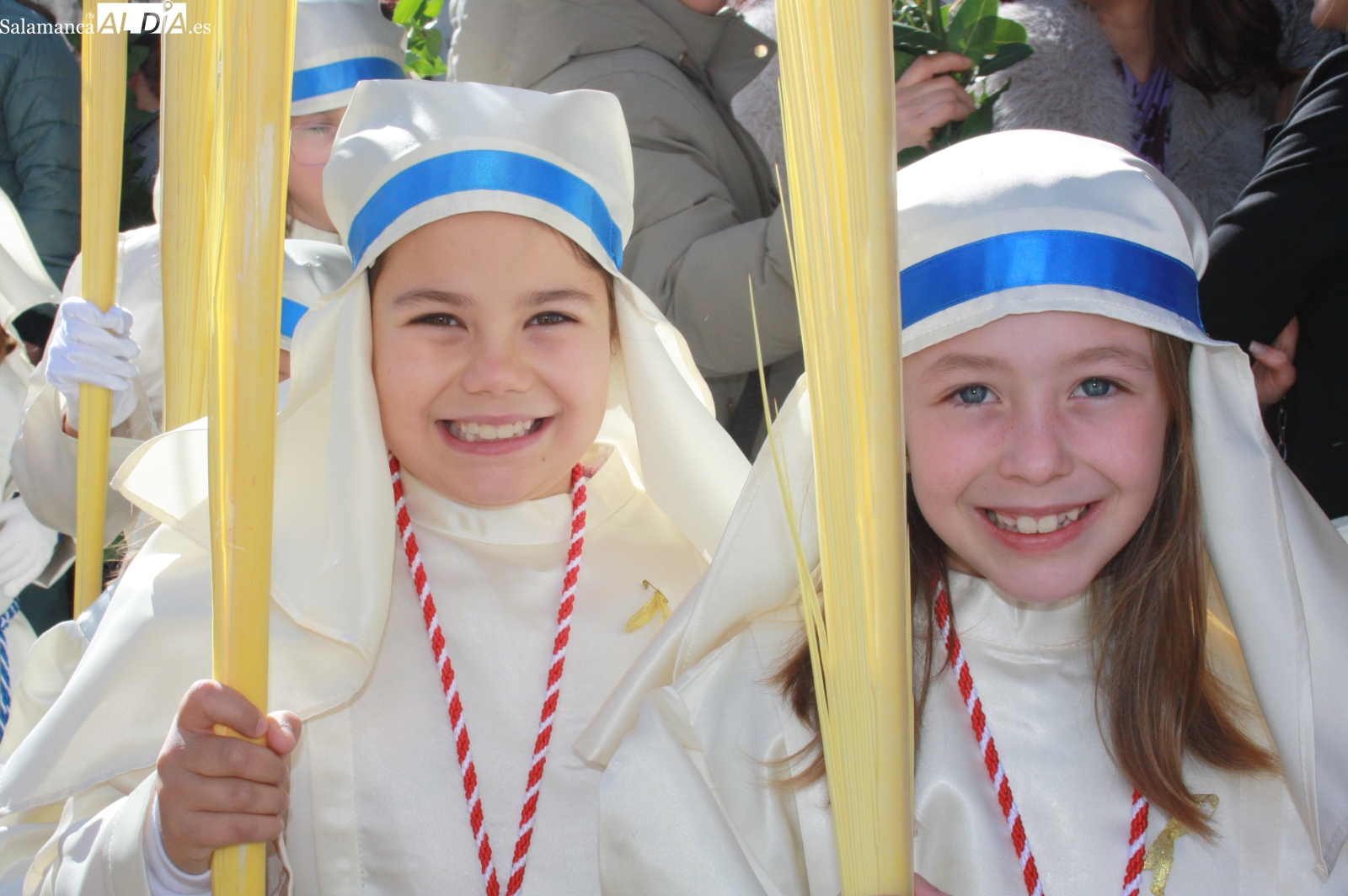 Los 40 niños y niñas que tomarán este año su Primera Comunión escoltaban el paso en su histórica procesión del Domingo de Ramos