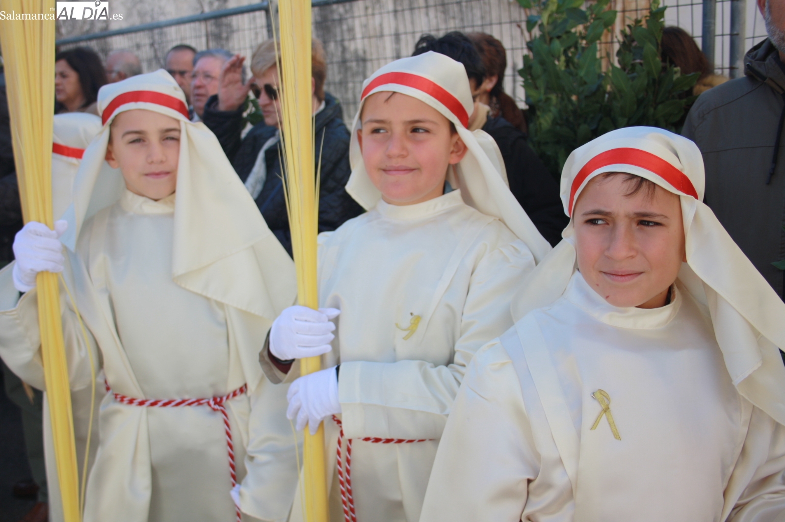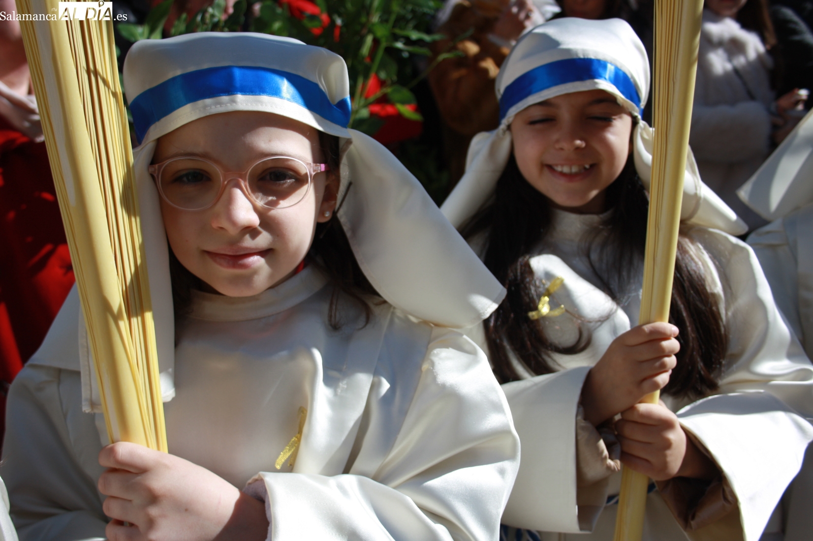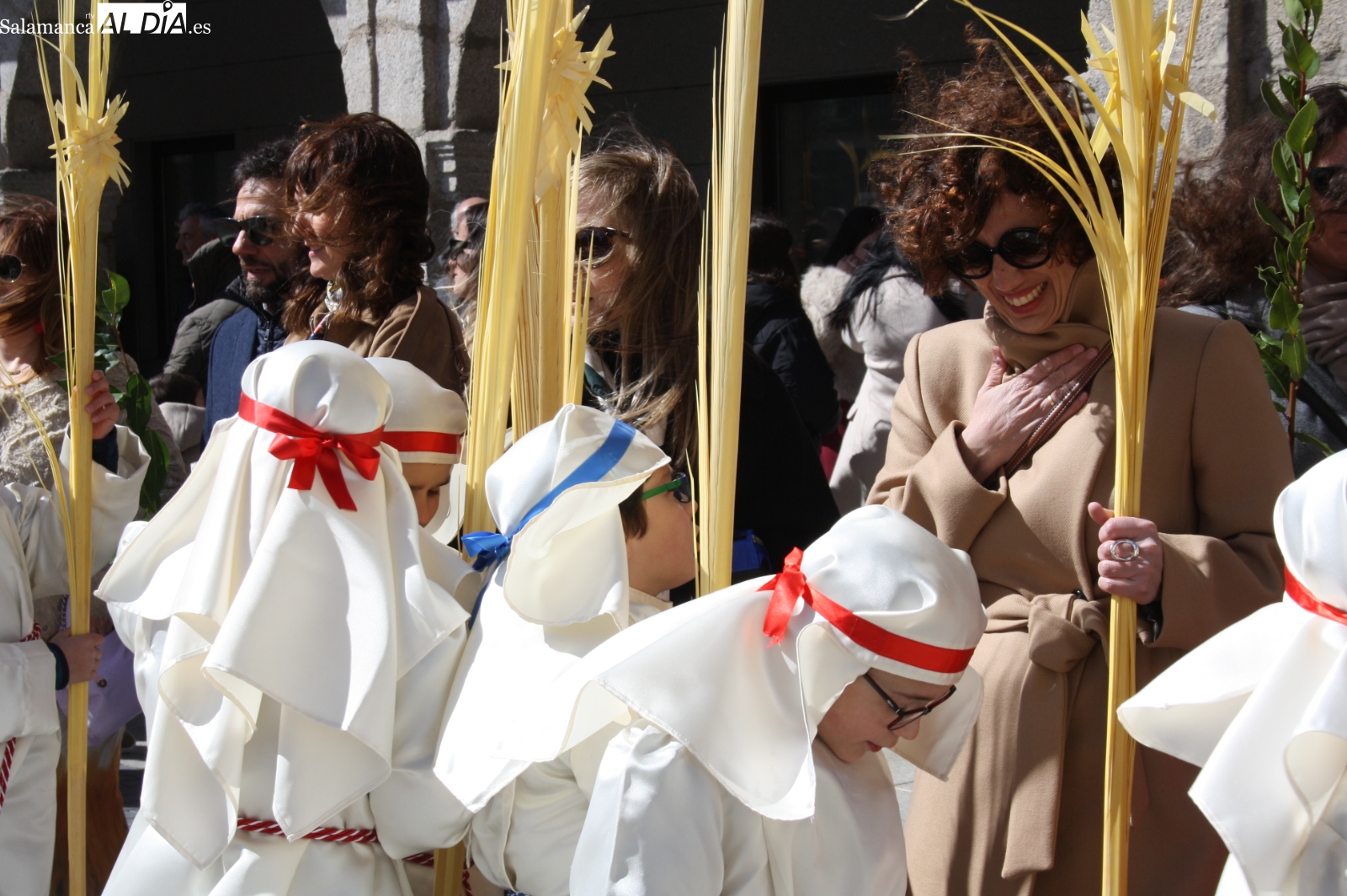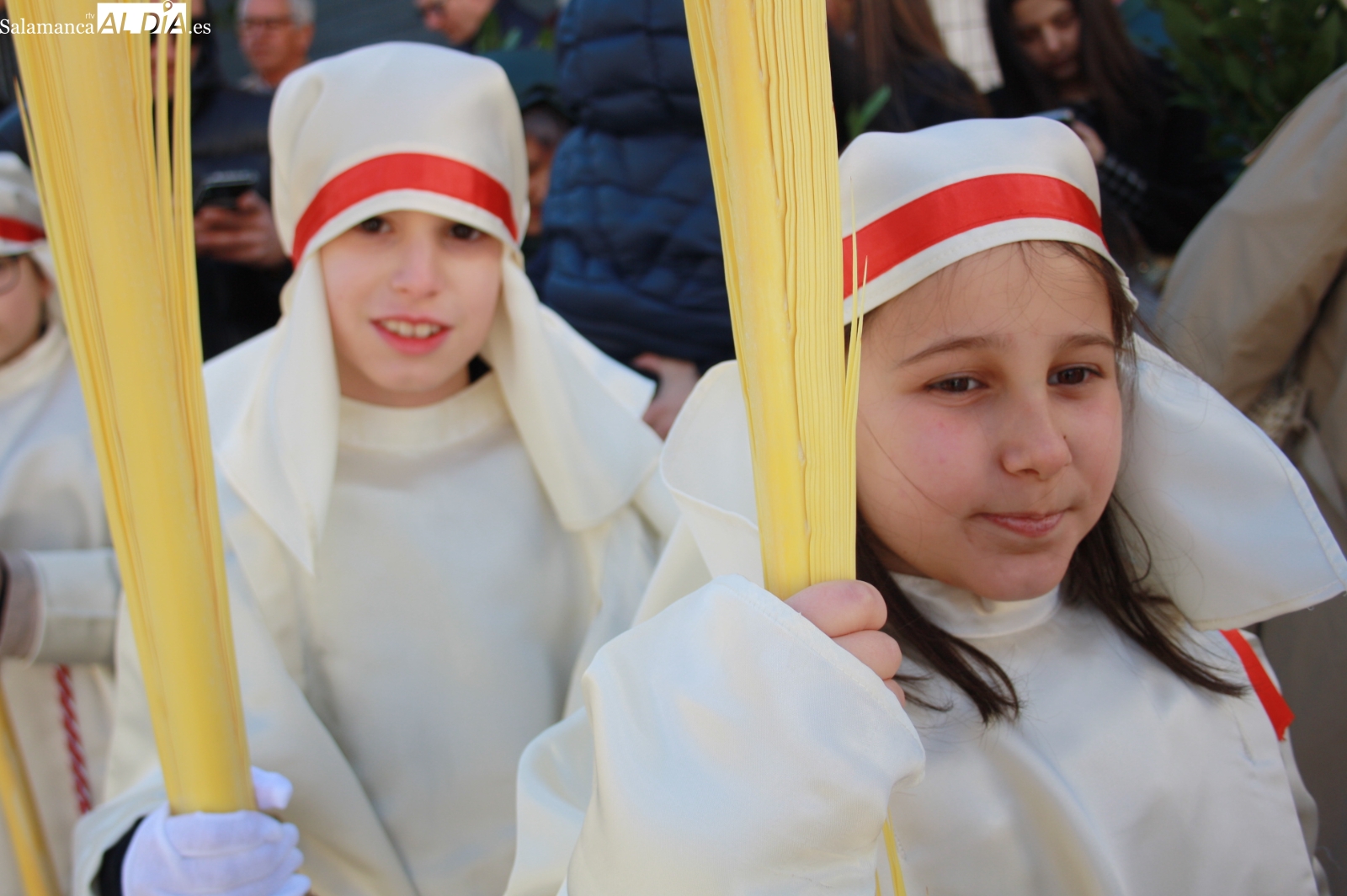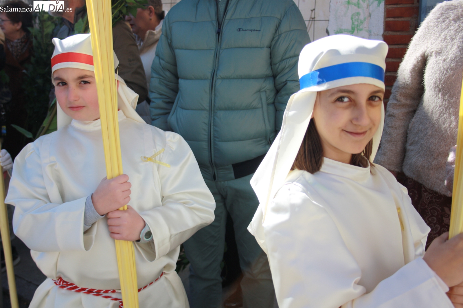 Los 40 niños y niñas que tomarán este año su Primera Comunión escoltaban el paso en su histórica procesión del Domingo de Ramos