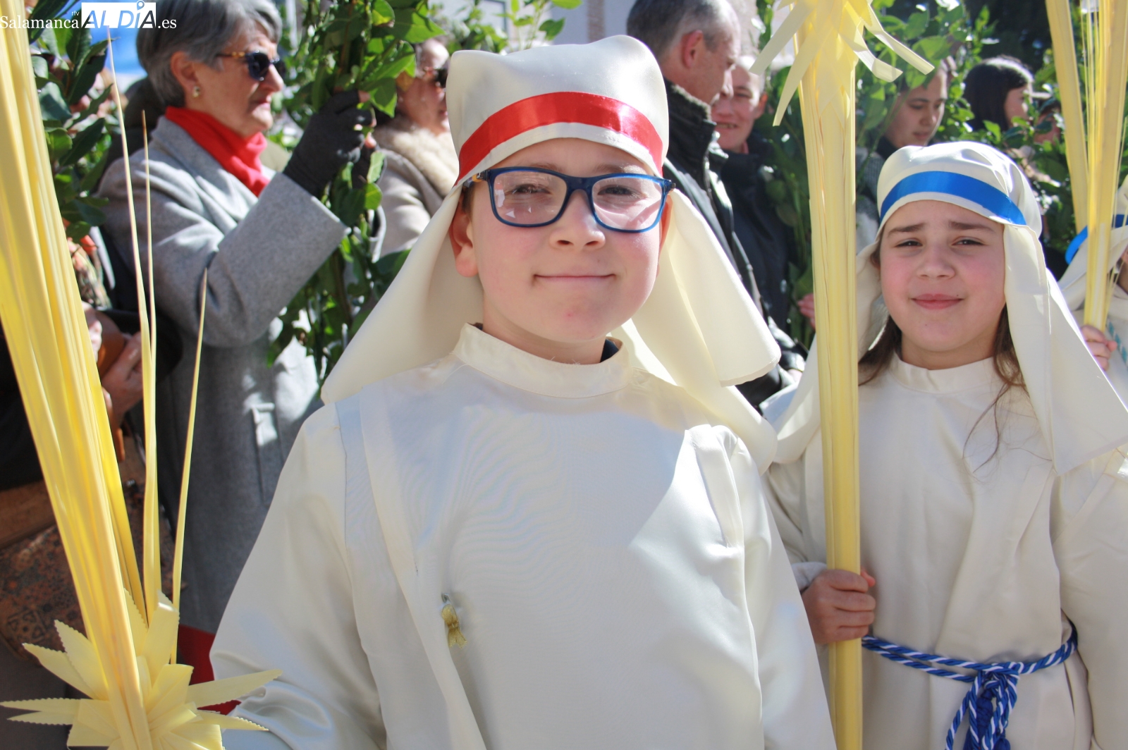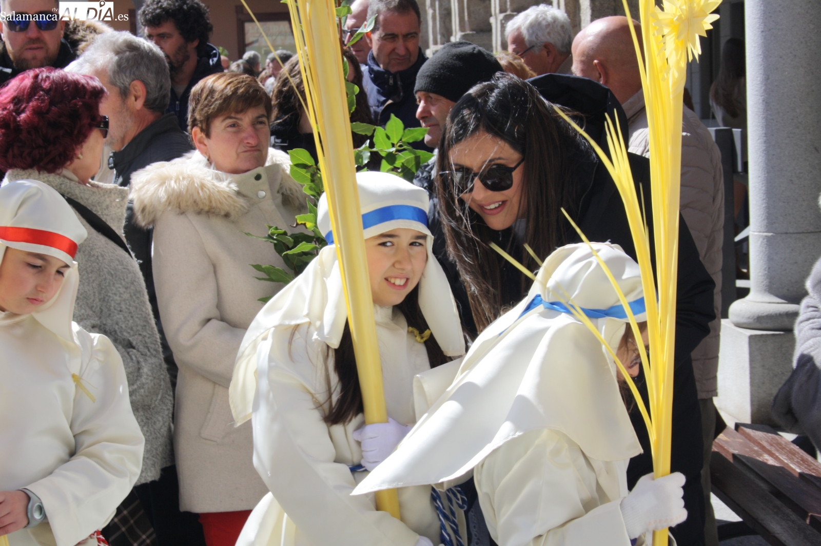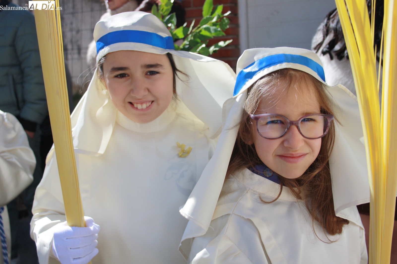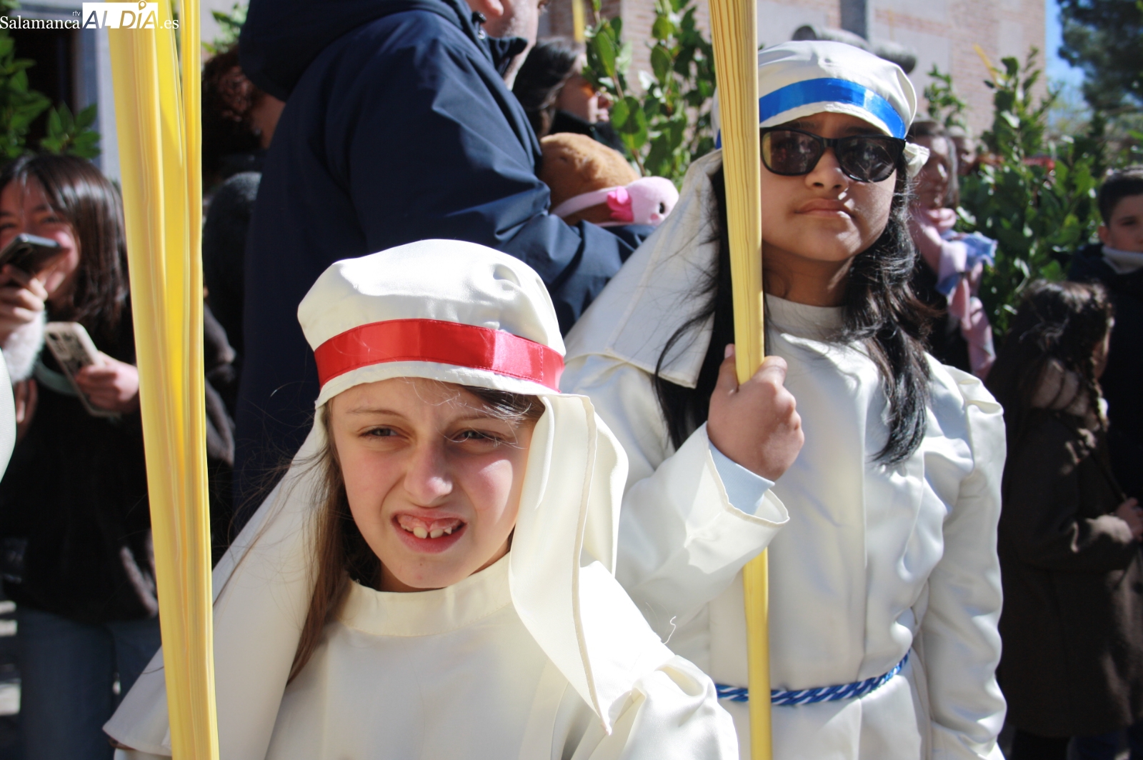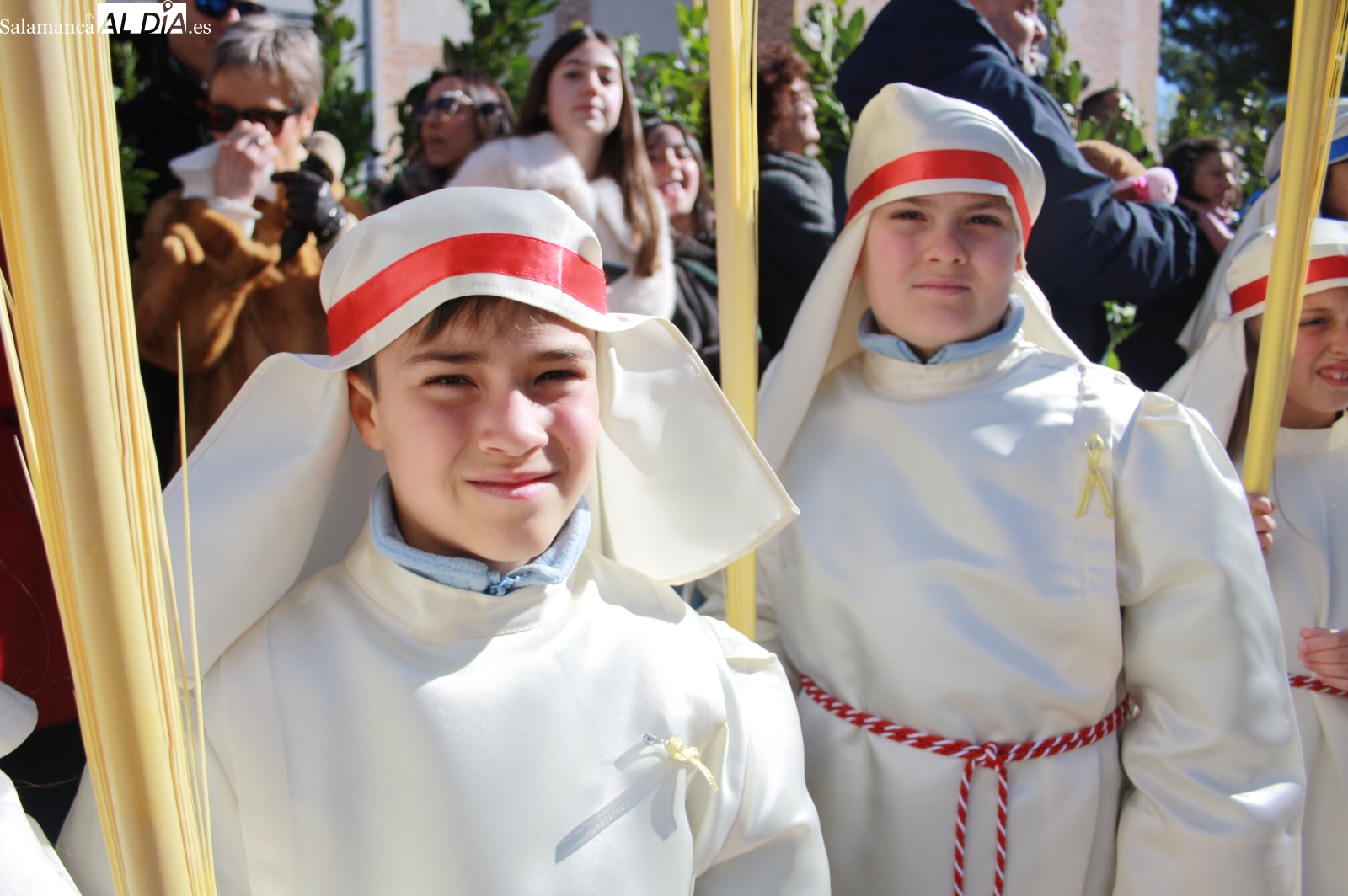 Los 40 niños y niñas que tomarán este año su Primera Comunión escoltaban el paso en su histórica procesión del Domingo de Ramos