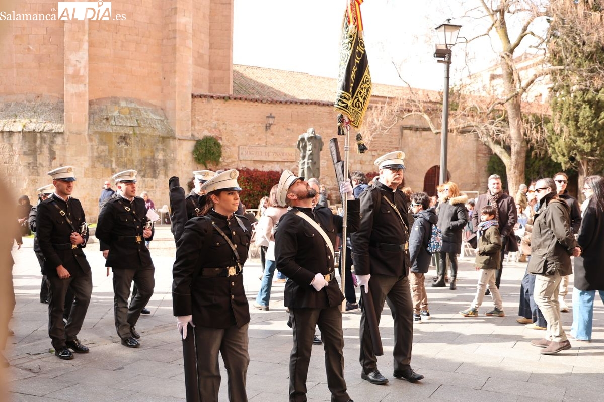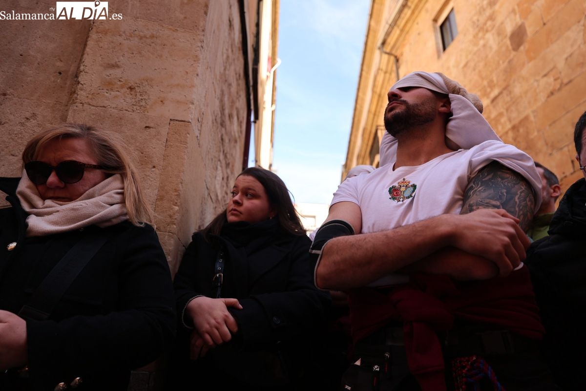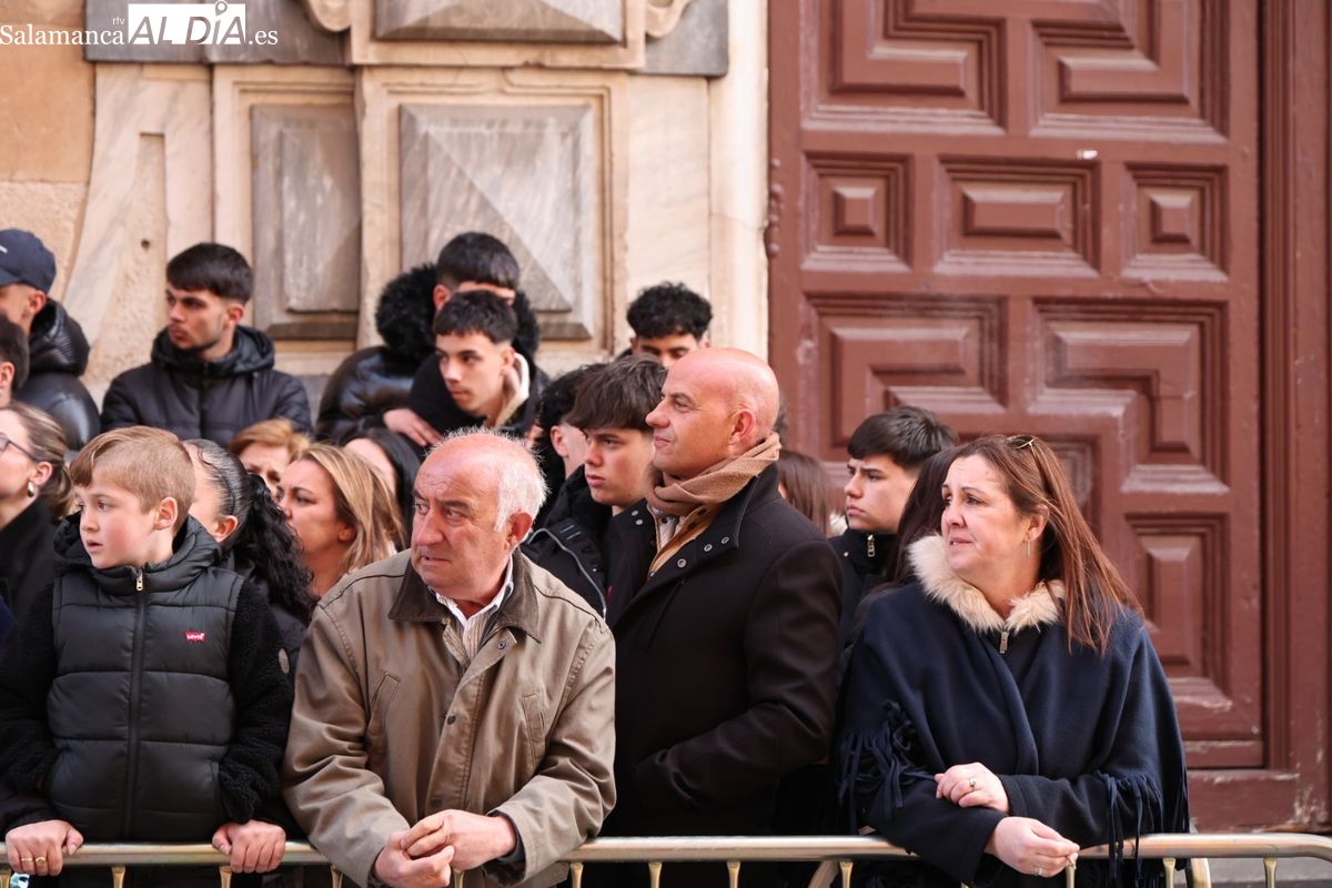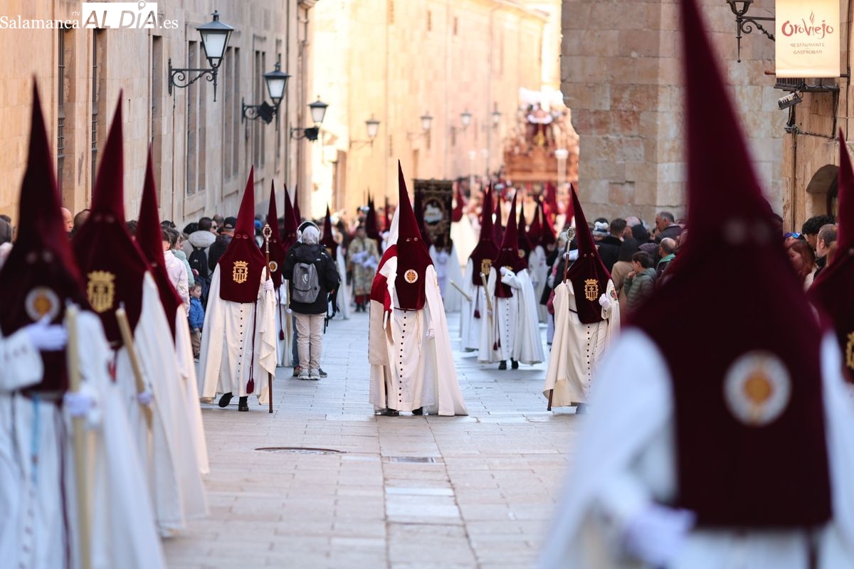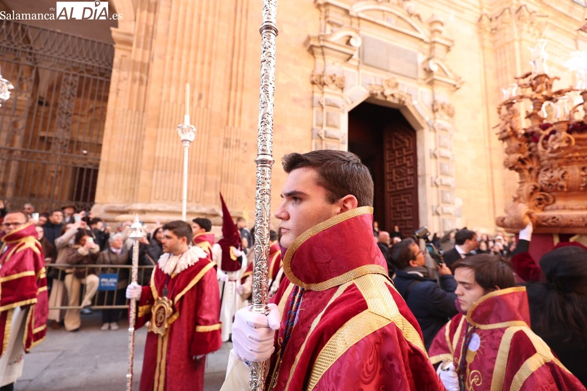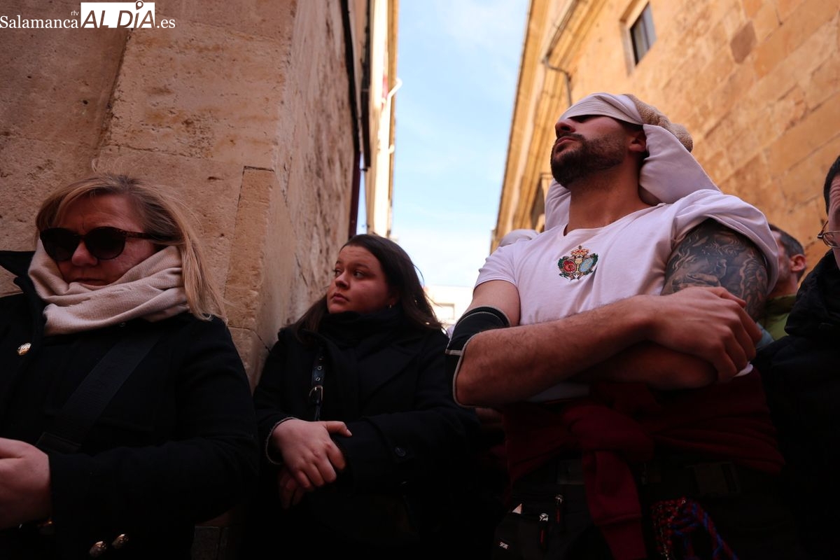 La Hermandad de Jesús Despojado de sus Vestiduras y María Santísima de la Caridad y del Consuelo ha iniciado su estación de penitencia este Domingo de Ramos desde la iglesia de La Purísima. Cientos de fieles se han congregado para presenciar la salida de una de las cofradías más numerosas de la capital salmantina, que este año presenta importantes novedades patrimoniales.