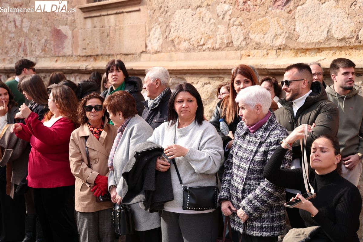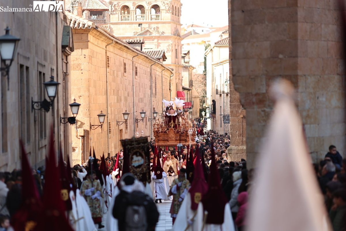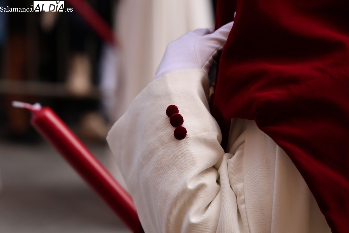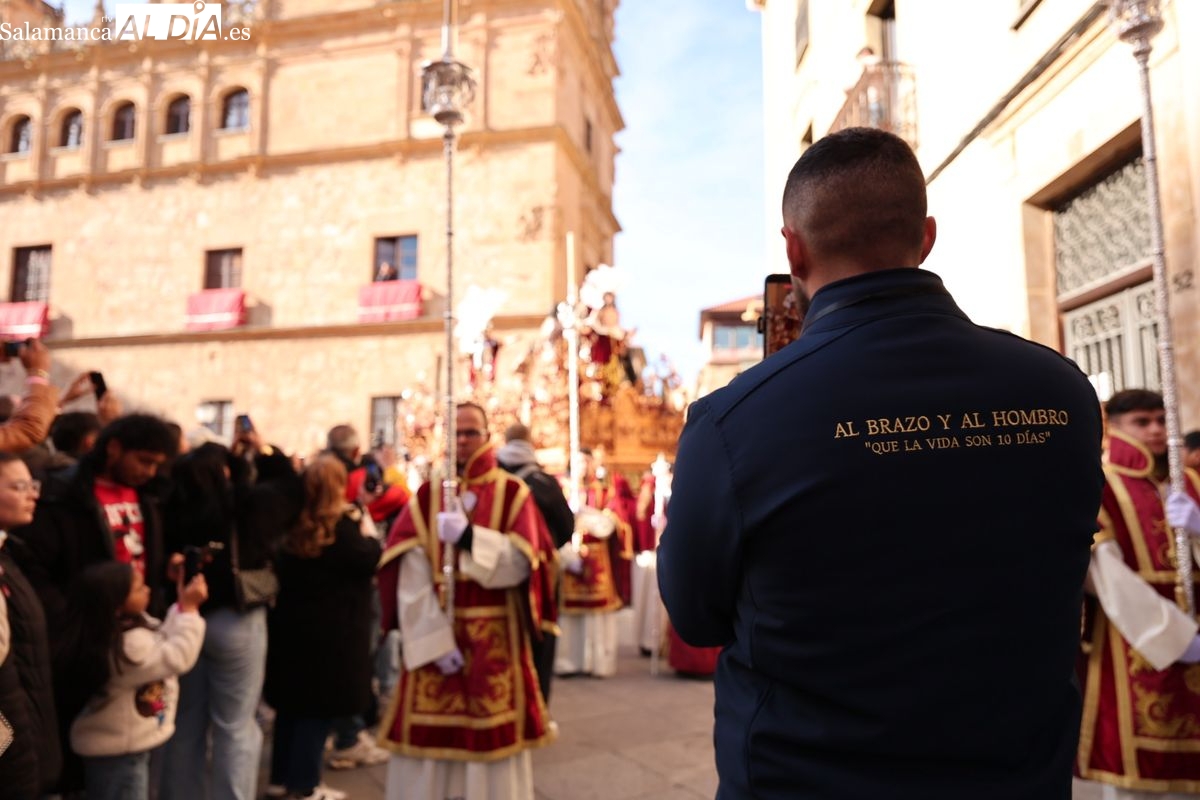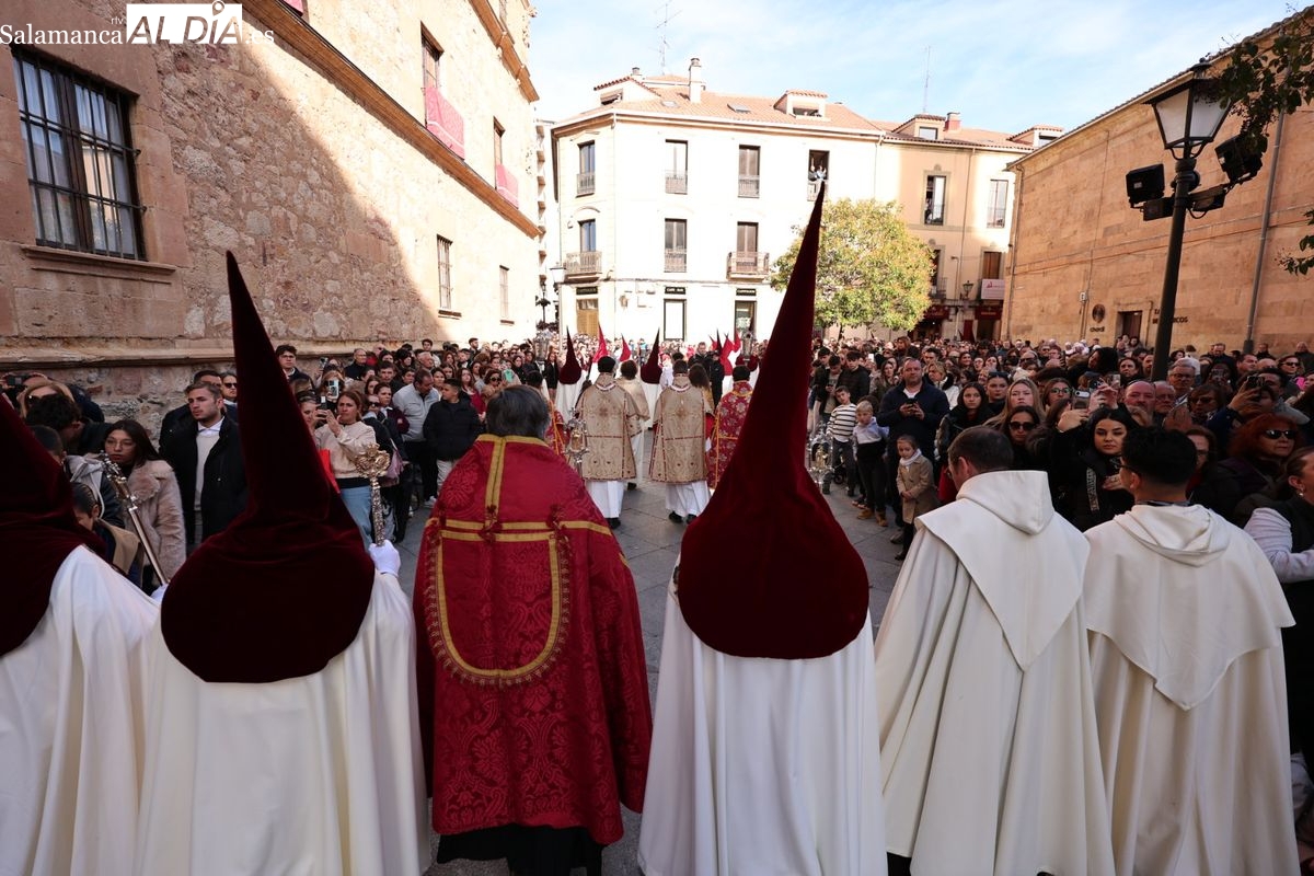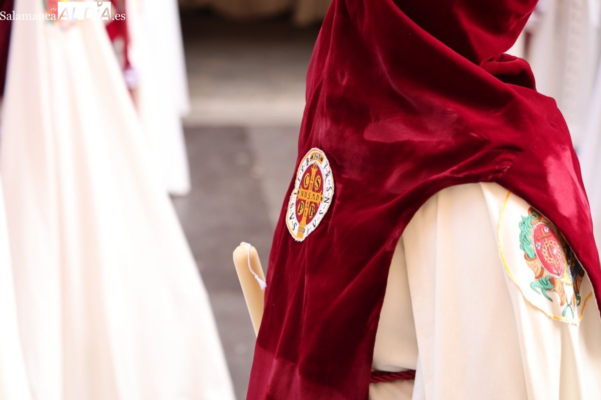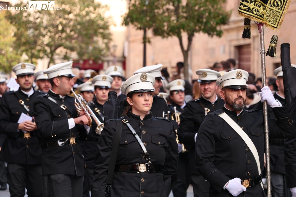 La Hermandad de Jesús Despojado de sus Vestiduras y María Santísima de la Caridad y del Consuelo ha iniciado su estación de penitencia este Domingo de Ramos desde la iglesia de La Purísima. Cientos de fieles se han congregado para presenciar la salida de una de las cofradías más numerosas de la capital salmantina, que este año presenta importantes novedades patrimoniales.