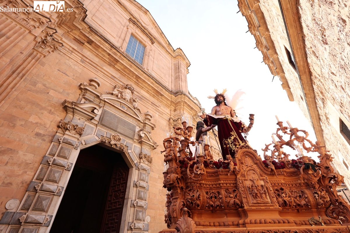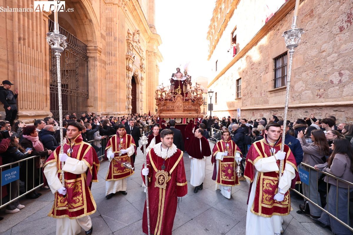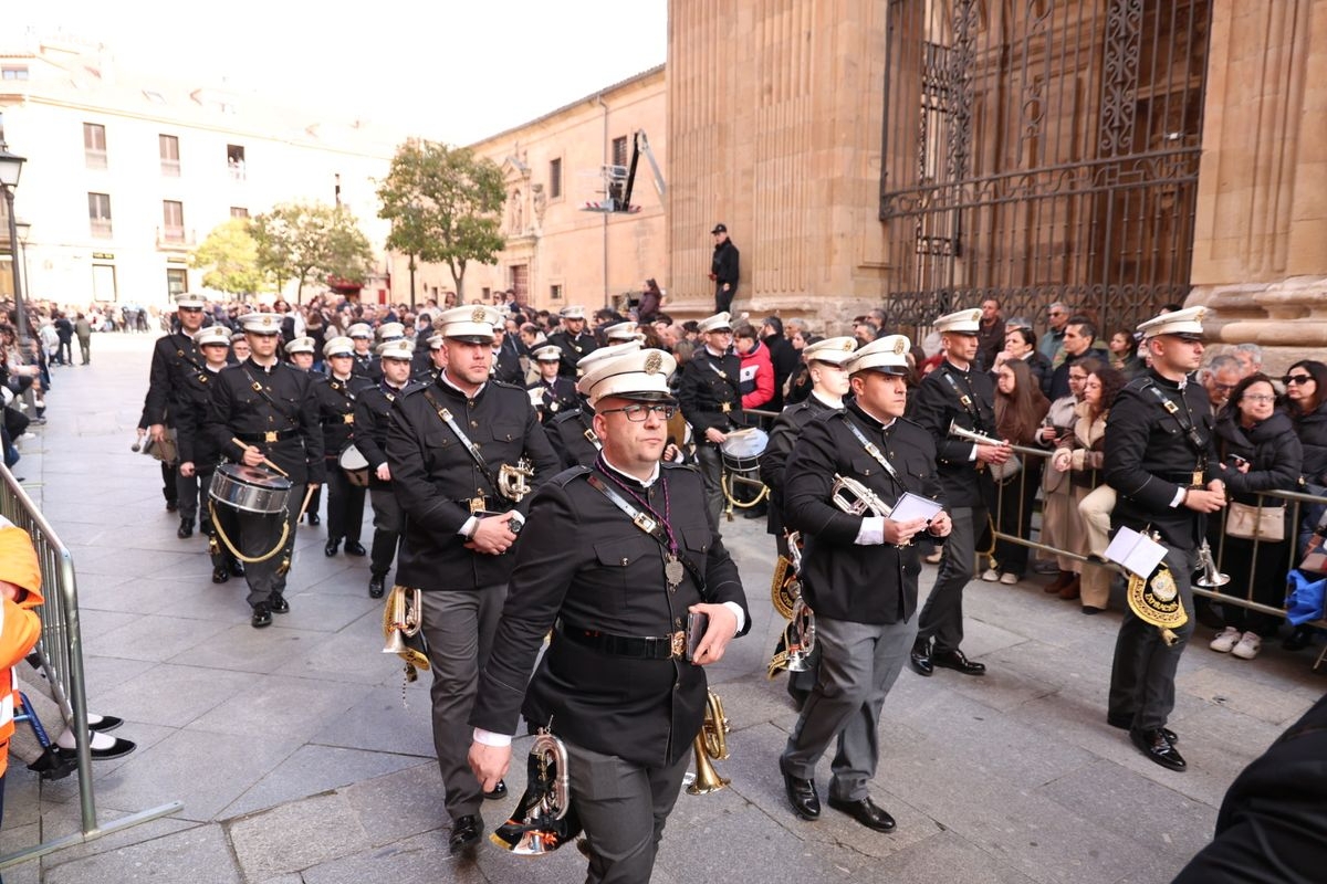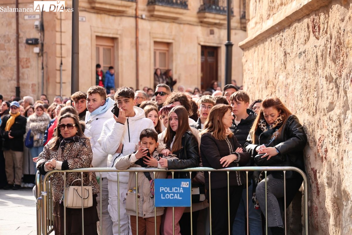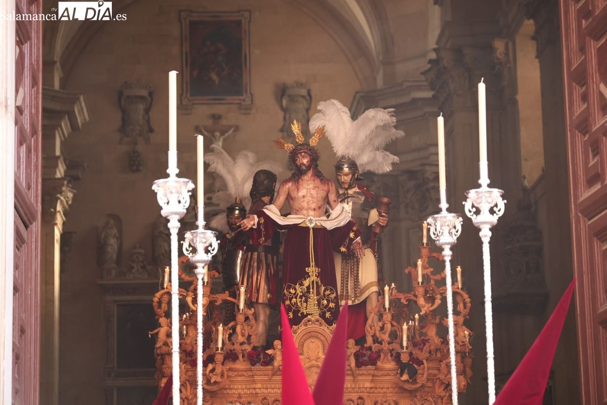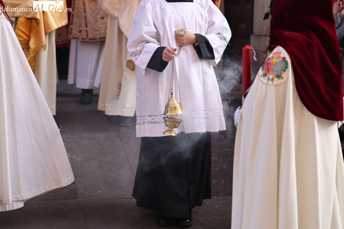 La Hermandad de Jesús Despojado de sus Vestiduras y María Santísima de la Caridad y del Consuelo ha iniciado su estación de penitencia este Domingo de Ramos desde la iglesia de La Purísima. Cientos de fieles se han congregado para presenciar la salida de una de las cofradías más numerosas de la capital salmantina, que este año presenta importantes novedades patrimoniales.