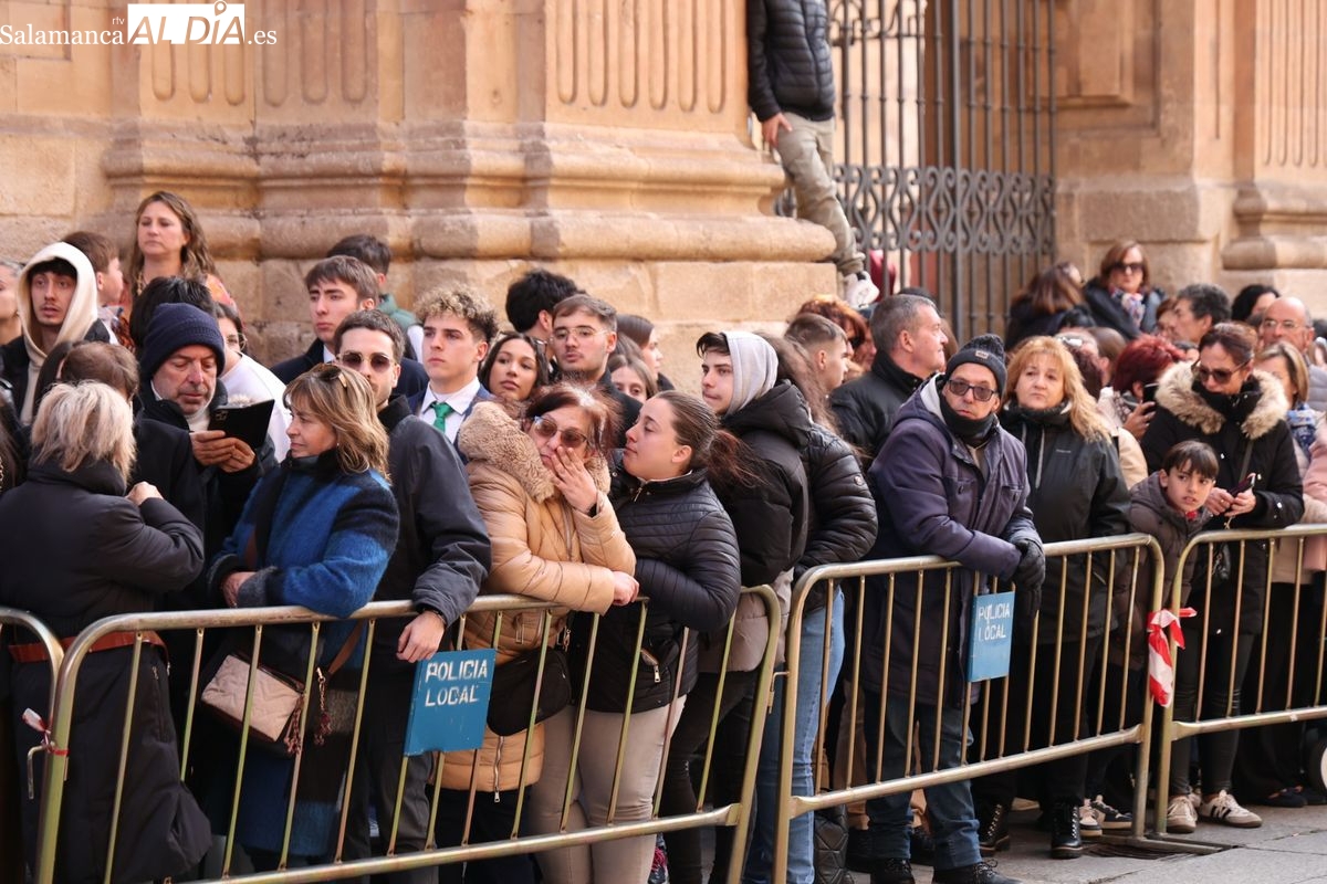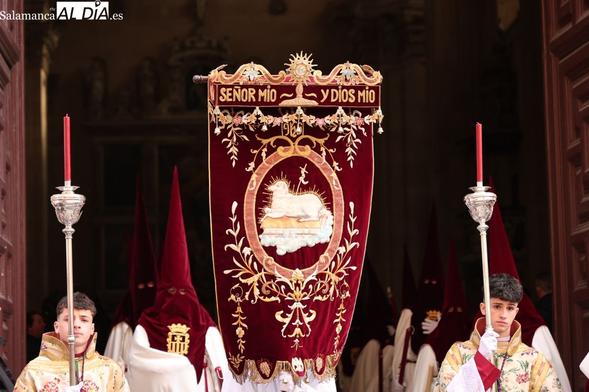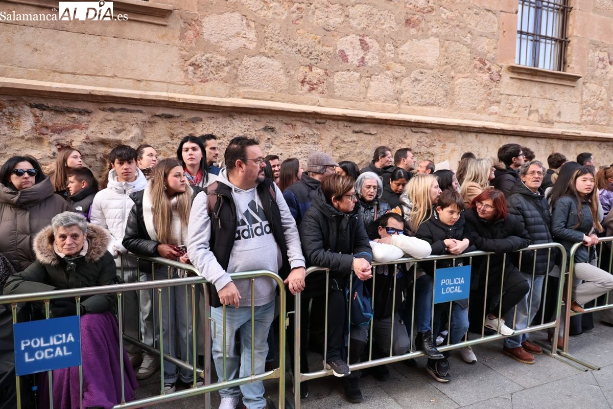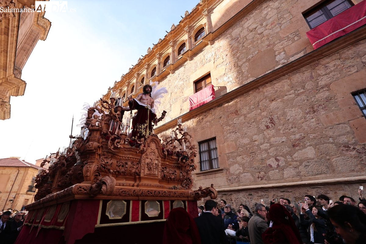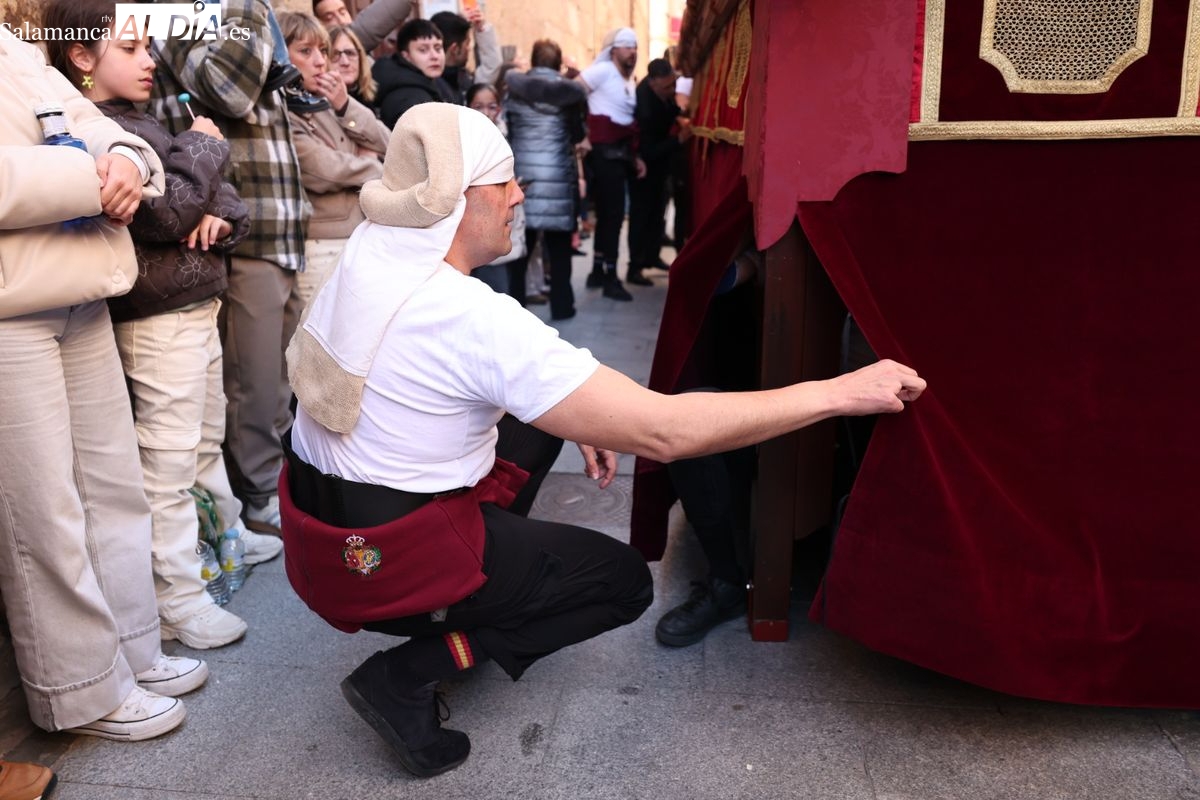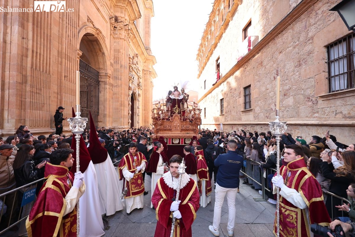 La Hermandad de Jesús Despojado de sus Vestiduras y María Santísima de la Caridad y del Consuelo ha iniciado su estación de penitencia este Domingo de Ramos desde la iglesia de La Purísima. Cientos de fieles se han congregado para presenciar la salida de una de las cofradías más numerosas de la capital salmantina, que este año presenta importantes novedades patrimoniales.