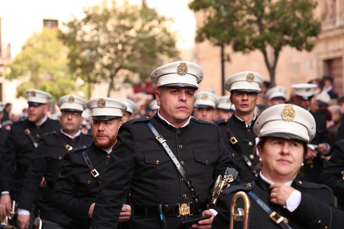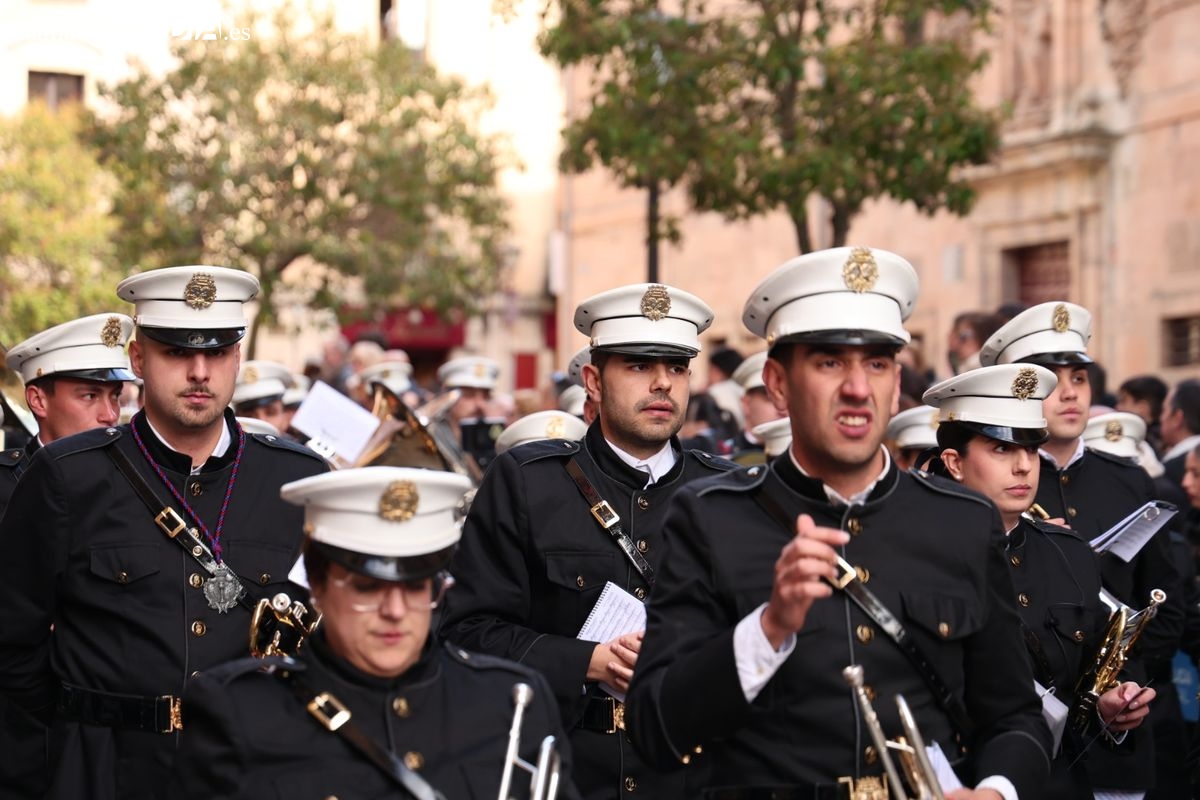 La corporación, que acaba de cumplir 18 años de historia, consolida un crecimiento continuo en la Semana Santa local. En esta ocasión, un total de 663 hermanos participan en el cortejo procesional que recorre las calles del centro histórico. El momento más singular de la tarde ha estado protagonizado por la reliquia del 'lignum crucis'. Este elemento sagrado, habitualmente custodiado en el convento de la Merced, ha salido en procesión portado sobre unas andas sencillas por los propios frailes mercedarios.