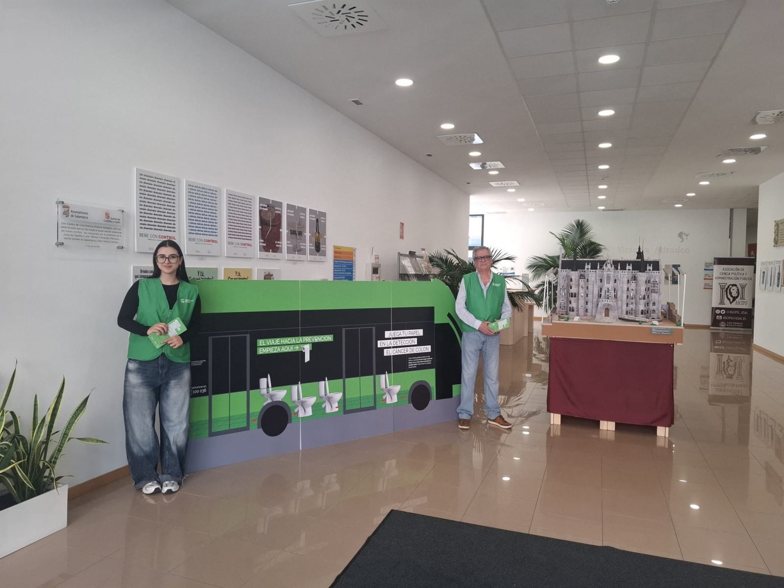 Para visibilizar este mensaje, voluntarios de la asociación se han desplegado por distintos puntos de Salamanca, como la plaza de la Libertad, el Centro Comercial El Tormes y el CMI Victoria Adrados. Equipados con chalecos verdes y apoyados por paneles informativos, interactúan con los ciudadanos para explicarles lo sencillo que resulta participar en los programas de prevención.