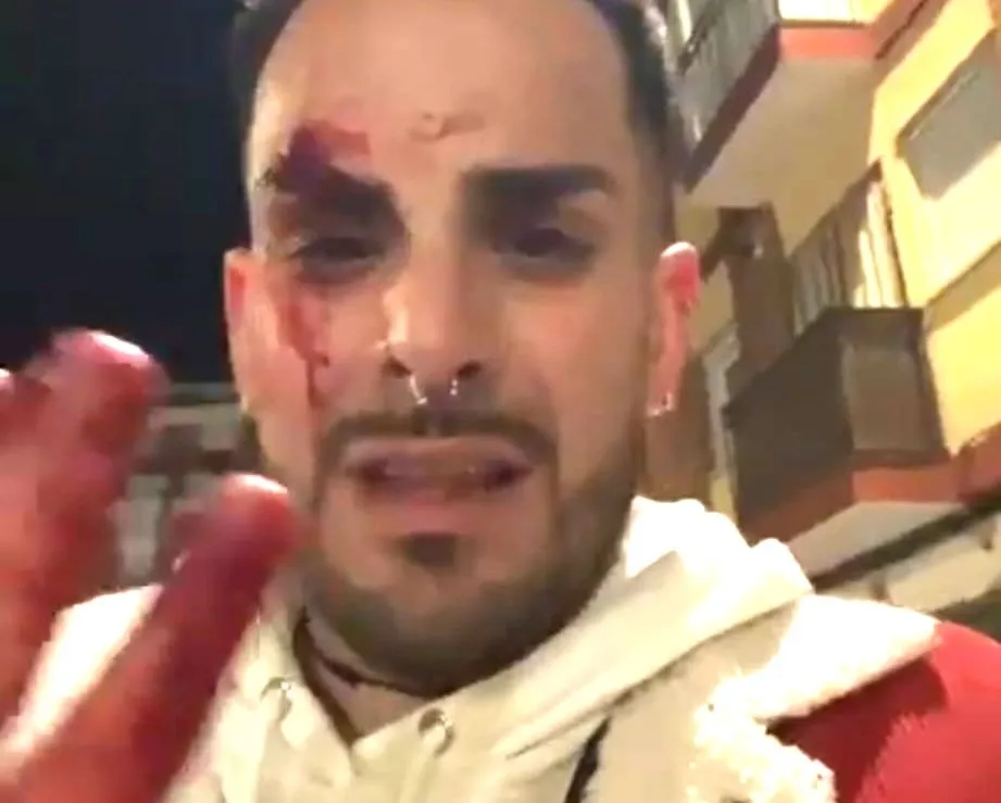 En las imágenes difundidas, el hombre aparece visiblemente alterado, con la cara ensangrentada y una ceja abierta. Durante la grabación, explica que fue abordado por un grupo de jóvenes que le propinaron varios golpes mientras le proferían insultos de carácter homófobo.