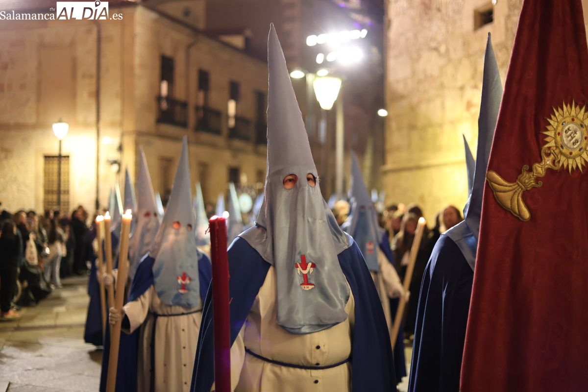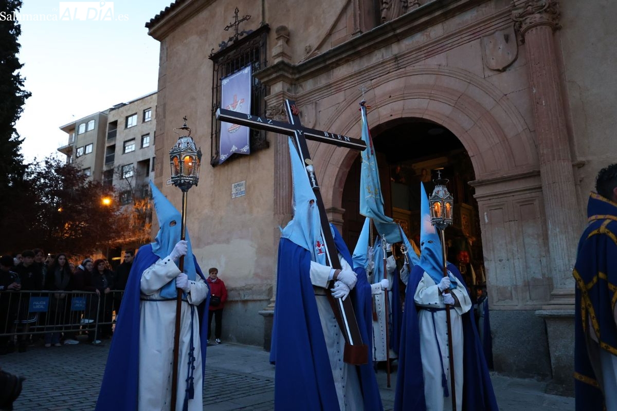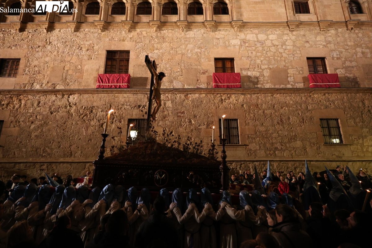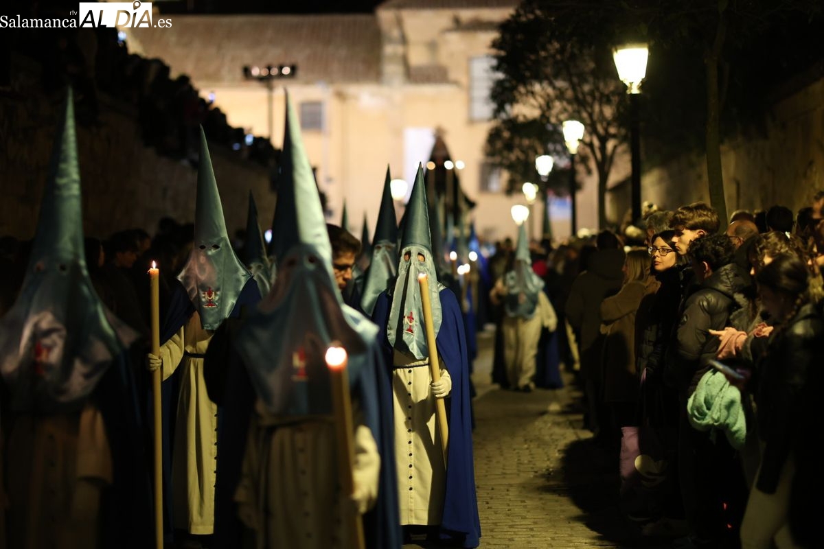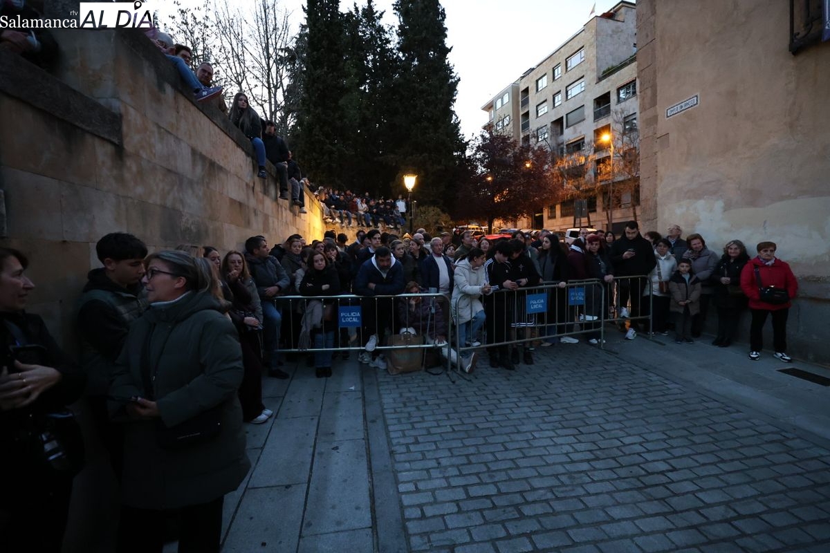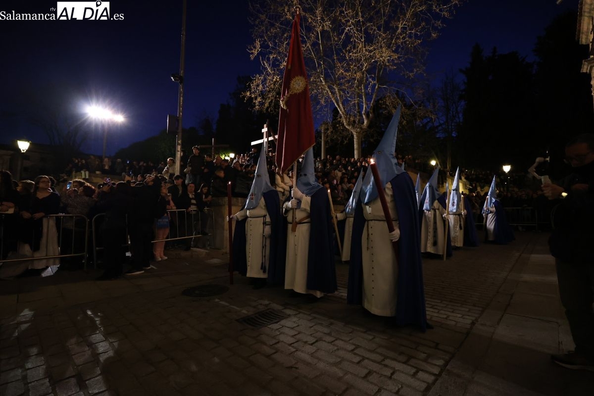 El itinerario ha llevado a la comitiva por los enclaves más emblemáticos del casco antiguo. Para completar su recorrido por las calles de Salamanca, la cofradía ha seguido un trazado oficial que ha partido desde la iglesia de la Vera Cruz. A continuación, la comitiva ha avanzado por la calle Domínguez Berrueta, la calle Ramón y Cajal y la plaza de las Agustinas, para adentrarse por la calle de la Compañía, la Rúa Antigua y la calle Francisco Vitoria hasta alcanzar la plaza de Anaya y el Atrio de la Catedral.