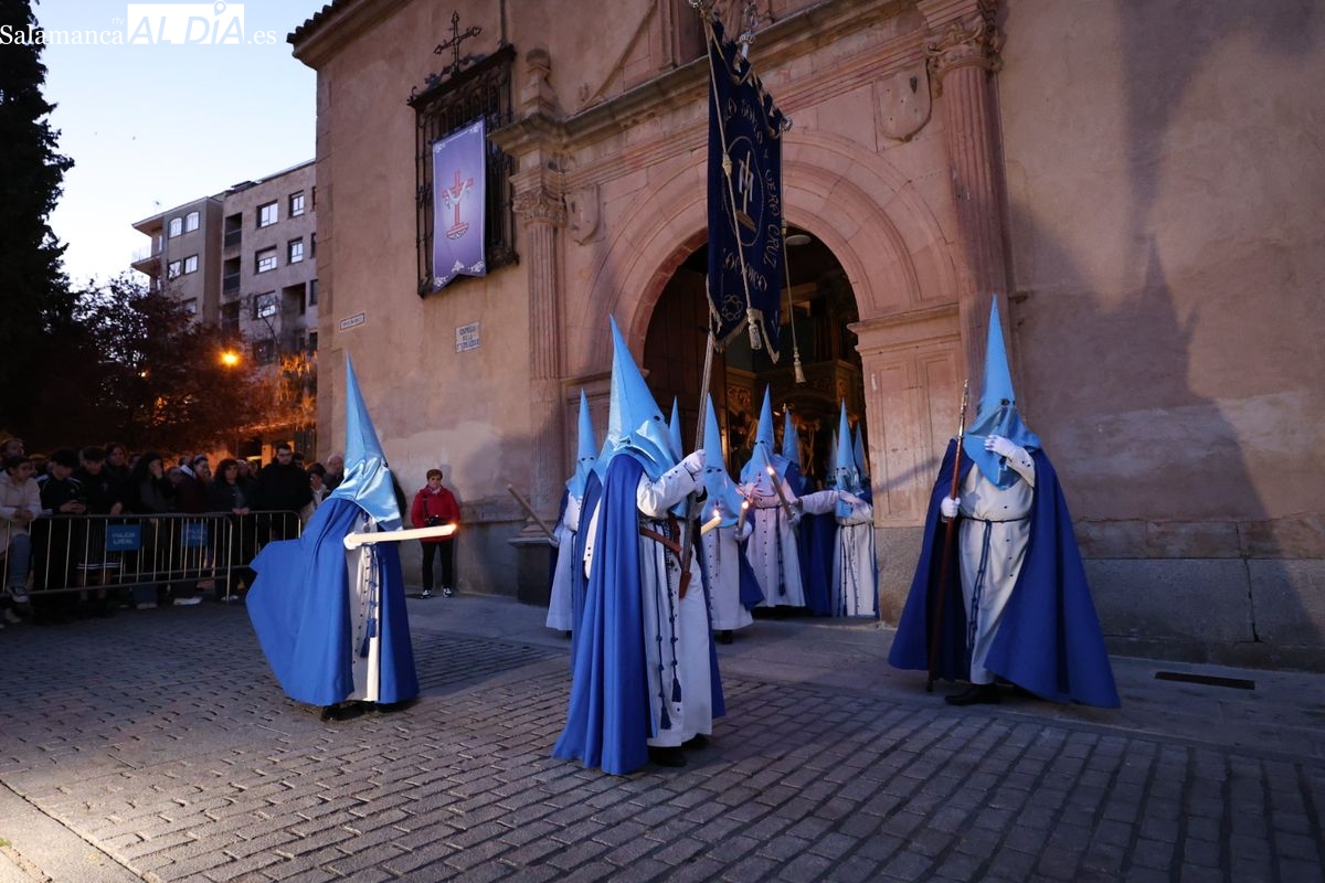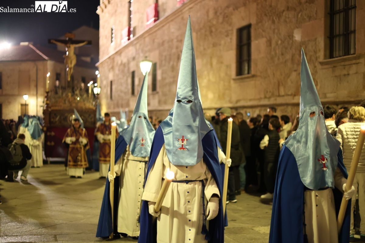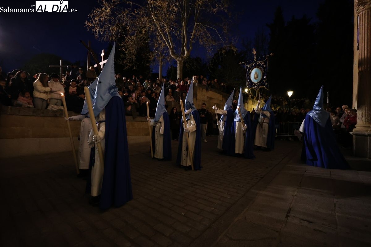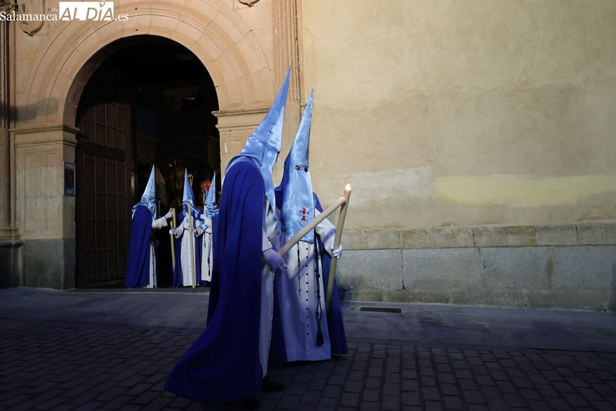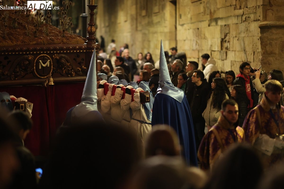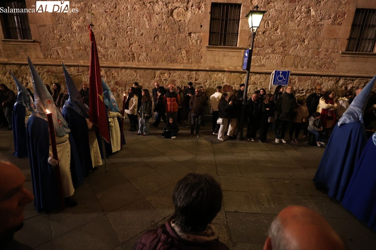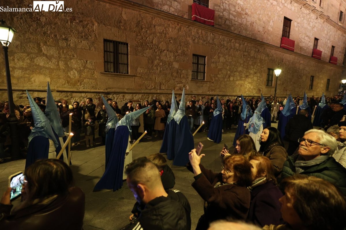 El itinerario ha llevado a la comitiva por los enclaves más emblemáticos del casco antiguo. Para completar su recorrido por las calles de Salamanca, la cofradía ha seguido un trazado oficial que ha partido desde la iglesia de la Vera Cruz. A continuación, la comitiva ha avanzado por la calle Domínguez Berrueta, la calle Ramón y Cajal y la plaza de las Agustinas, para adentrarse por la calle de la Compañía, la Rúa Antigua y la calle Francisco Vitoria hasta alcanzar la plaza de Anaya y el Atrio de la Catedral.