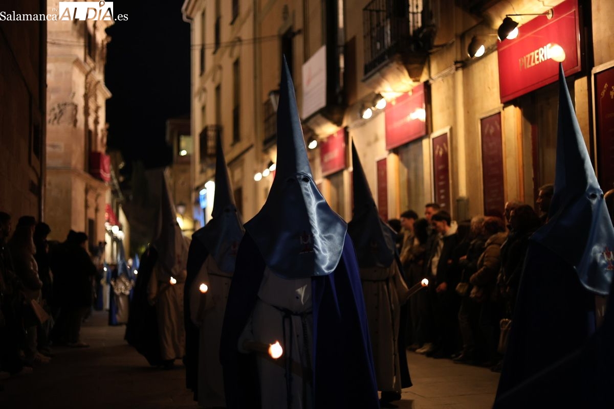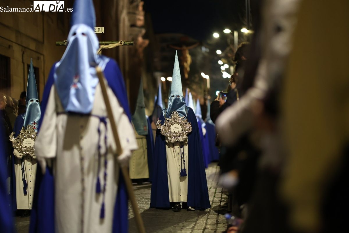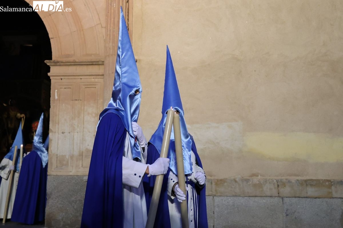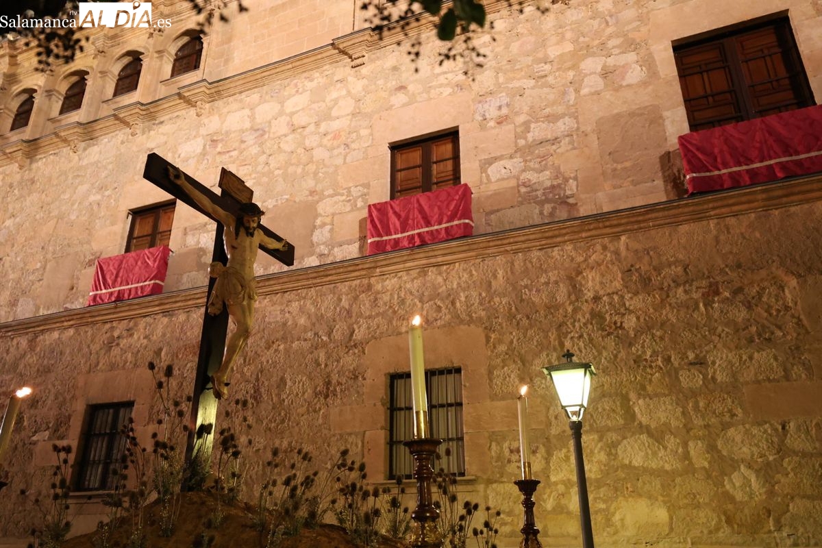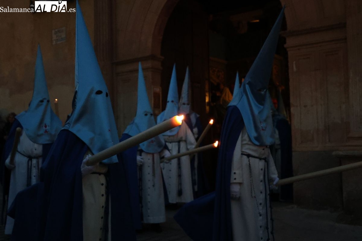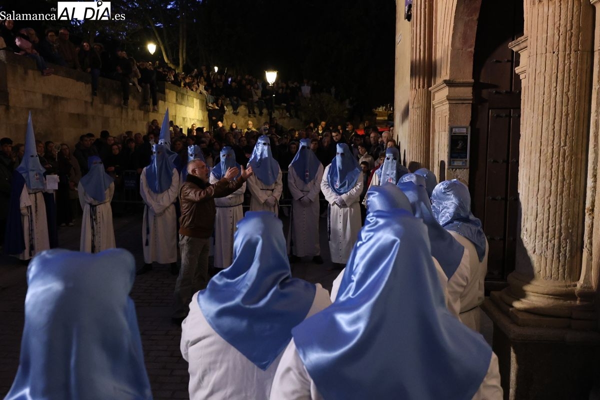 El itinerario ha llevado a la comitiva por los enclaves más emblemáticos del casco antiguo. Para completar su recorrido por las calles de Salamanca, la cofradía ha seguido un trazado oficial que ha partido desde la iglesia de la Vera Cruz. A continuación, la comitiva ha avanzado por la calle Domínguez Berrueta, la calle Ramón y Cajal y la plaza de las Agustinas, para adentrarse por la calle de la Compañía, la Rúa Antigua y la calle Francisco Vitoria hasta alcanzar la plaza de Anaya y el Atrio de la Catedral.