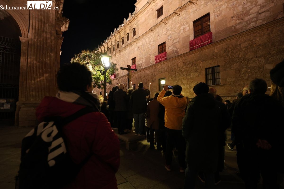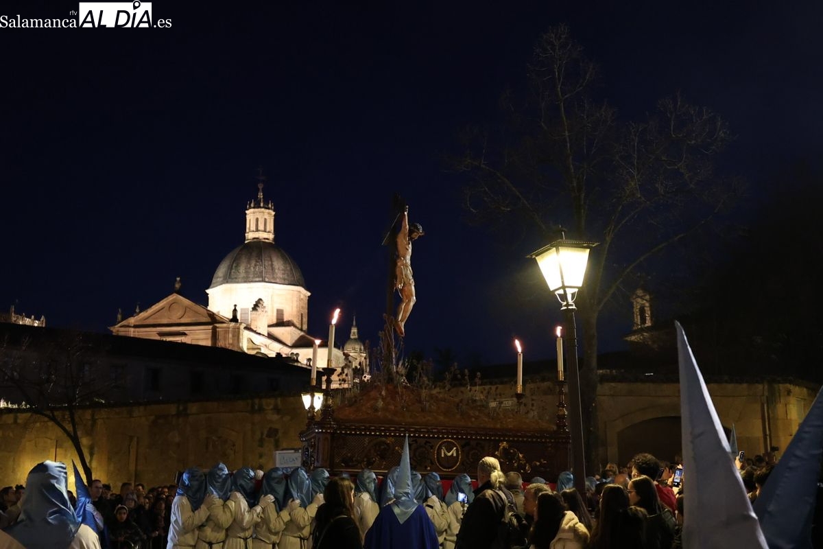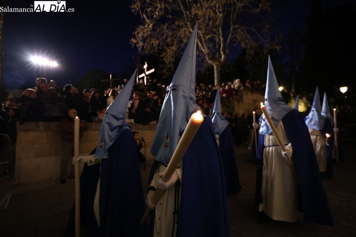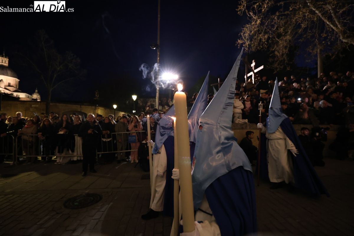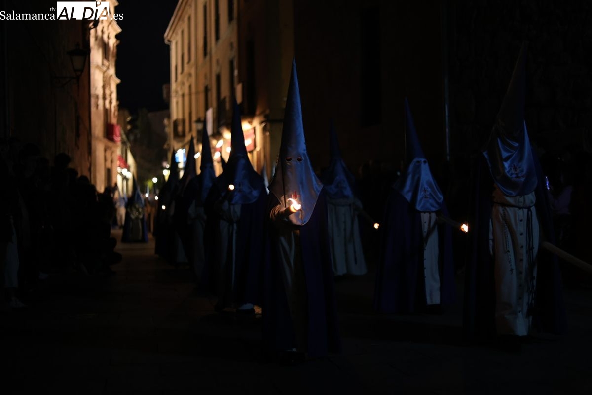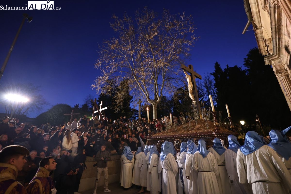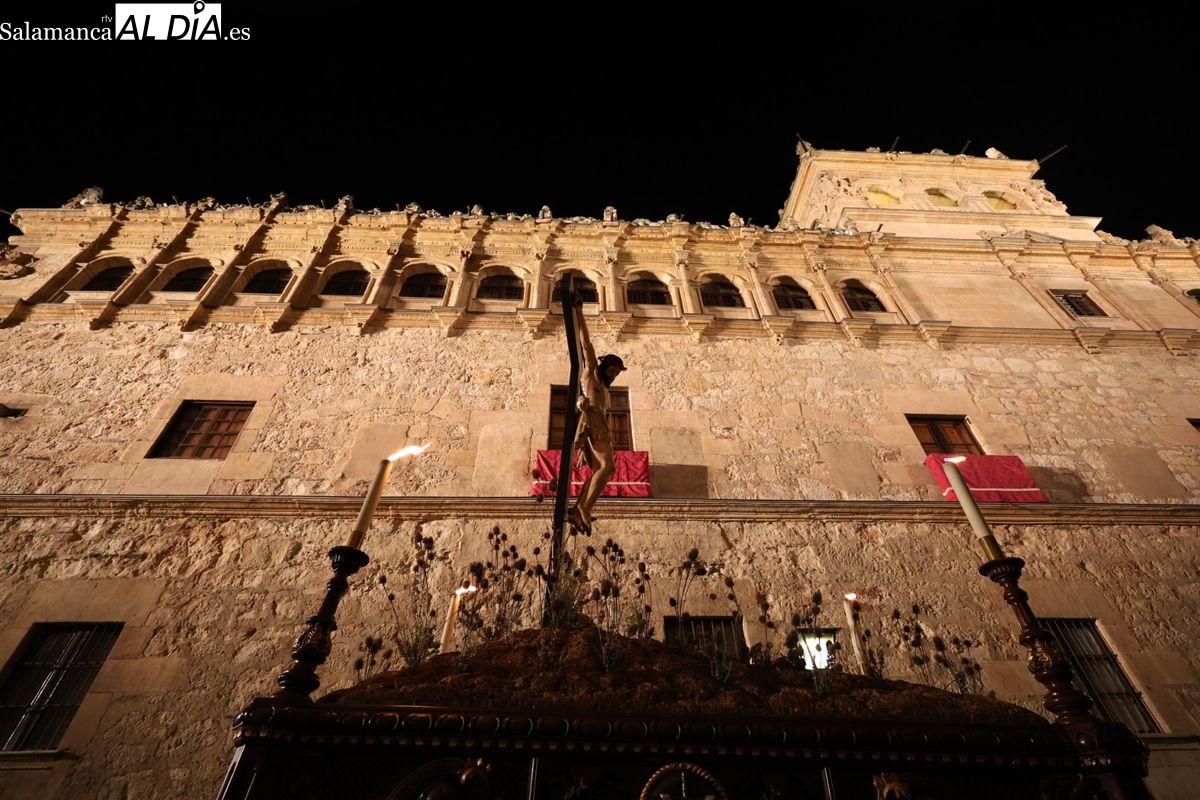 El itinerario ha llevado a la comitiva por los enclaves más emblemáticos del casco antiguo. Para completar su recorrido por las calles de Salamanca, la cofradía ha seguido un trazado oficial que ha partido desde la iglesia de la Vera Cruz. A continuación, la comitiva ha avanzado por la calle Domínguez Berrueta, la calle Ramón y Cajal y la plaza de las Agustinas, para adentrarse por la calle de la Compañía, la Rúa Antigua y la calle Francisco Vitoria hasta alcanzar la plaza de Anaya y el Atrio de la Catedral.