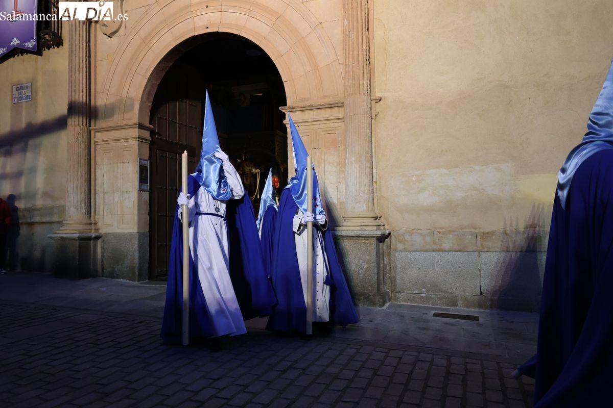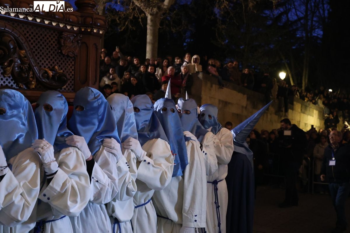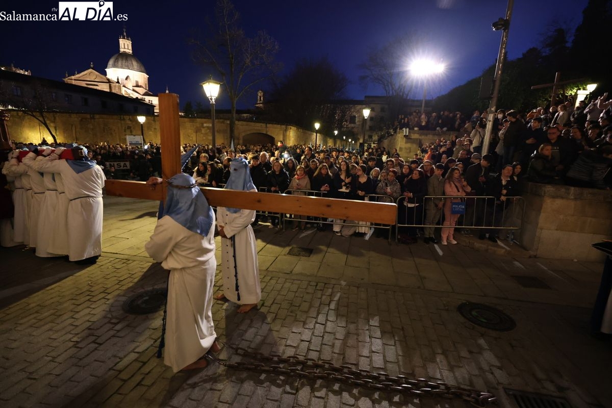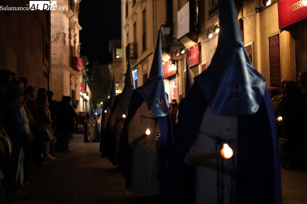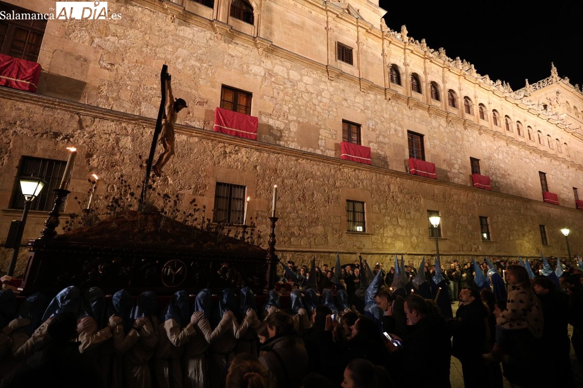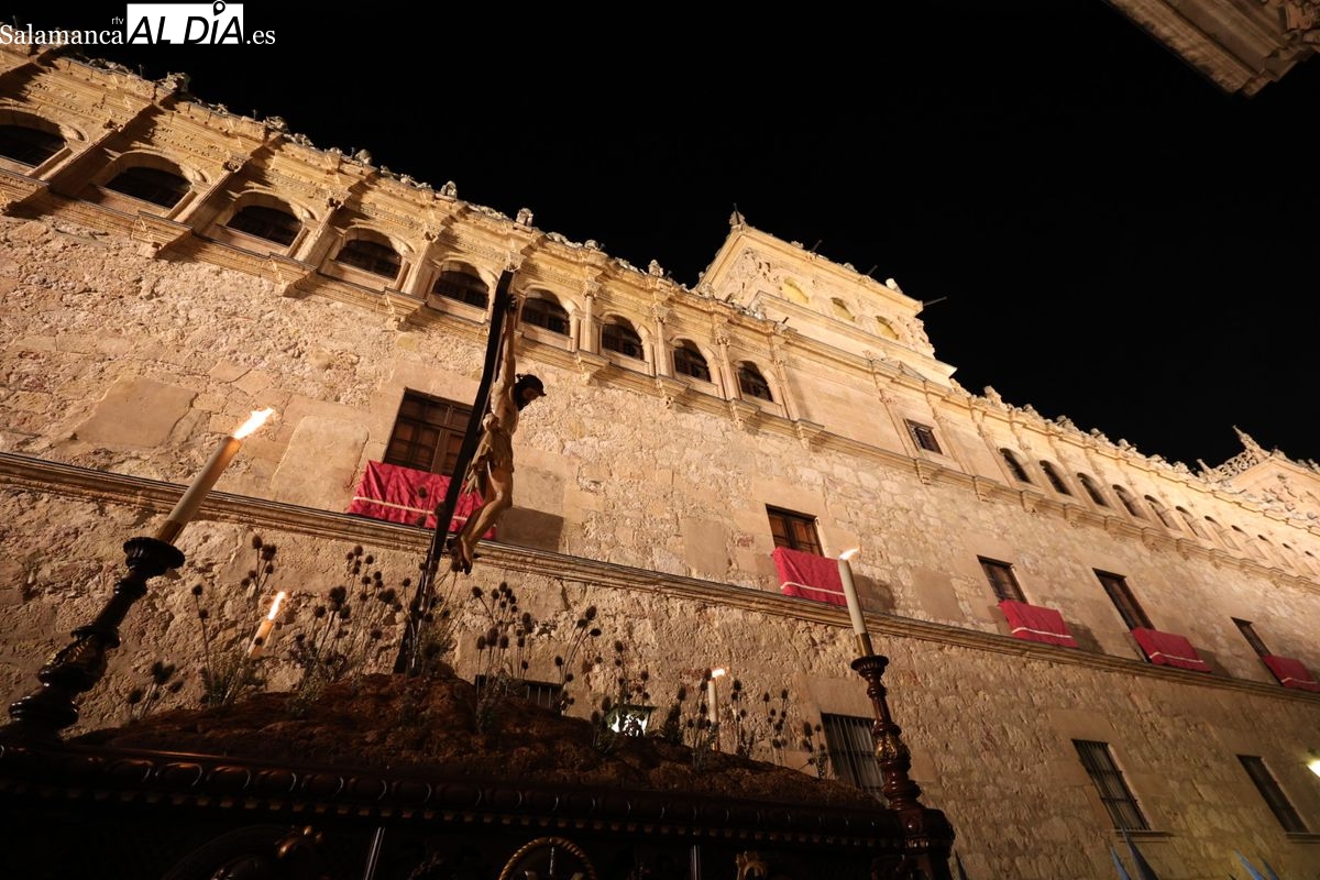 El itinerario ha llevado a la comitiva por los enclaves más emblemáticos del casco antiguo. Para completar su recorrido por las calles de Salamanca, la cofradía ha seguido un trazado oficial que ha partido desde la iglesia de la Vera Cruz. A continuación, la comitiva ha avanzado por la calle Domínguez Berrueta, la calle Ramón y Cajal y la plaza de las Agustinas, para adentrarse por la calle de la Compañía, la Rúa Antigua y la calle Francisco Vitoria hasta alcanzar la plaza de Anaya y el Atrio de la Catedral.