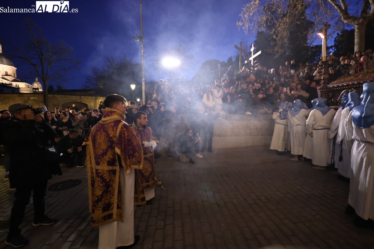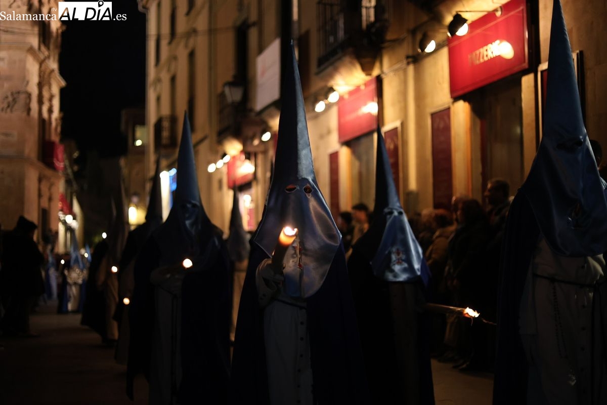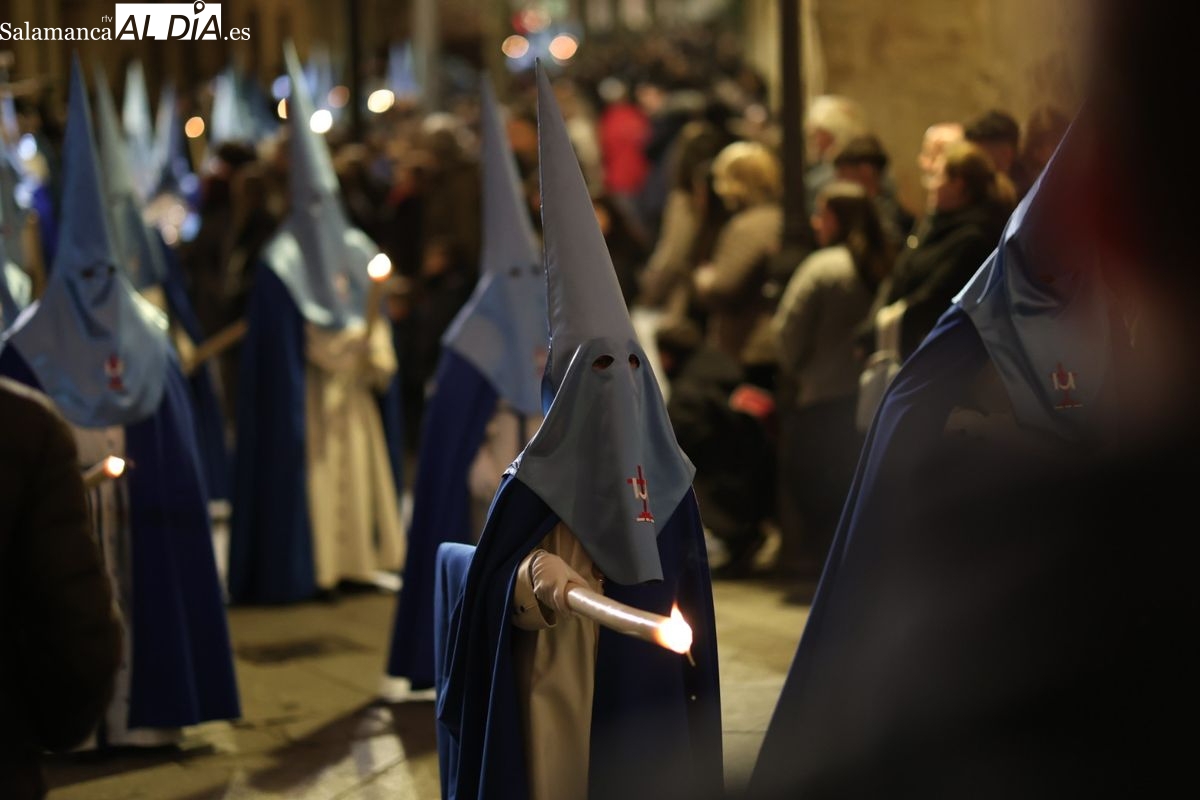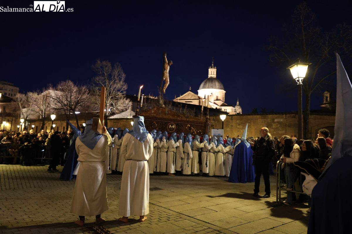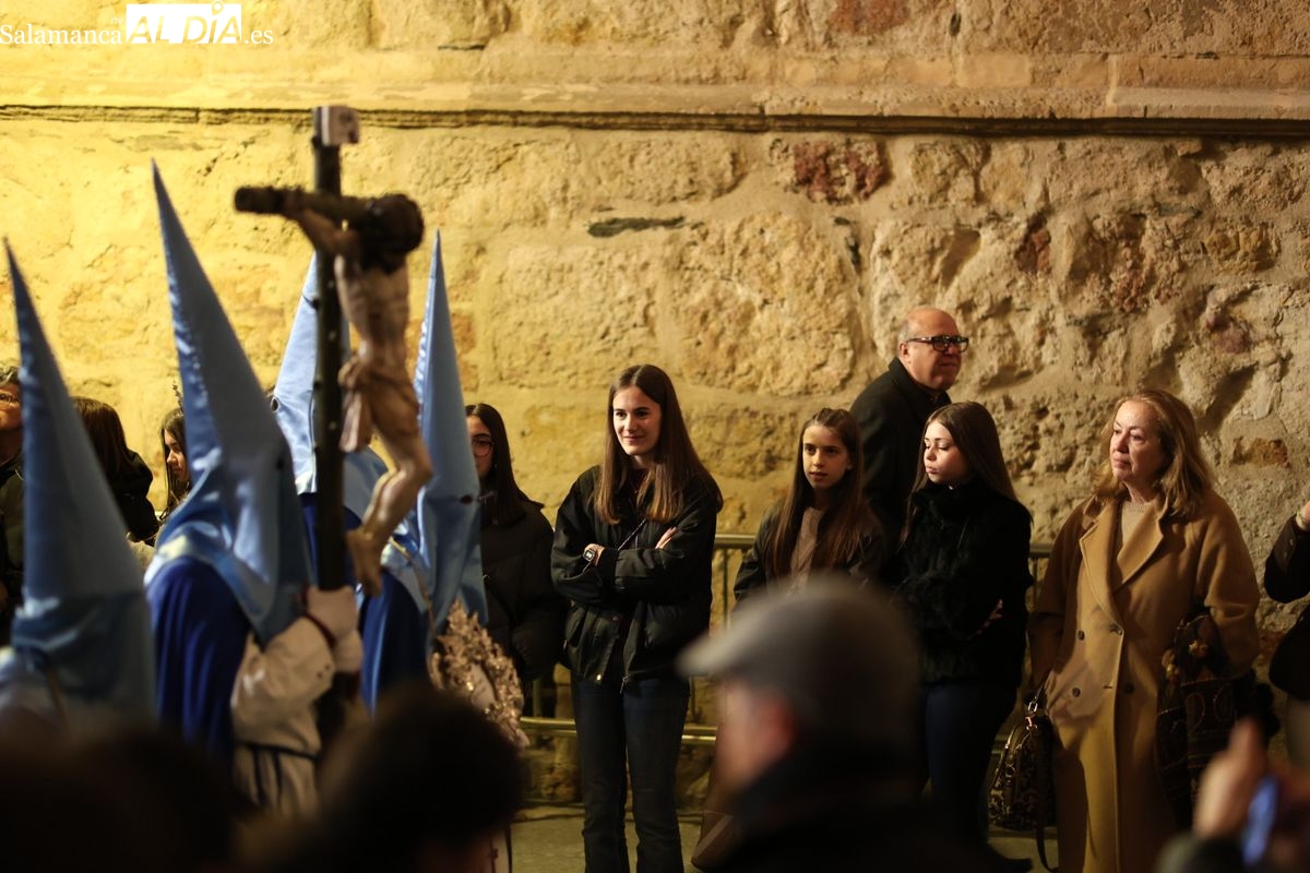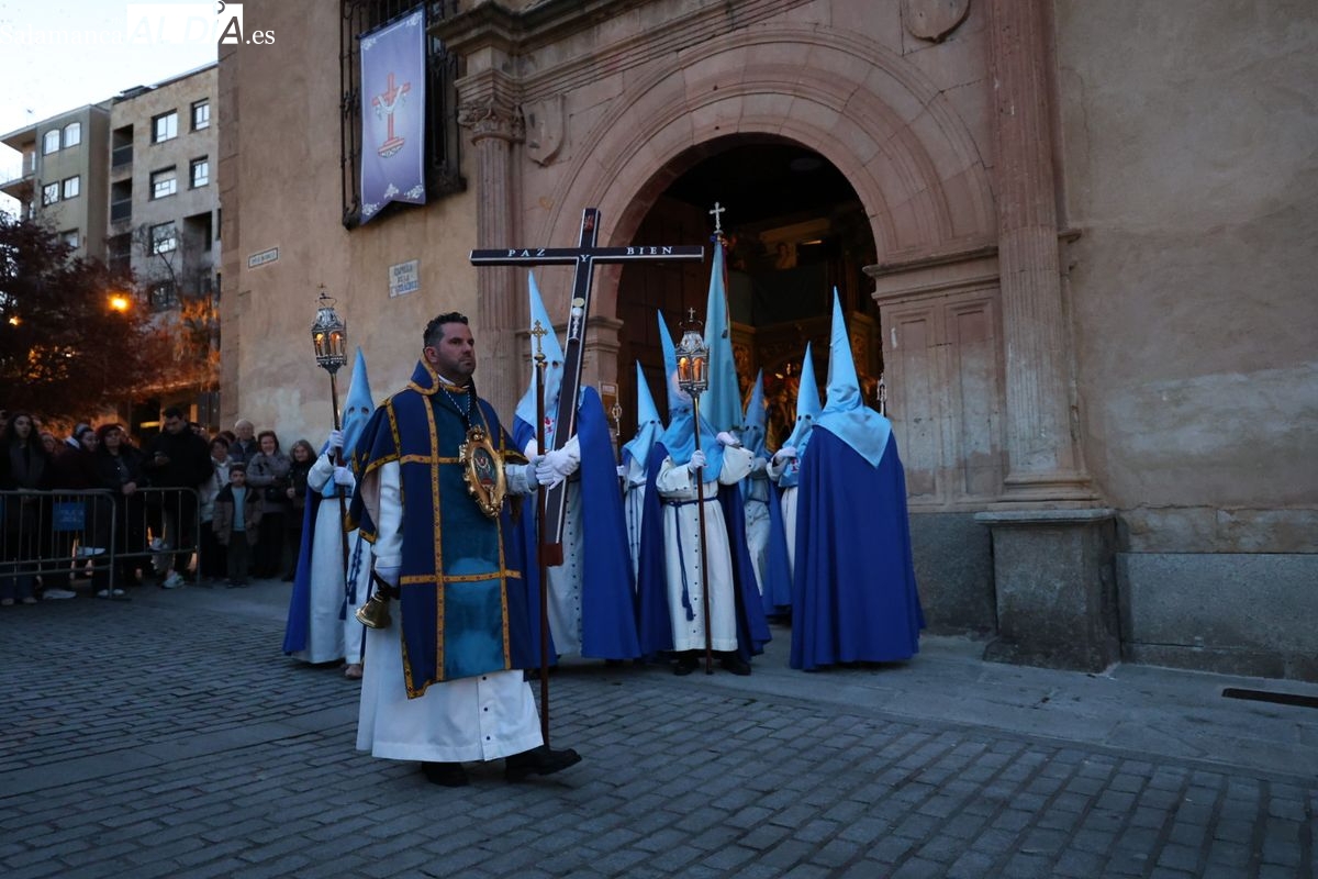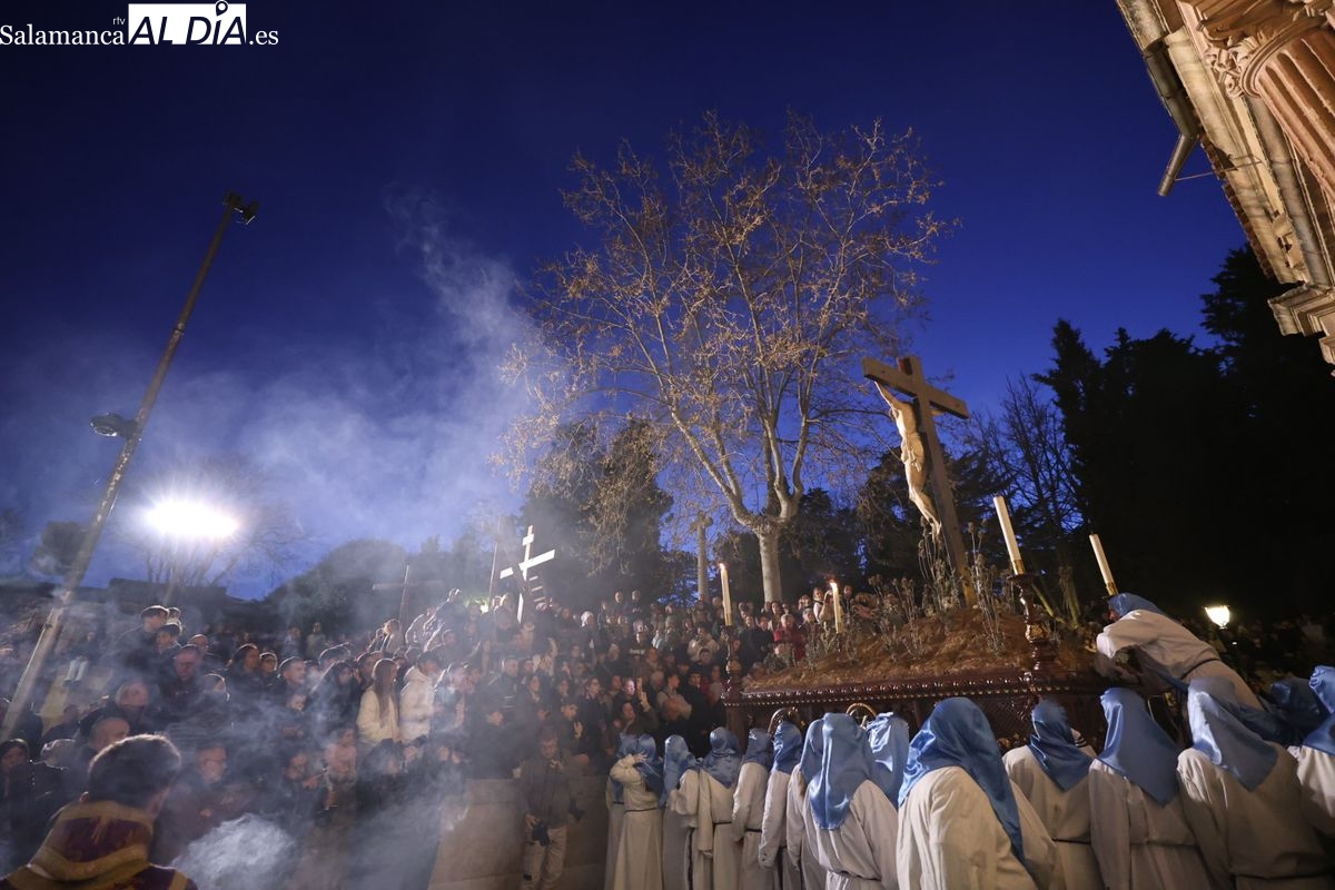 El itinerario ha llevado a la comitiva por los enclaves más emblemáticos del casco antiguo. Para completar su recorrido por las calles de Salamanca, la cofradía ha seguido un trazado oficial que ha partido desde la iglesia de la Vera Cruz. A continuación, la comitiva ha avanzado por la calle Domínguez Berrueta, la calle Ramón y Cajal y la plaza de las Agustinas, para adentrarse por la calle de la Compañía, la Rúa Antigua y la calle Francisco Vitoria hasta alcanzar la plaza de Anaya y el Atrio de la Catedral.