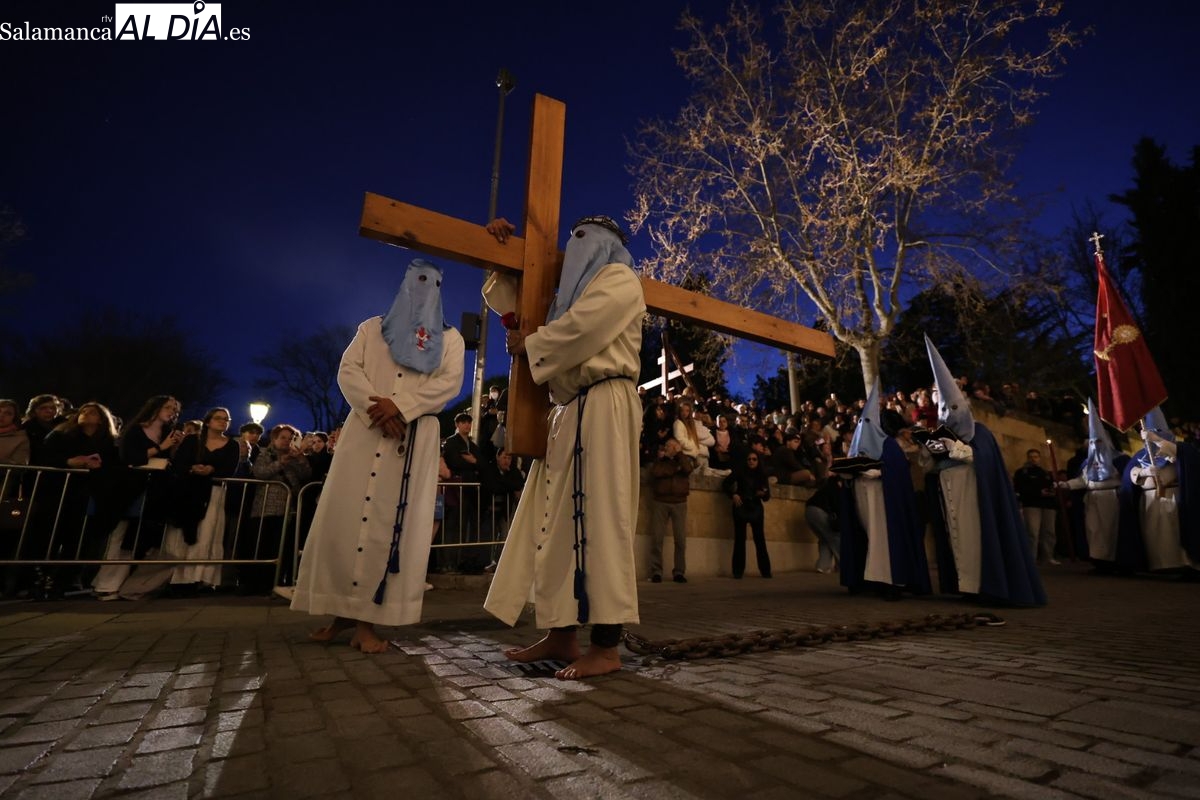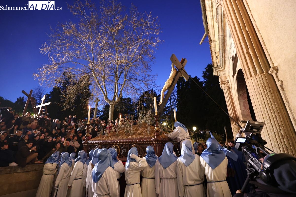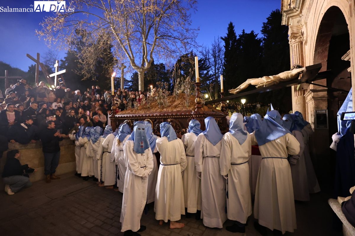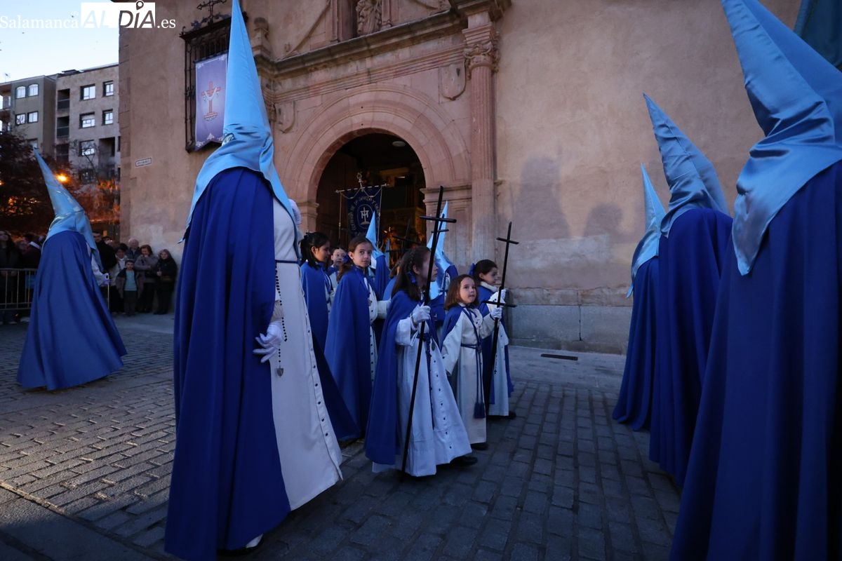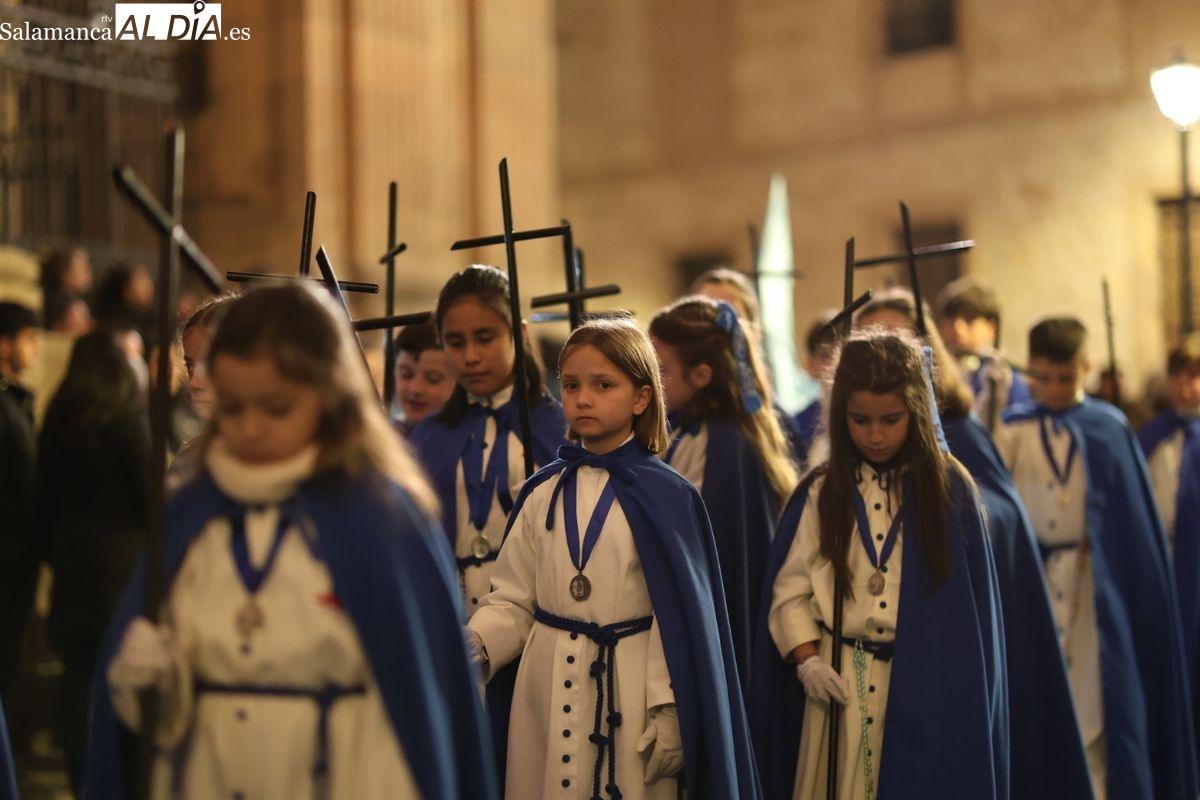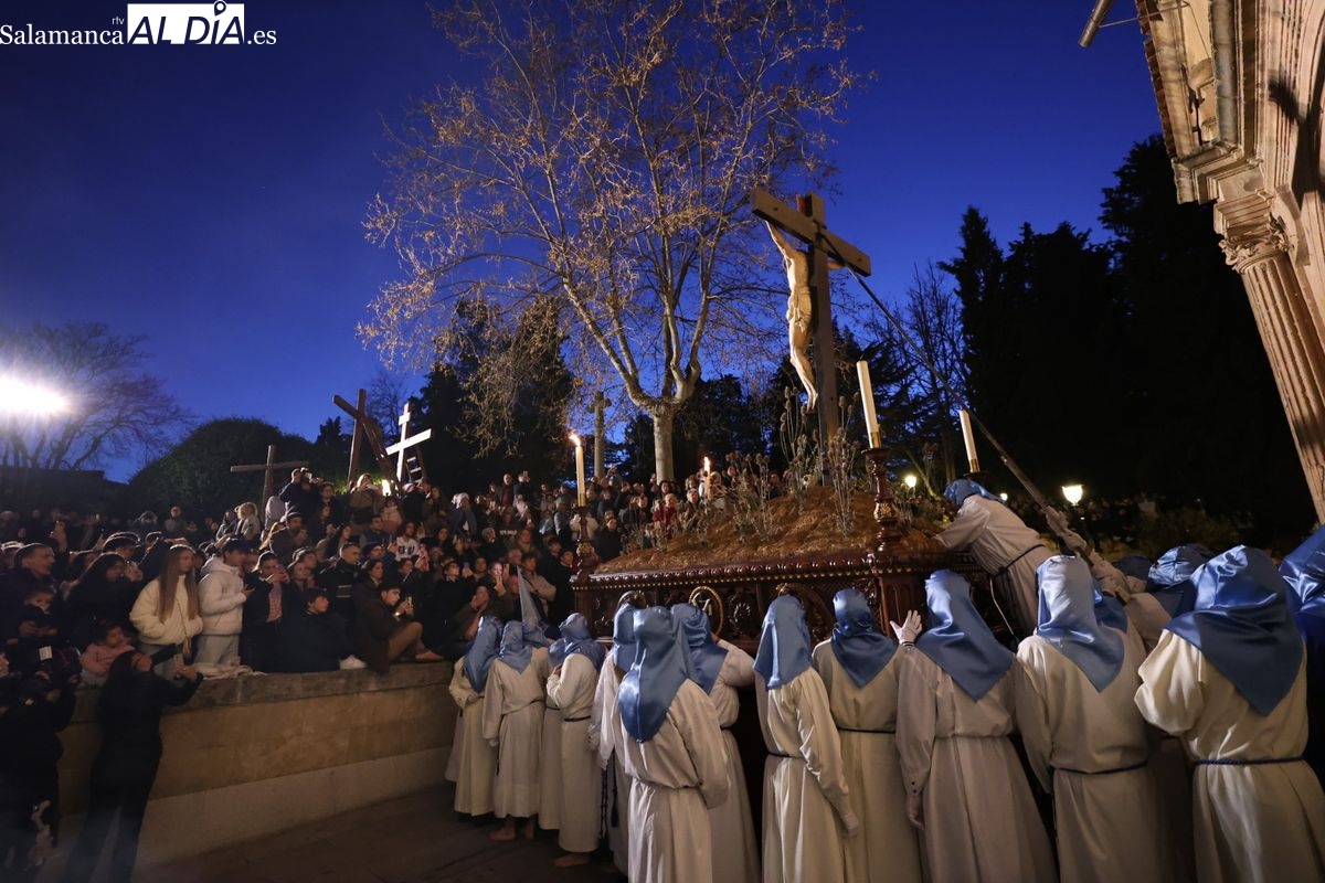 El itinerario ha llevado a la comitiva por los enclaves más emblemáticos del casco antiguo. Para completar su recorrido por las calles de Salamanca, la cofradía ha seguido un trazado oficial que ha partido desde la iglesia de la Vera Cruz. A continuación, la comitiva ha avanzado por la calle Domínguez Berrueta, la calle Ramón y Cajal y la plaza de las Agustinas, para adentrarse por la calle de la Compañía, la Rúa Antigua y la calle Francisco Vitoria hasta alcanzar la plaza de Anaya y el Atrio de la Catedral.