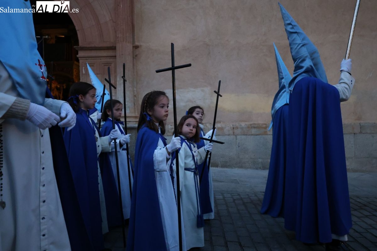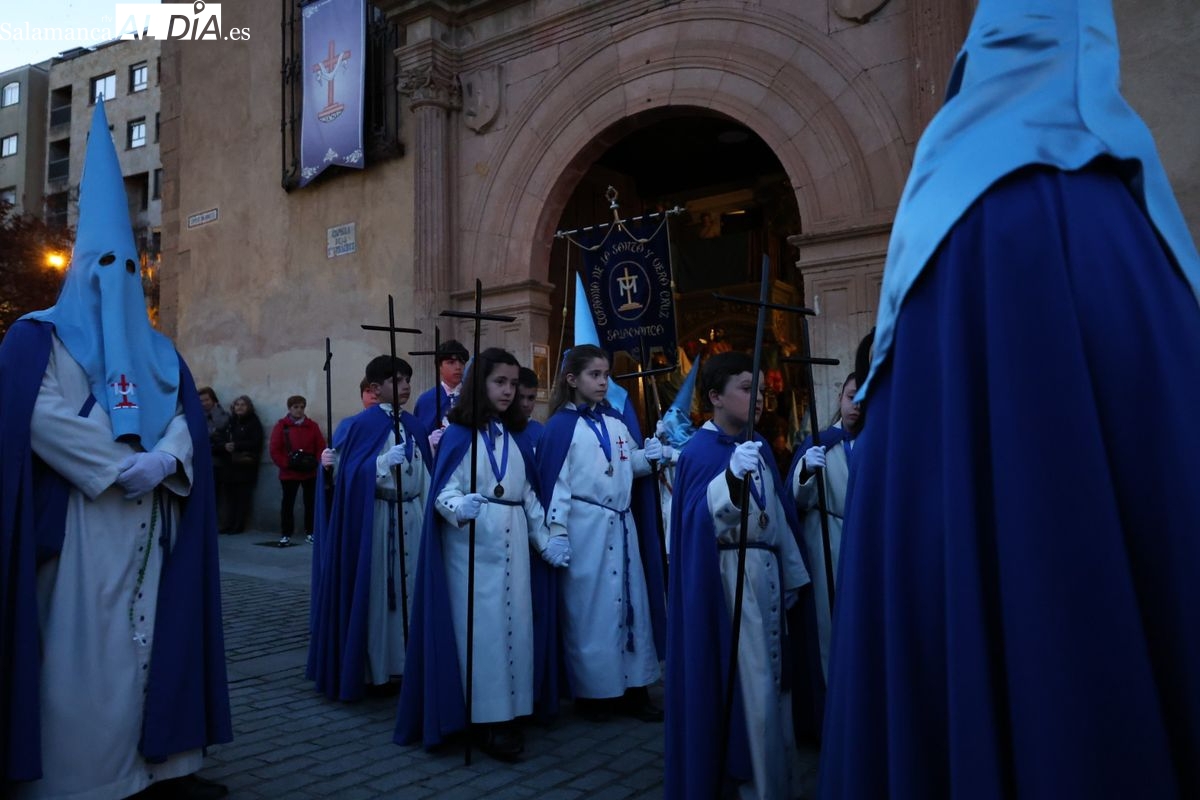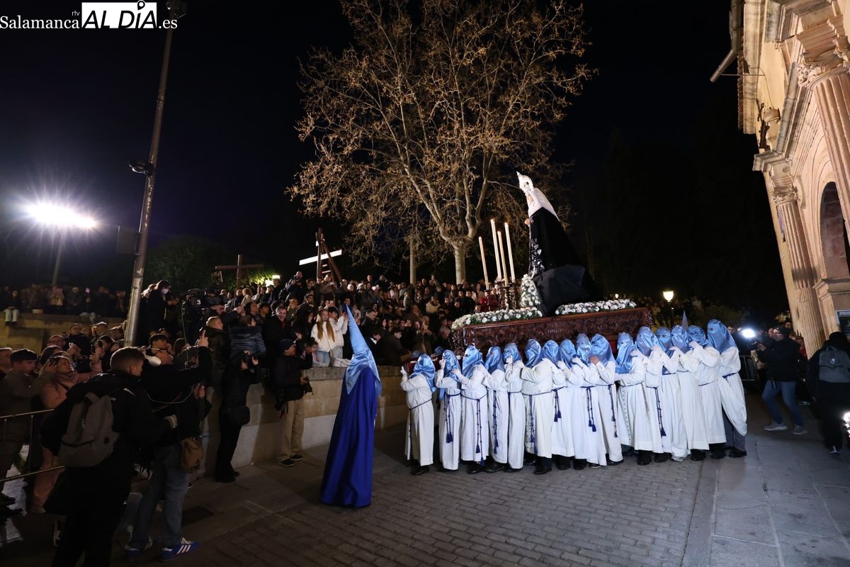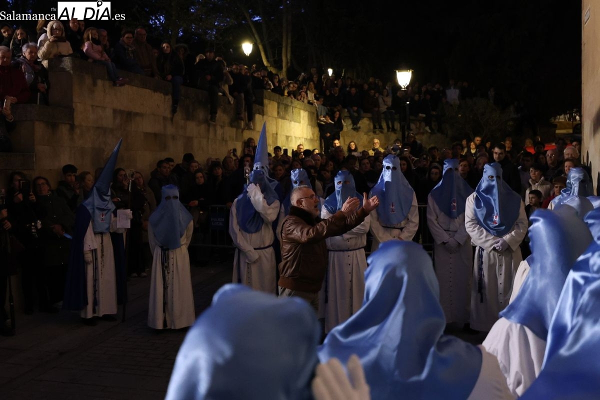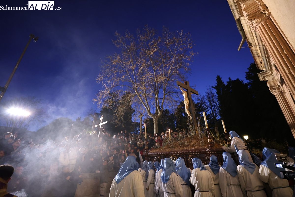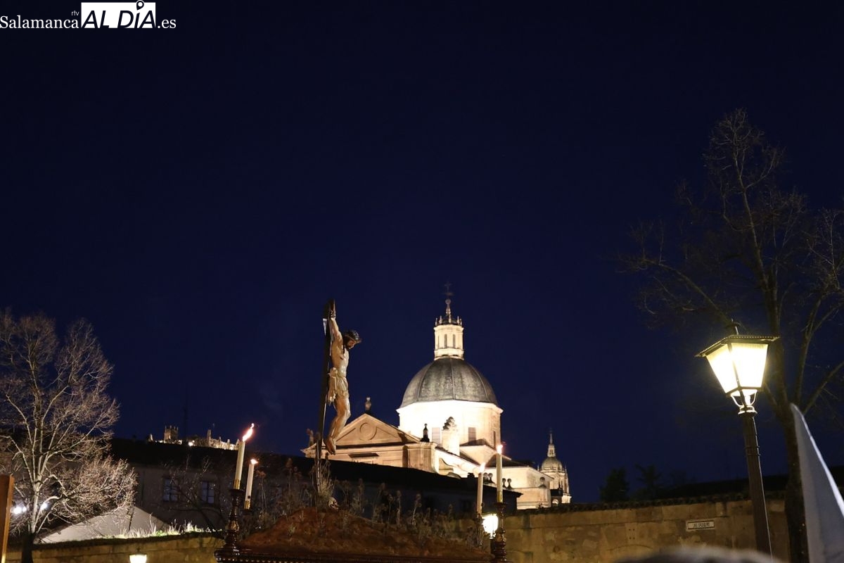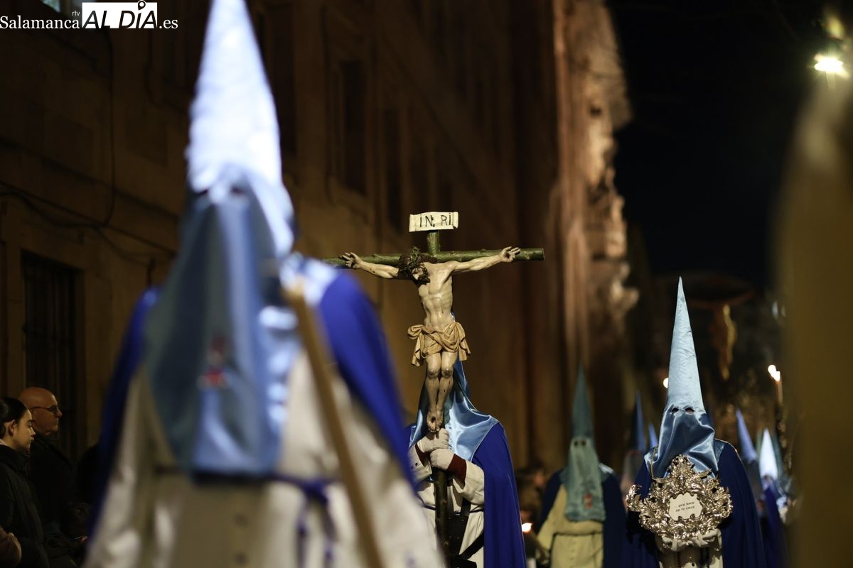 El itinerario ha llevado a la comitiva por los enclaves más emblemáticos del casco antiguo. Para completar su recorrido por las calles de Salamanca, la cofradía ha seguido un trazado oficial que ha partido desde la iglesia de la Vera Cruz. A continuación, la comitiva ha avanzado por la calle Domínguez Berrueta, la calle Ramón y Cajal y la plaza de las Agustinas, para adentrarse por la calle de la Compañía, la Rúa Antigua y la calle Francisco Vitoria hasta alcanzar la plaza de Anaya y el Atrio de la Catedral.