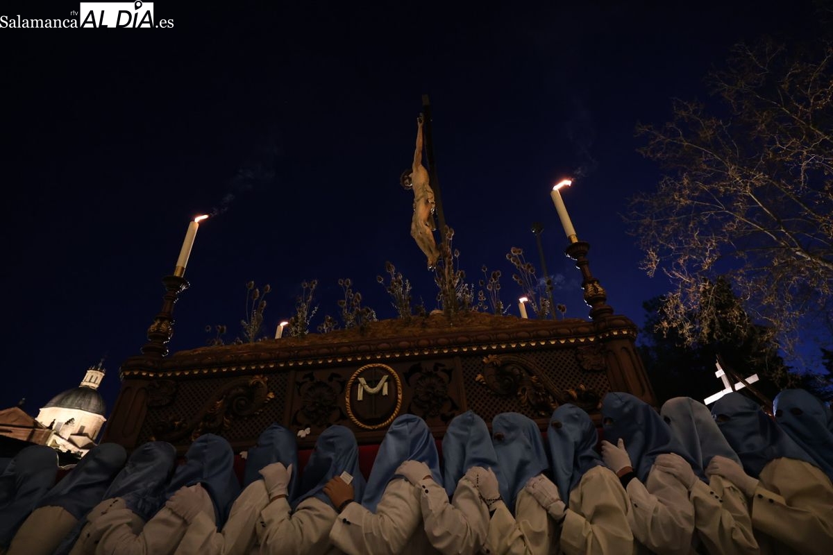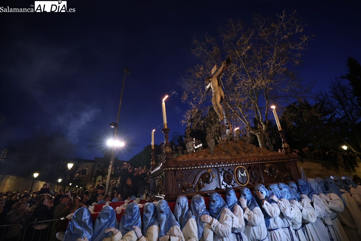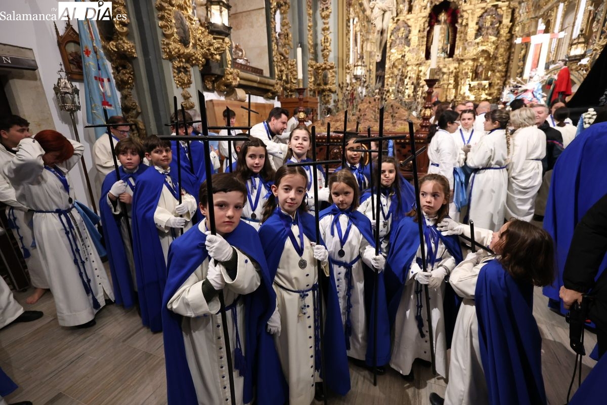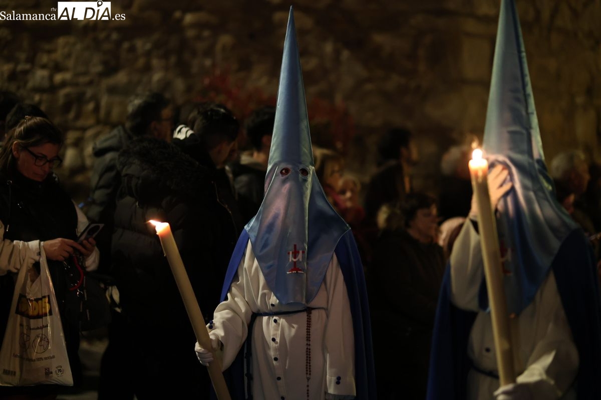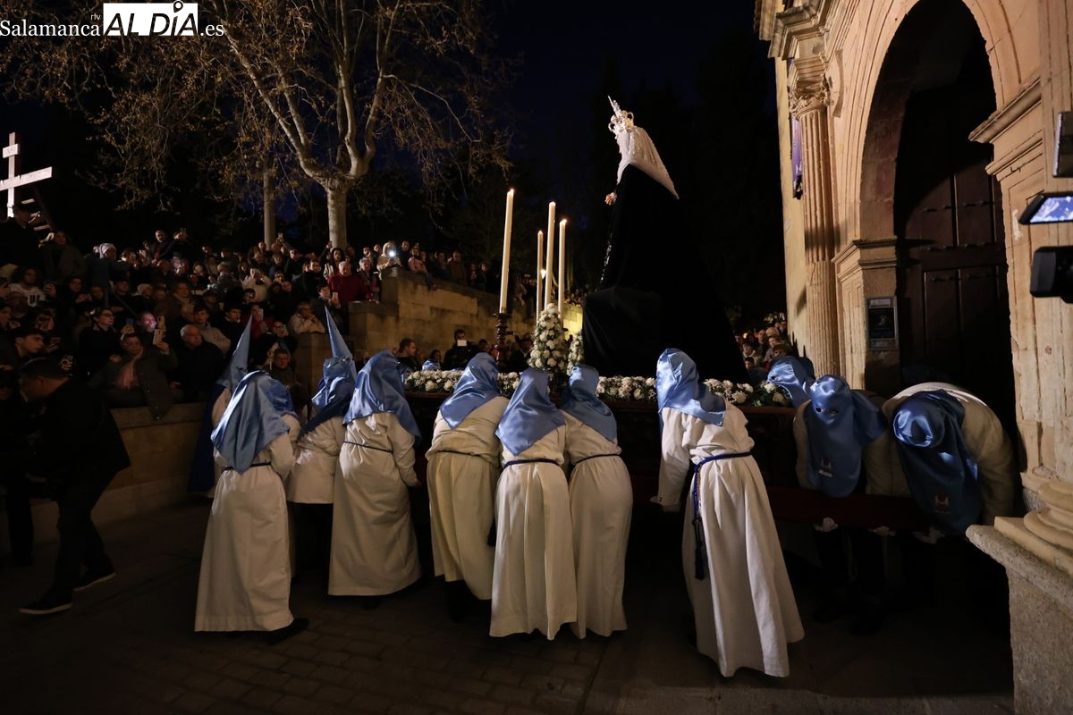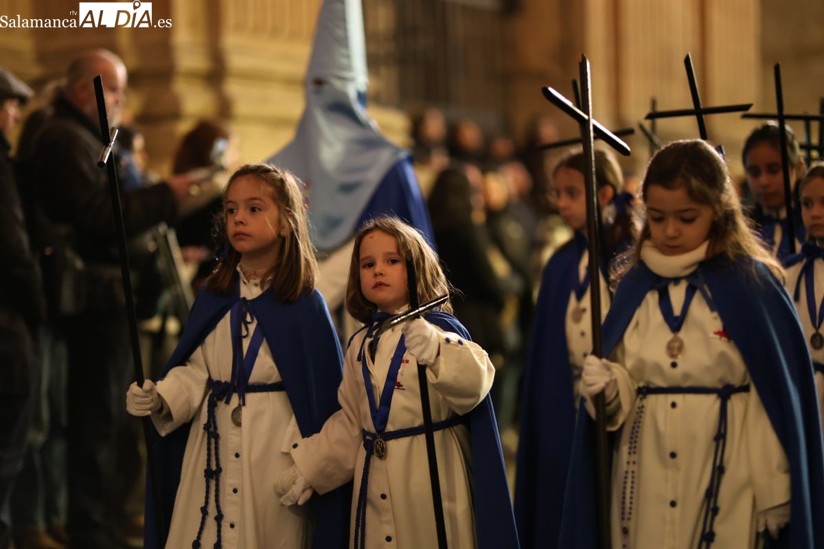 El itinerario ha llevado a la comitiva por los enclaves más emblemáticos del casco antiguo. Para completar su recorrido por las calles de Salamanca, la cofradía ha seguido un trazado oficial que ha partido desde la iglesia de la Vera Cruz. A continuación, la comitiva ha avanzado por la calle Domínguez Berrueta, la calle Ramón y Cajal y la plaza de las Agustinas, para adentrarse por la calle de la Compañía, la Rúa Antigua y la calle Francisco Vitoria hasta alcanzar la plaza de Anaya y el Atrio de la Catedral.