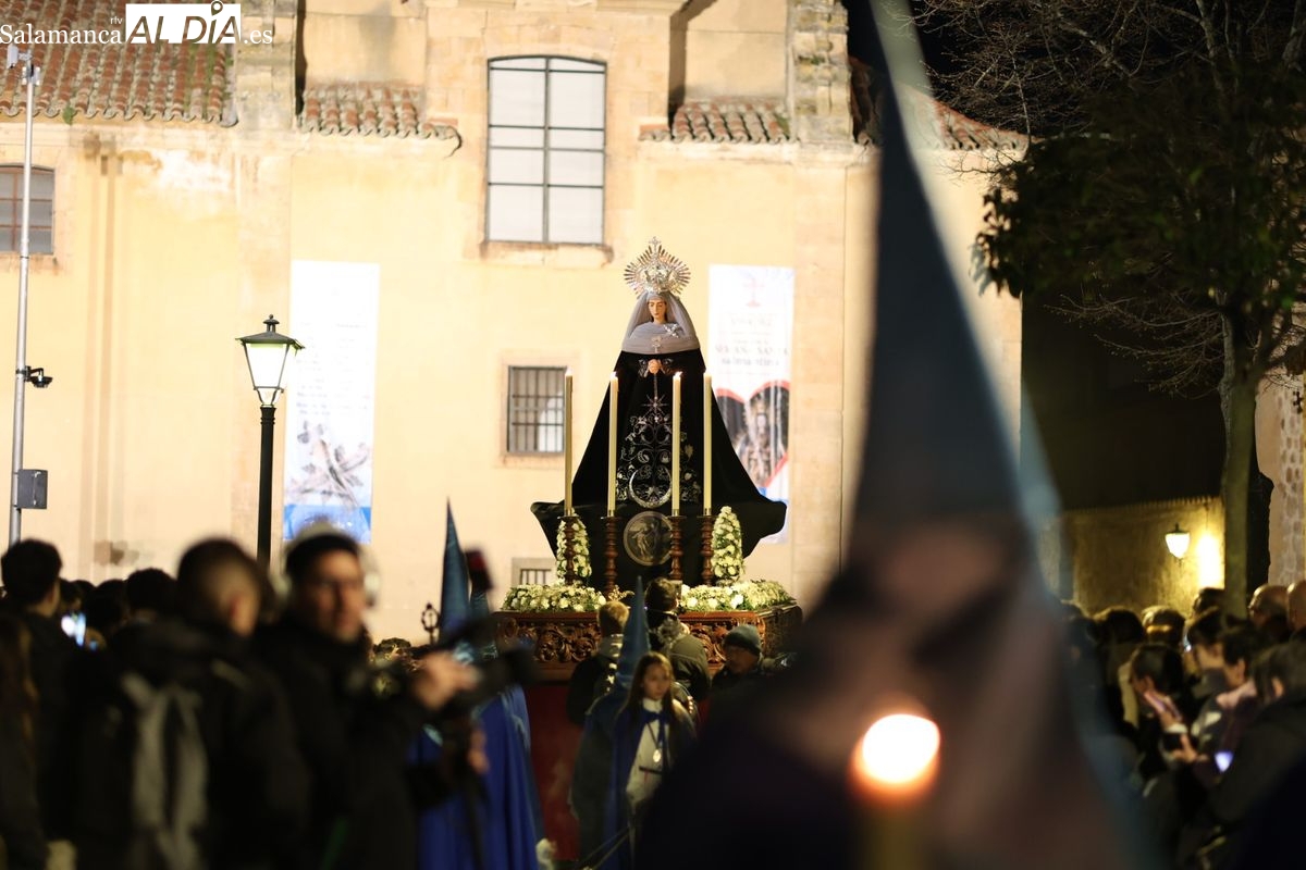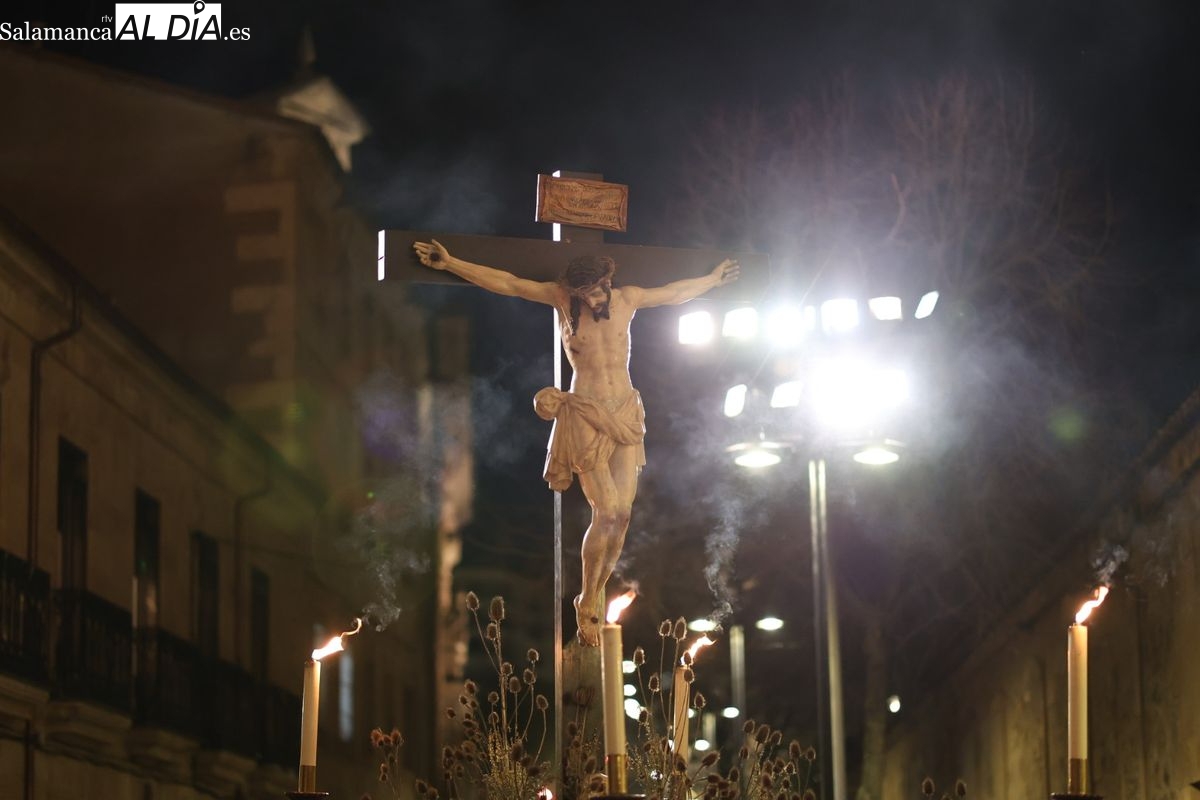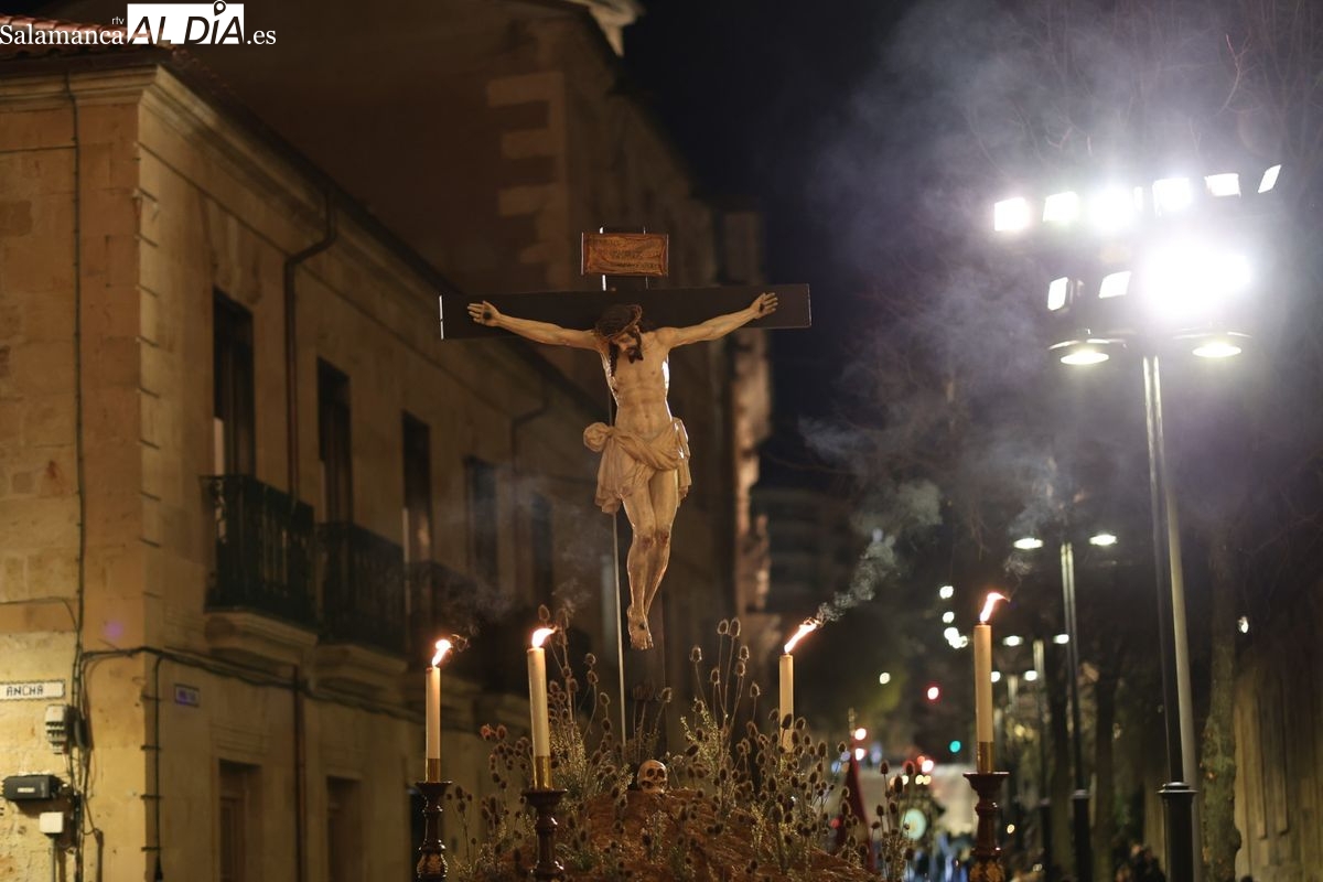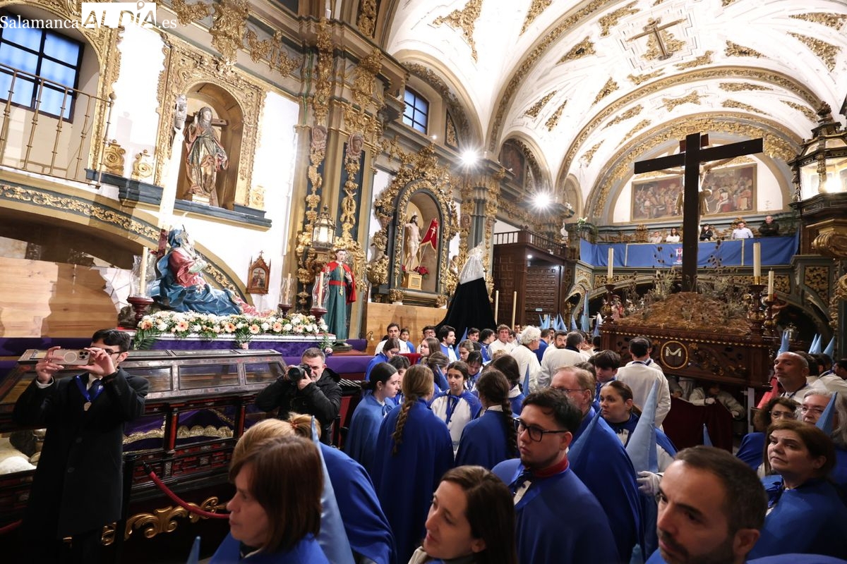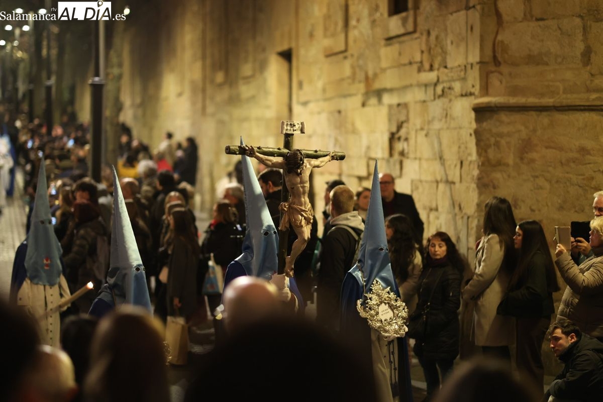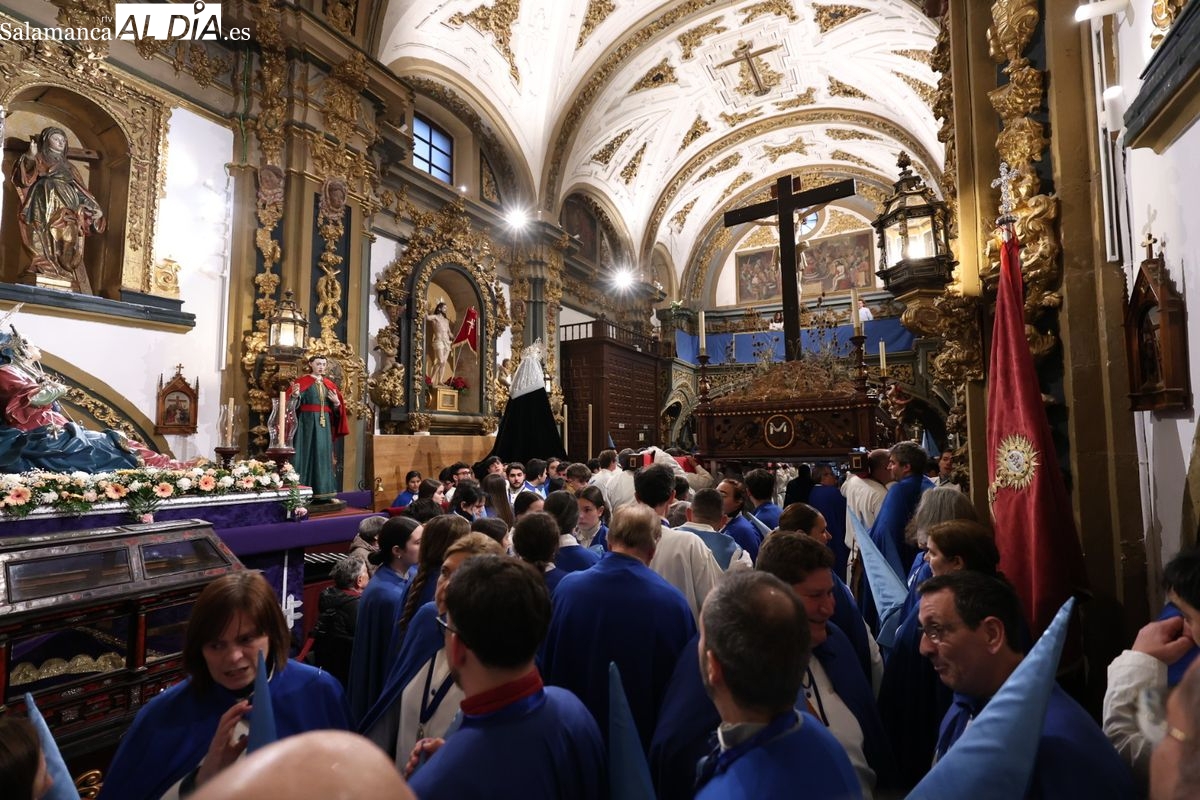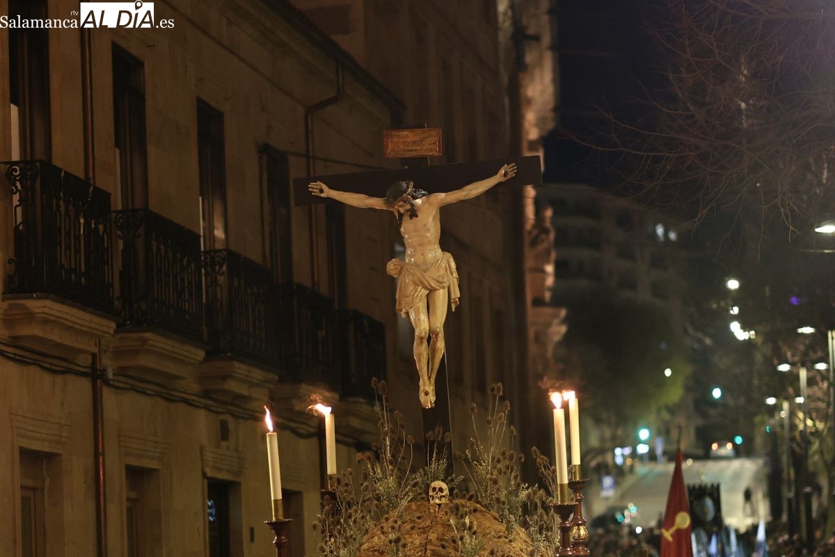 El itinerario ha llevado a la comitiva por los enclaves más emblemáticos del casco antiguo. Para completar su recorrido por las calles de Salamanca, la cofradía ha seguido un trazado oficial que ha partido desde la iglesia de la Vera Cruz. A continuación, la comitiva ha avanzado por la calle Domínguez Berrueta, la calle Ramón y Cajal y la plaza de las Agustinas, para adentrarse por la calle de la Compañía, la Rúa Antigua y la calle Francisco Vitoria hasta alcanzar la plaza de Anaya y el Atrio de la Catedral.