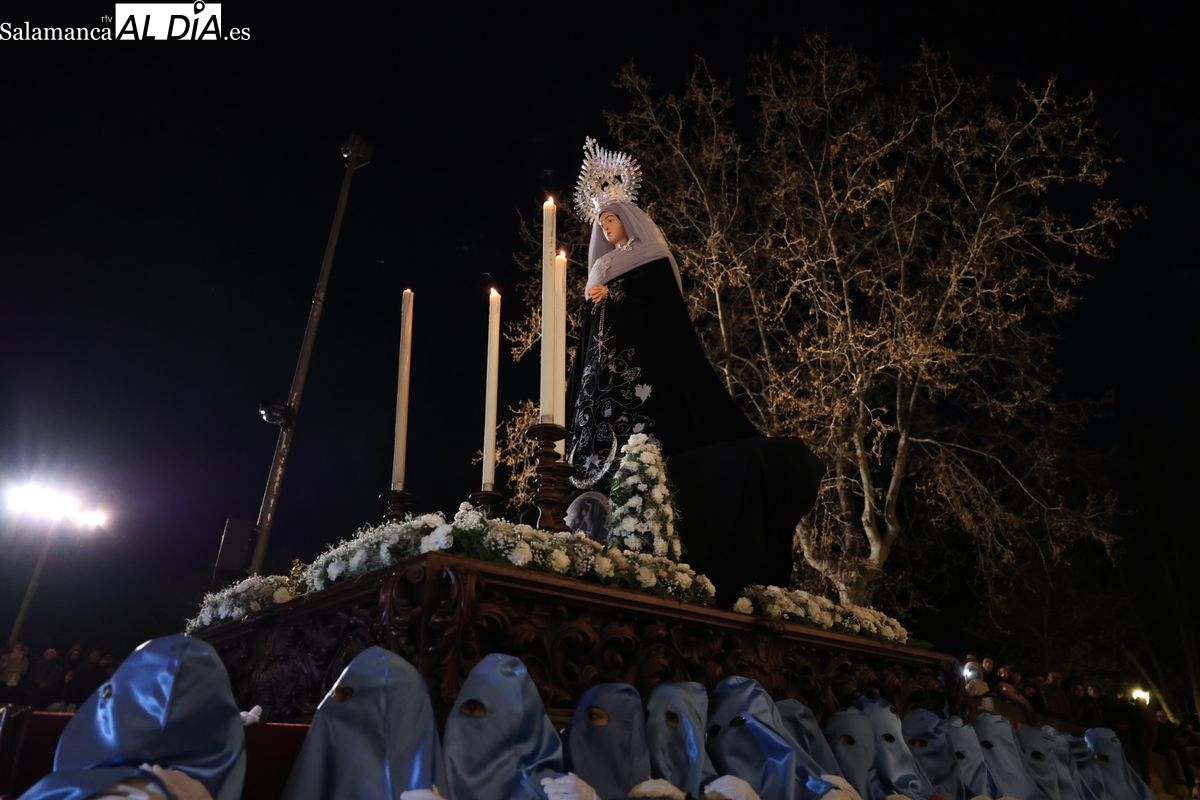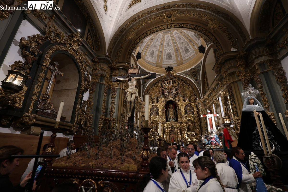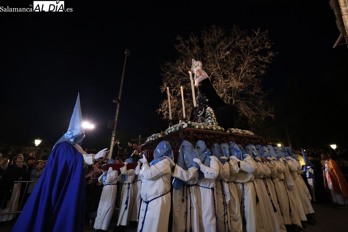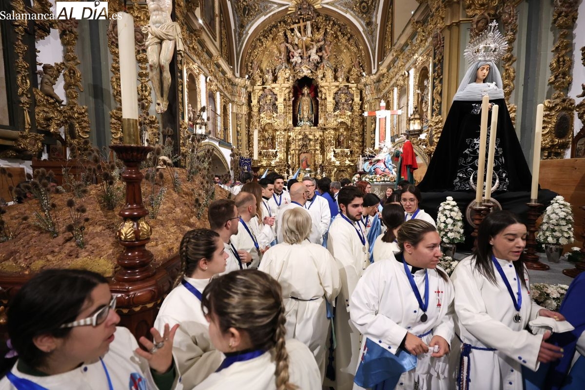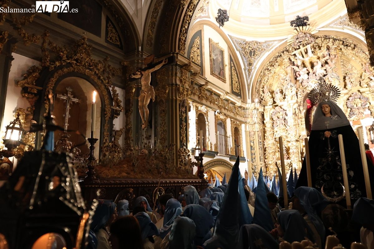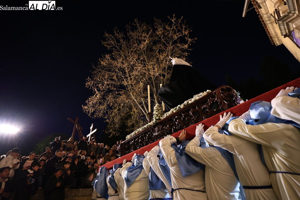 El itinerario ha llevado a la comitiva por los enclaves más emblemáticos del casco antiguo. Para completar su recorrido por las calles de Salamanca, la cofradía ha seguido un trazado oficial que ha partido desde la iglesia de la Vera Cruz. A continuación, la comitiva ha avanzado por la calle Domínguez Berrueta, la calle Ramón y Cajal y la plaza de las Agustinas, para adentrarse por la calle de la Compañía, la Rúa Antigua y la calle Francisco Vitoria hasta alcanzar la plaza de Anaya y el Atrio de la Catedral.
