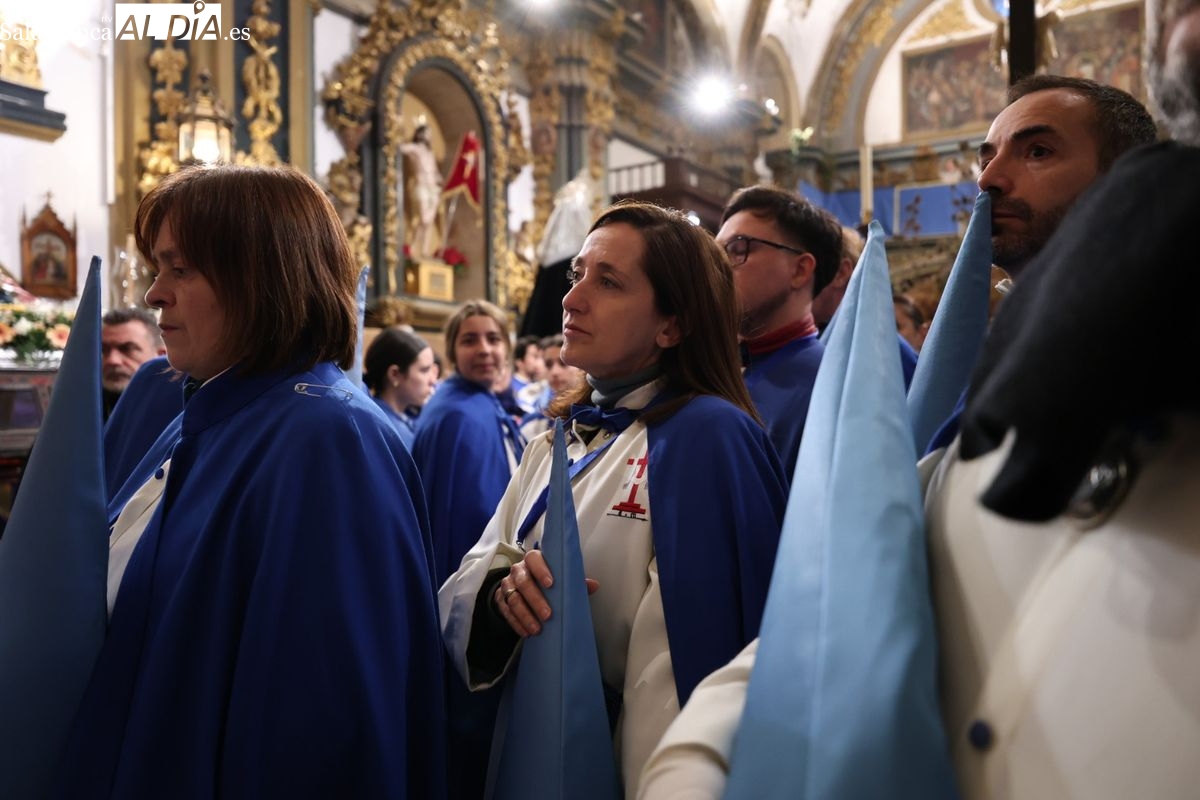 Uno de los momentos más destacados se ha producido con la entrada a la S.I.B. Catedral Nueva a través de la Puerta de Ramos. Tras su paso por el interior del templo, la cofradía ha realizado su salida por la Puerta del Obispo. Desde allí, el desfile ha continuado por la calle Calderón de la Barca, la calle Libreros, la calle Traviesa, la calle Serranos, la calle Cervantes y la calle Ancha. Finalmente, la procesión ha enfilado de nuevo la calle Ramón y Cajal y la calle Domínguez Berrueta para concluir en su punto de origen, la histórica iglesia de la Vera Cruz.