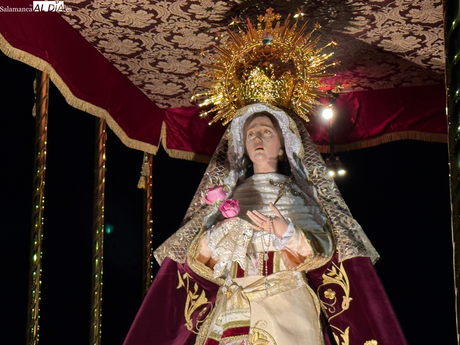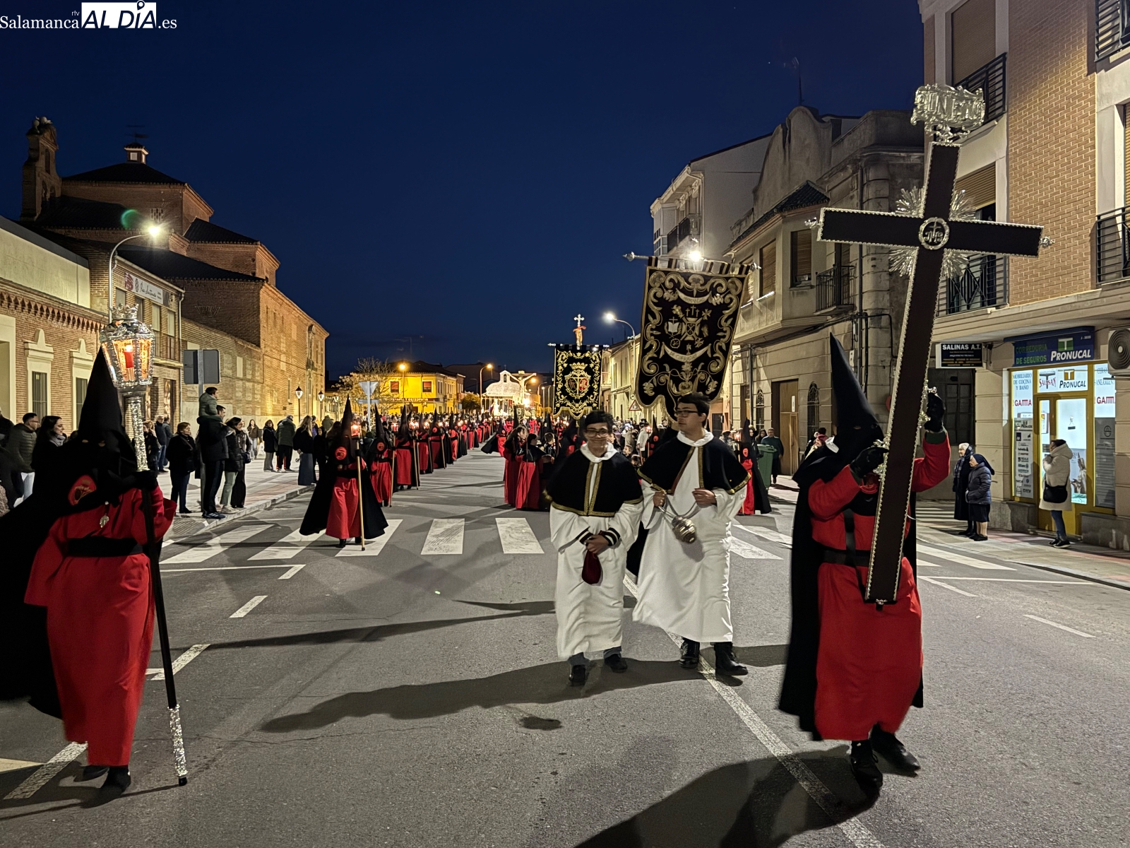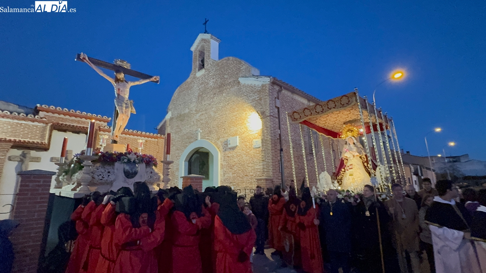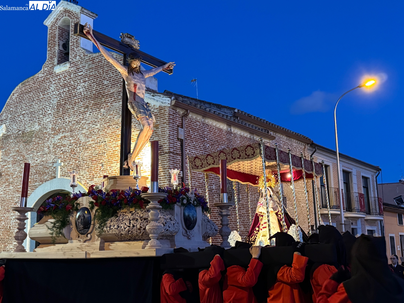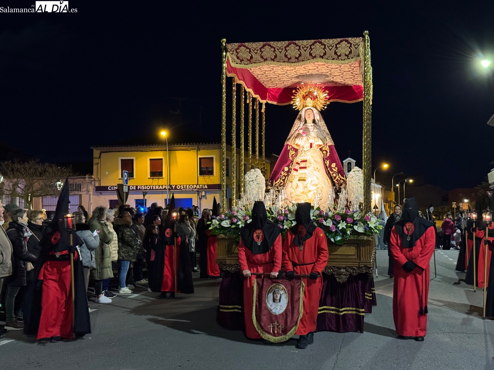 La noche de este Martes Santo volvió a teñirse de solemnidad y recogimiento en Peñaranda, donde la tradición y la fe se abrieron paso entre el frío para acompañar el momento más esperado de la jornada: la procesión del traslado del Santo Cristo del Humilladero y Nuestra Señora de las Lágrimas.
